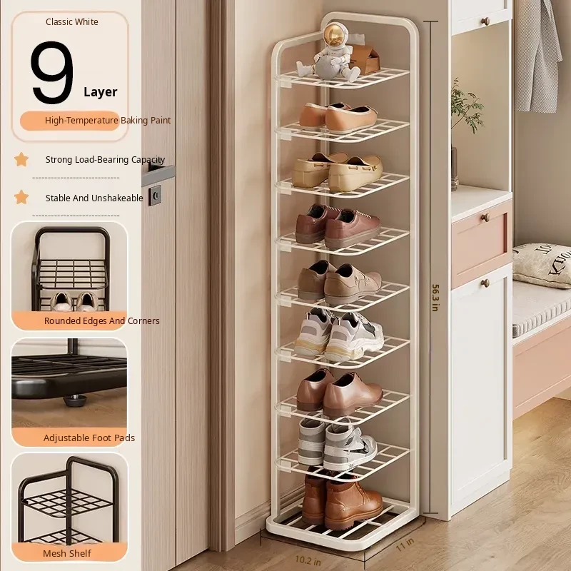 [White-9 Layers] Metal Shoe Rack | Small Footprint and Space Saving - Stable Structure