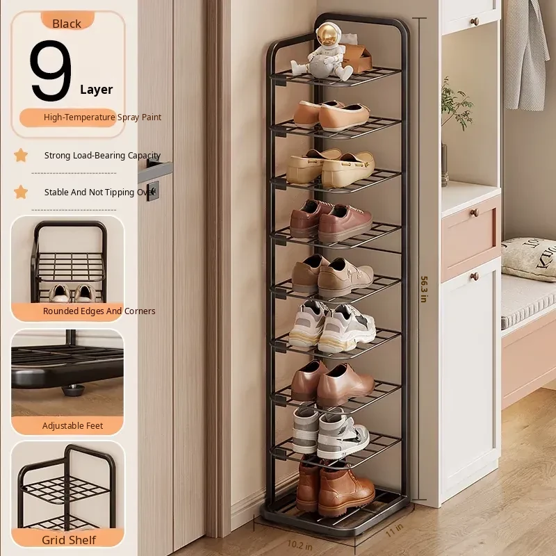 [Black-9 Layers] Metal Shoe Rack | Small Footprint and Space Saving - Stable Structure