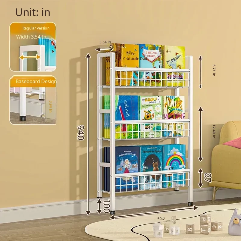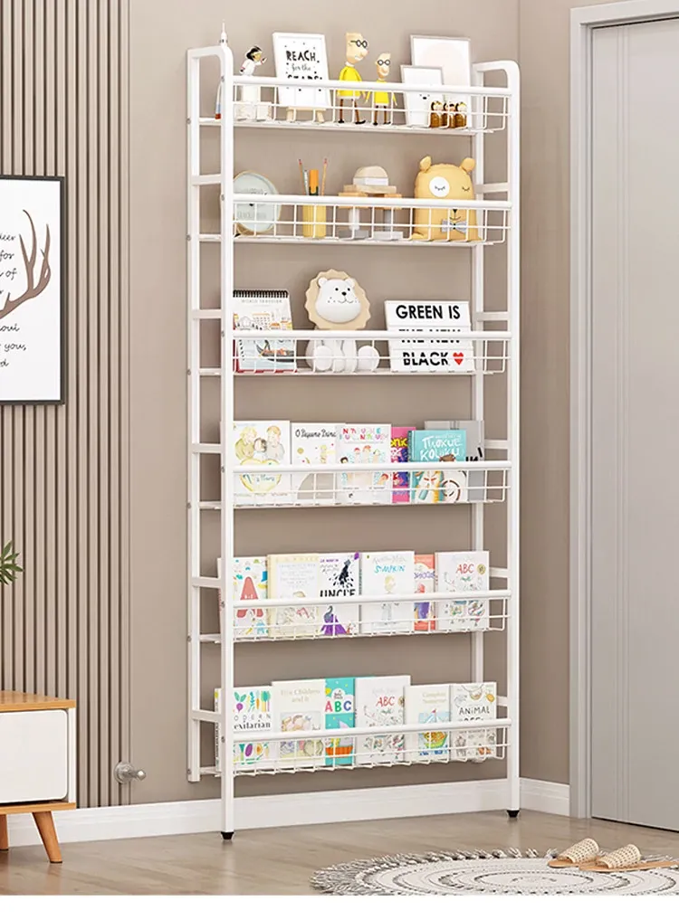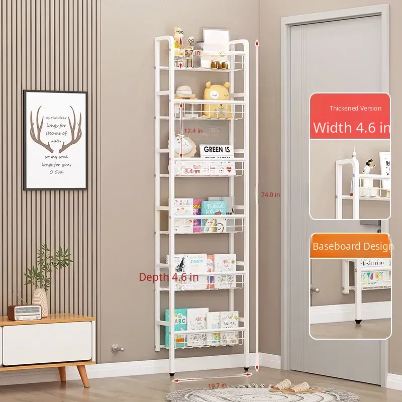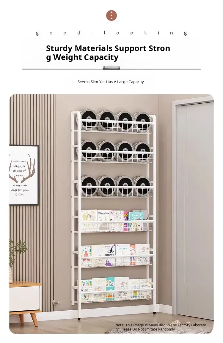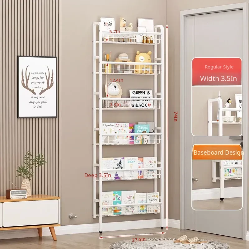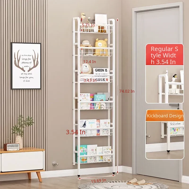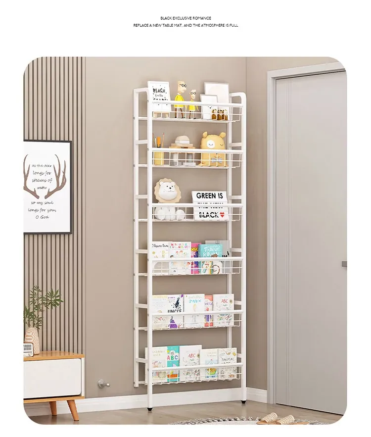 Space-Saving Wall-Mounted and Floor Bookshelf - Stylish Iron Storage Rack for Kids, Perfect for Narrow Gaps and Small Spaces, Ideal Home Organizer