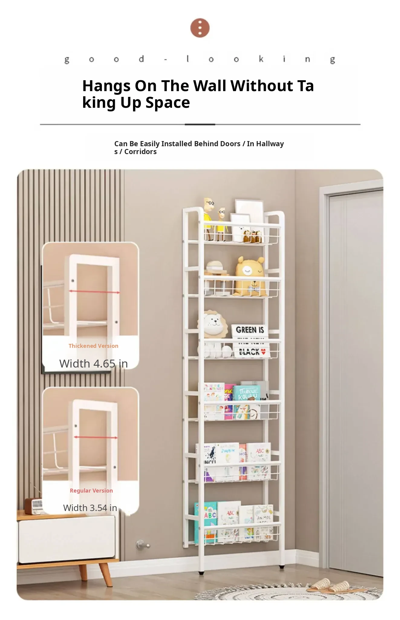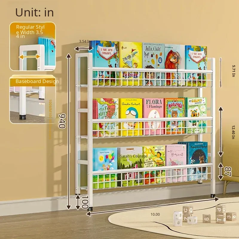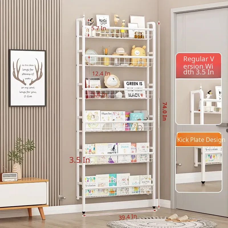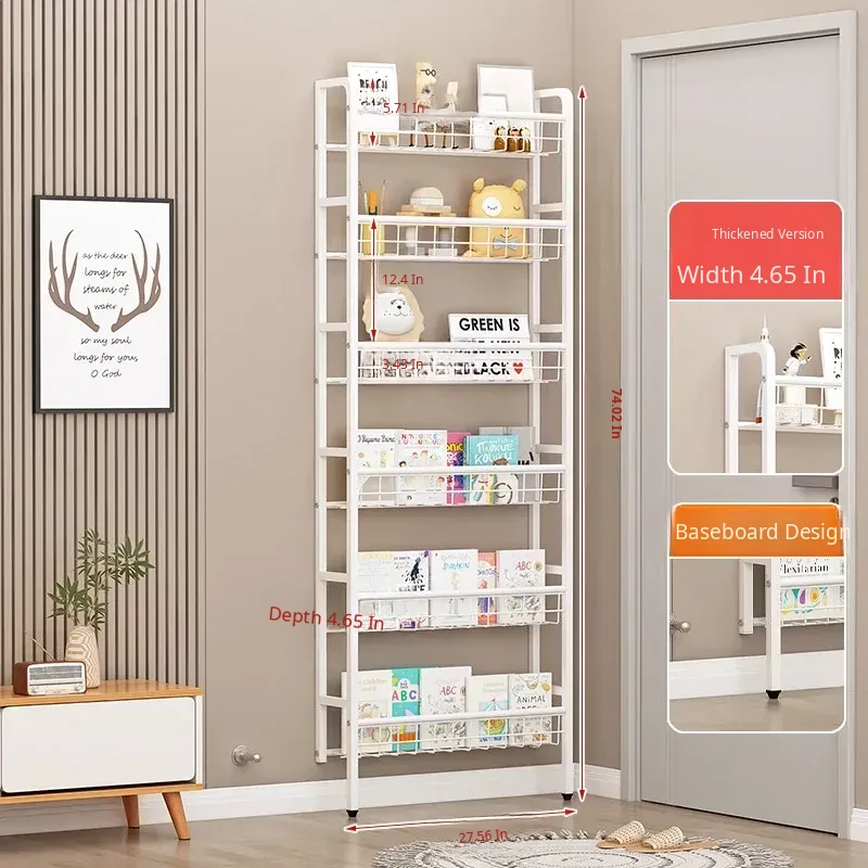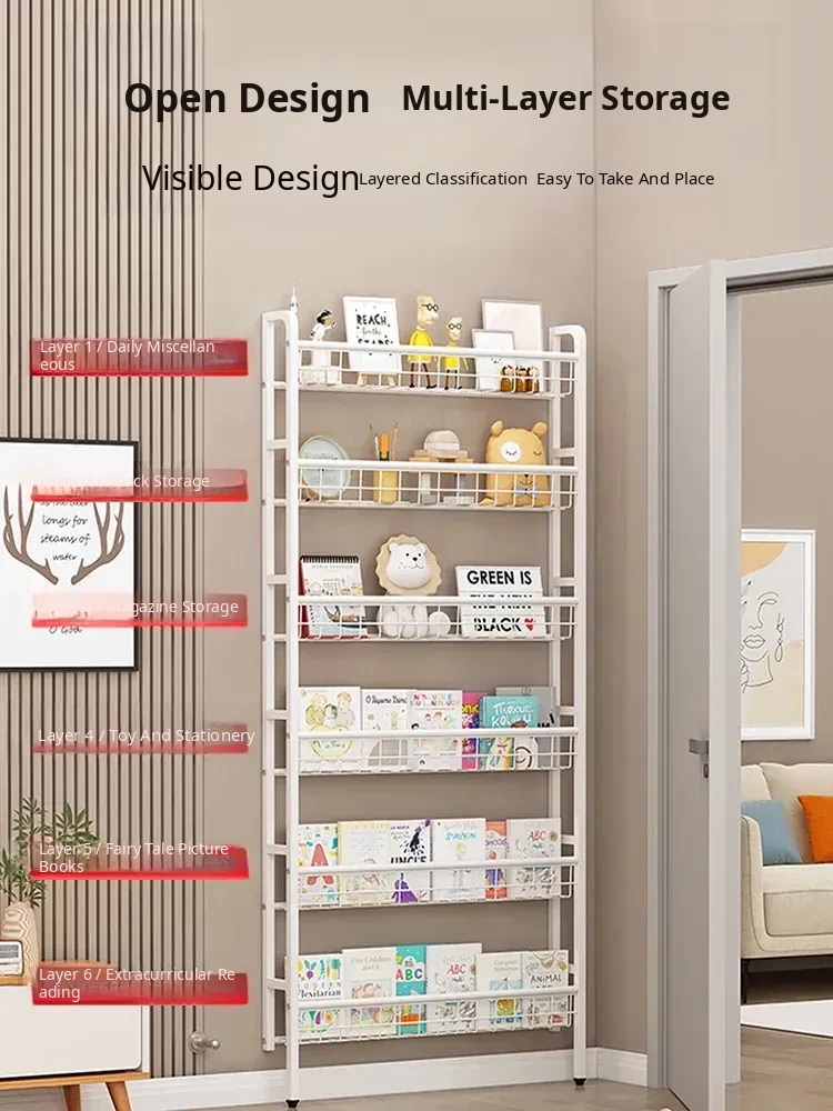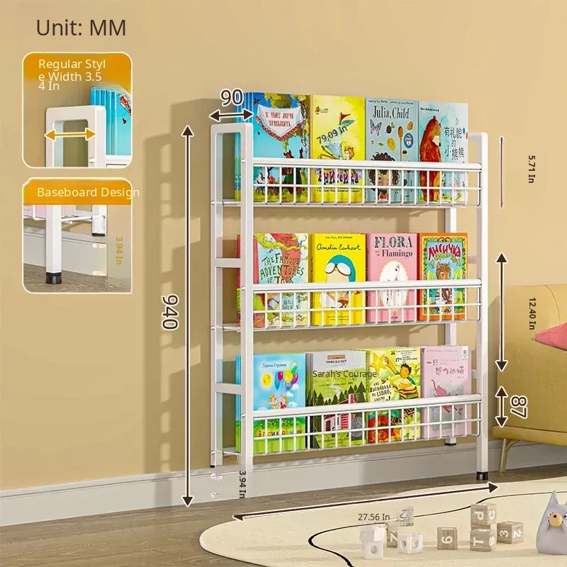 Space-Saving Wall-Mounted and Floor Bookshelf - Stylish Iron Storage Rack for Kids, Perfect for Narrow Gaps and Small Spaces, Ideal Home Organizer