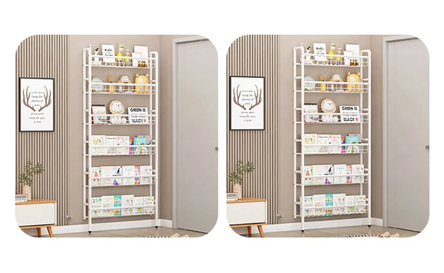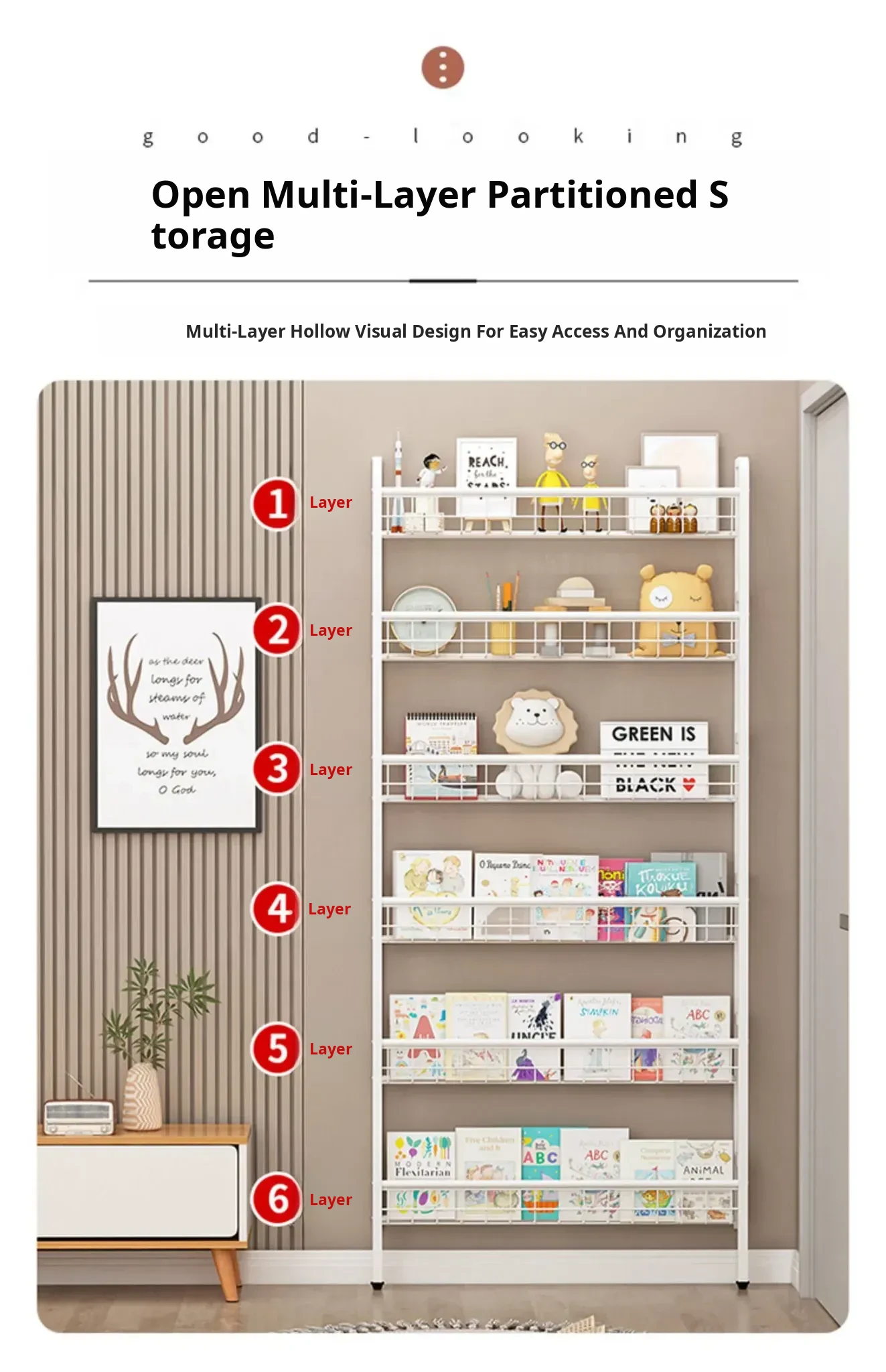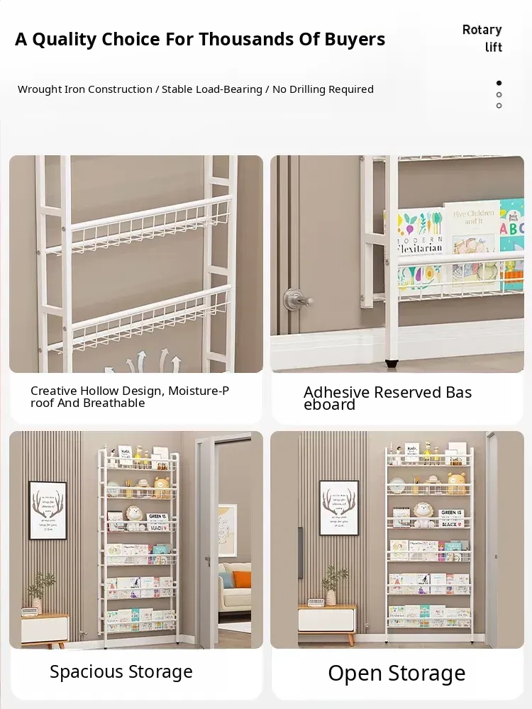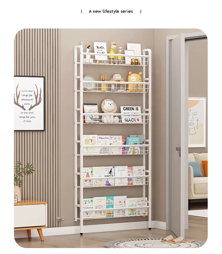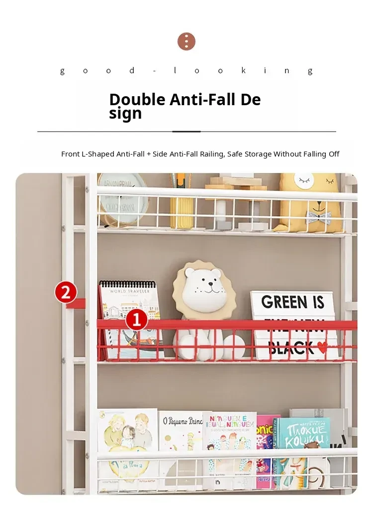 Space-Saving Wall-Mounted and Floor Bookshelf - Stylish Iron Storage Rack for Kids, Perfect for Narrow Gaps and Small Spaces, Ideal Home Organizer