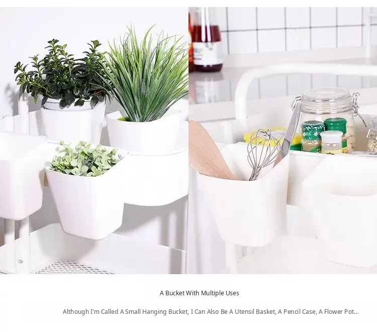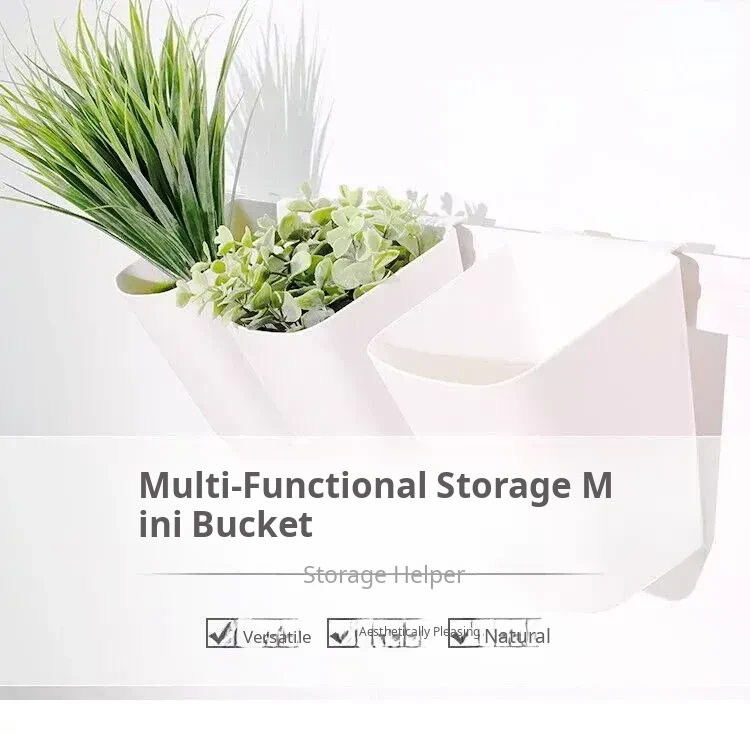 Stylish Wall-Mounted Mini Hanging Basket - Portable Multi-Functional Plastic Storage Bucket for Kitchen Utensils and Home Organization