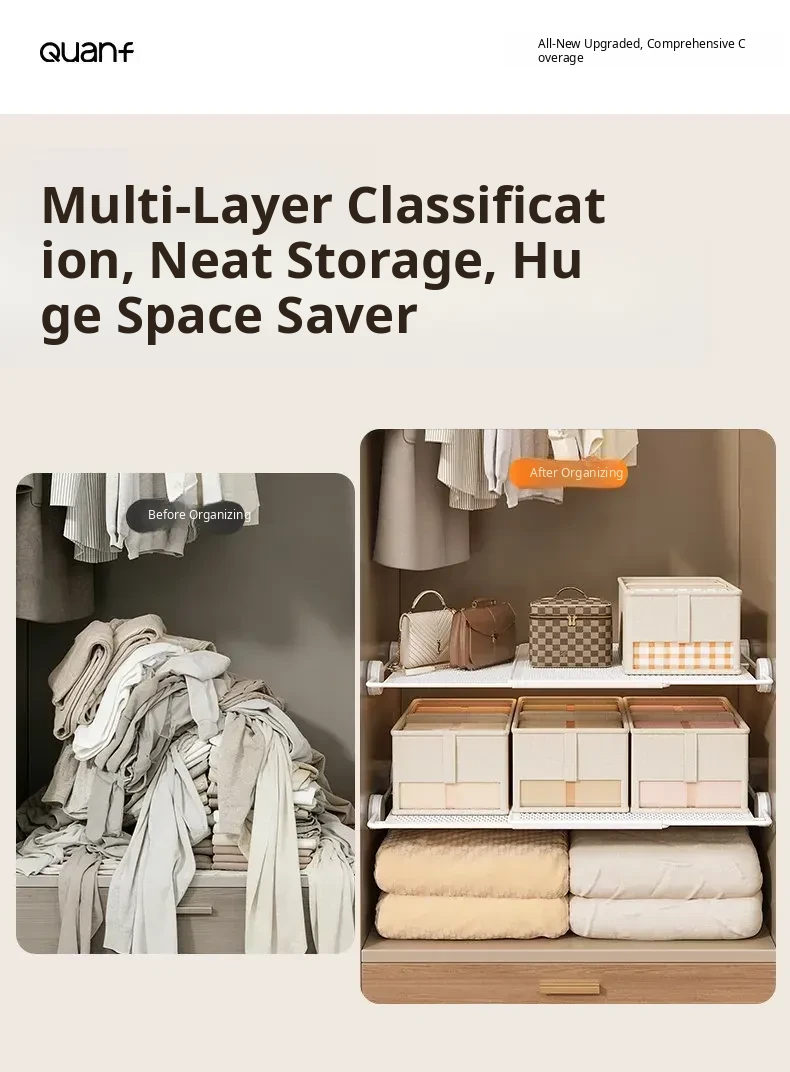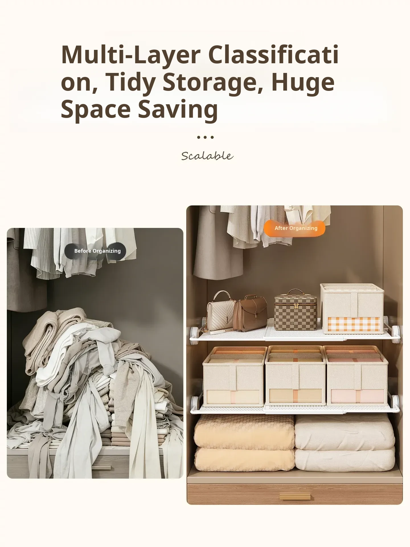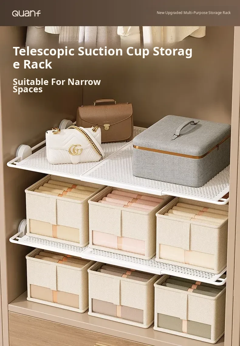 Suction Cup Closet Shelf Organizer - Adjustable Layered Storage Rack for Easy Organization, No Drilling Required, Perfect for Maximizing Closet Space