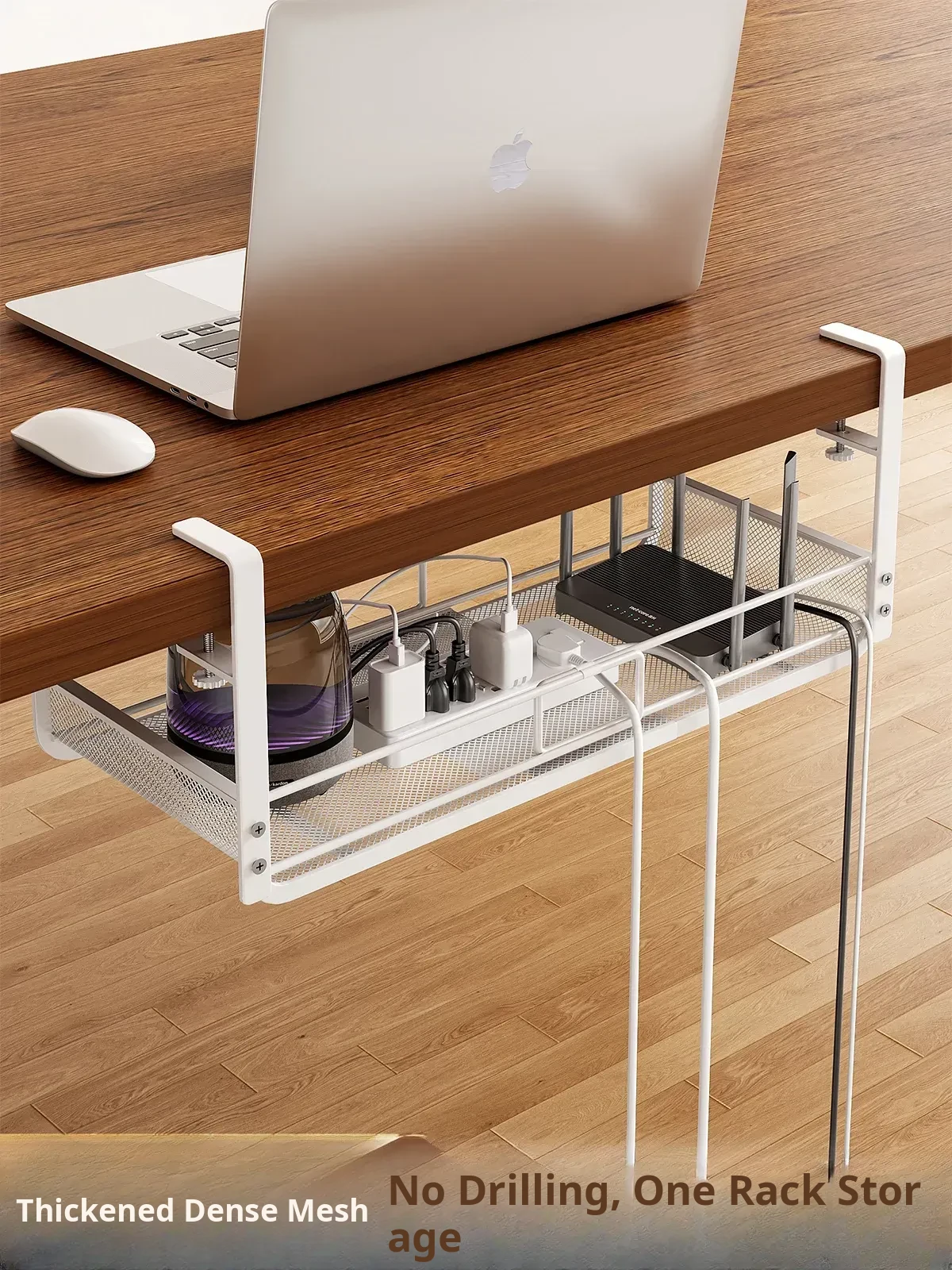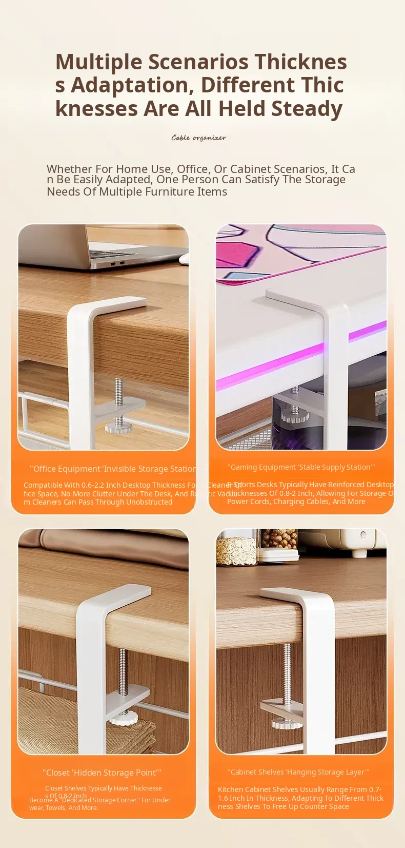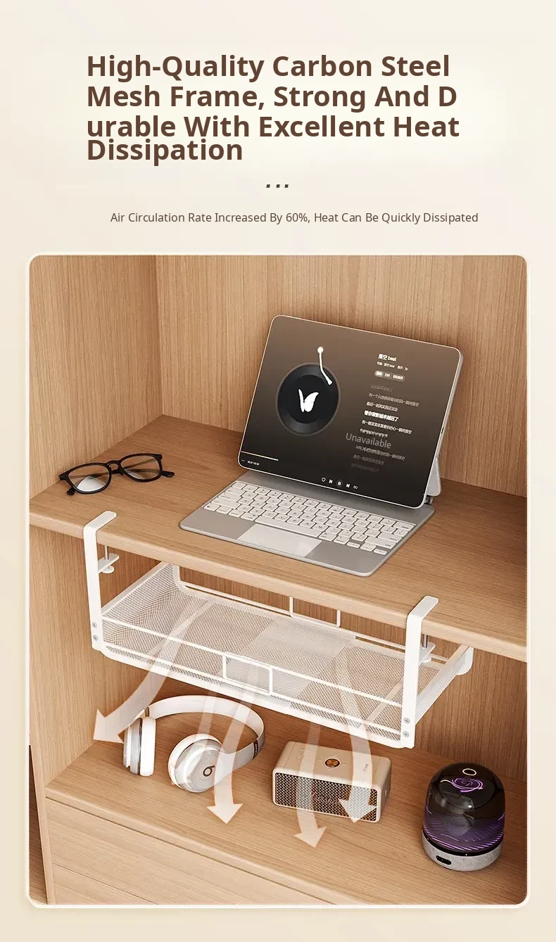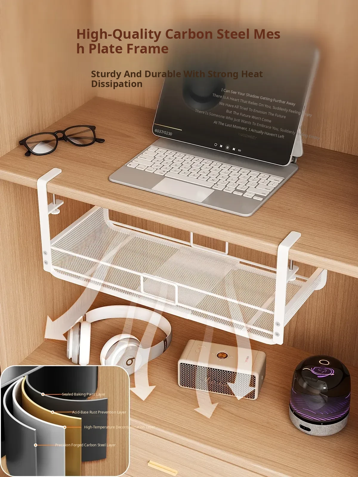 Under-Desk Cable Management Organizer with No-Drill Hanging Basket for Storage - Ideal for Power Outlets, Router, and Computer Desk Organization