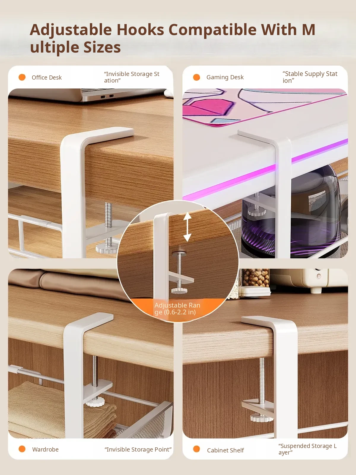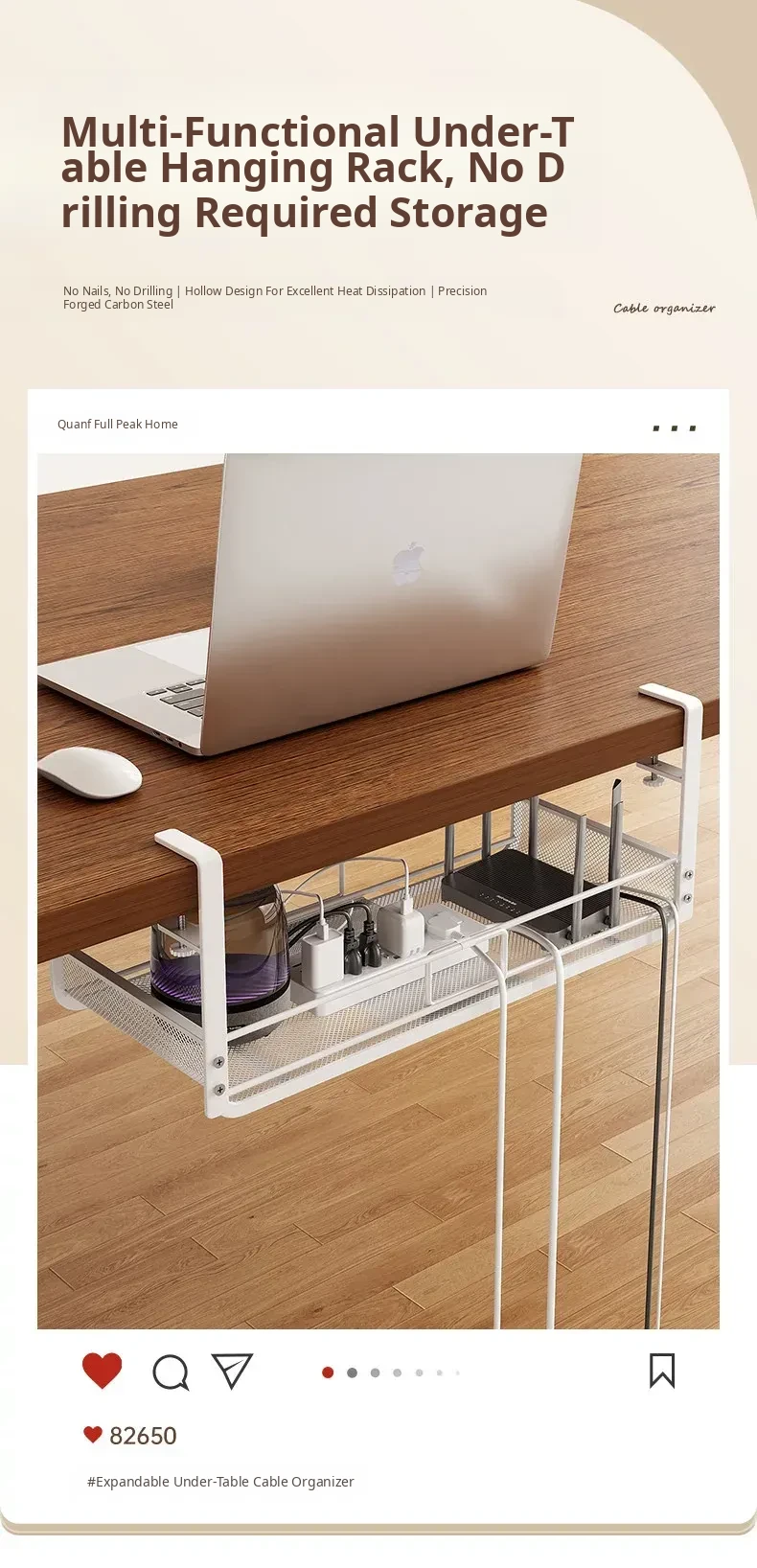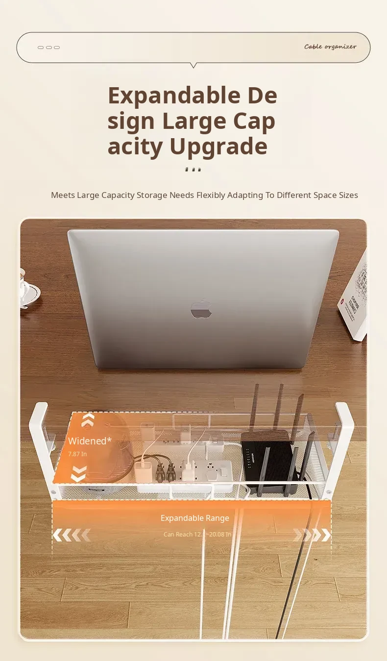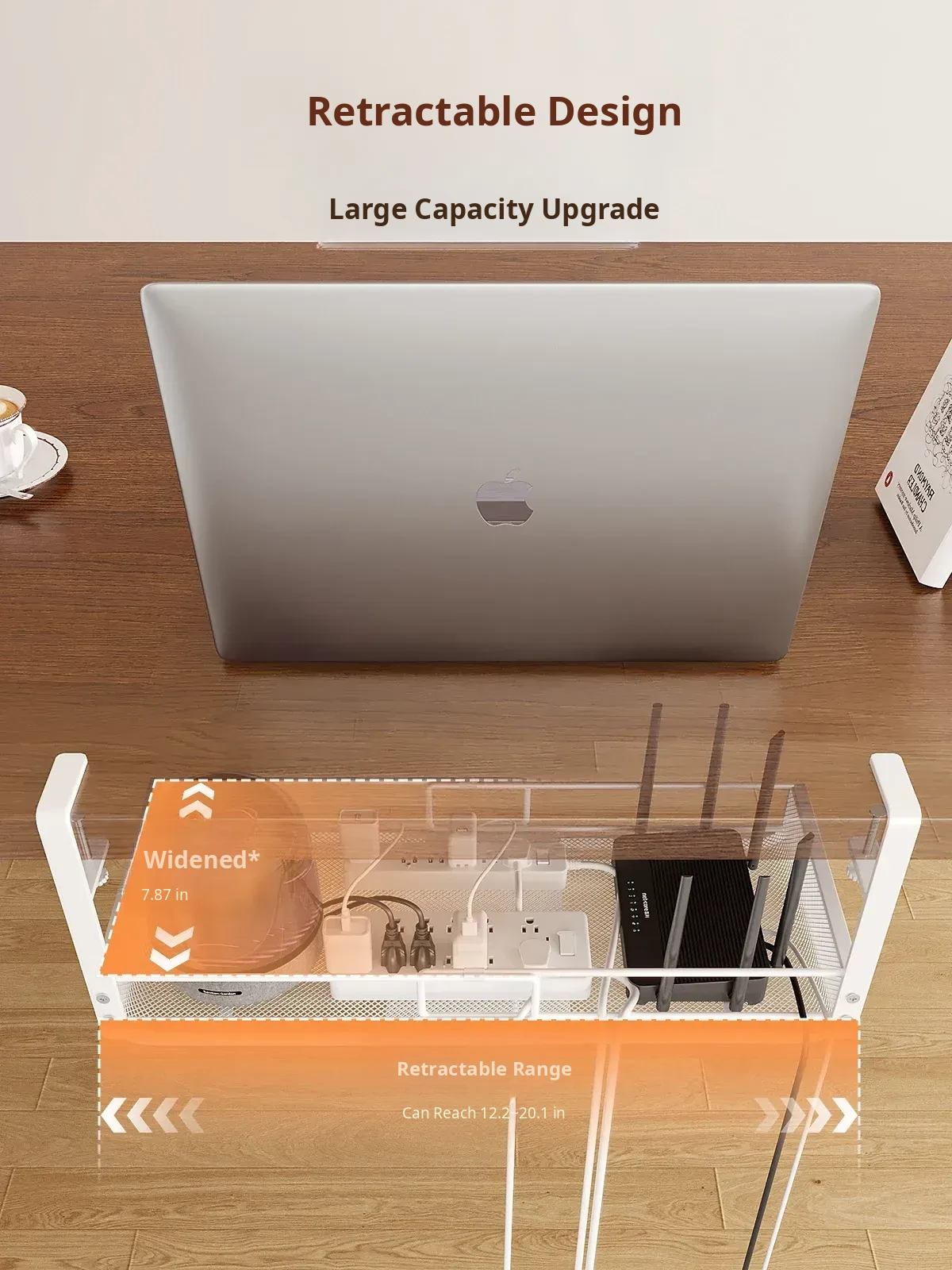 Under-Desk Cable Management Organizer with No-Drill Hanging Basket for Storage - Ideal for Power Outlets, Router, and Computer Desk Organization