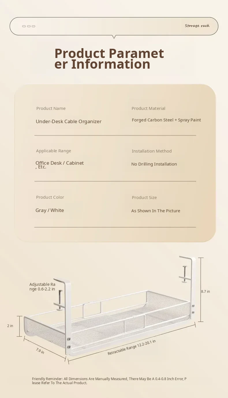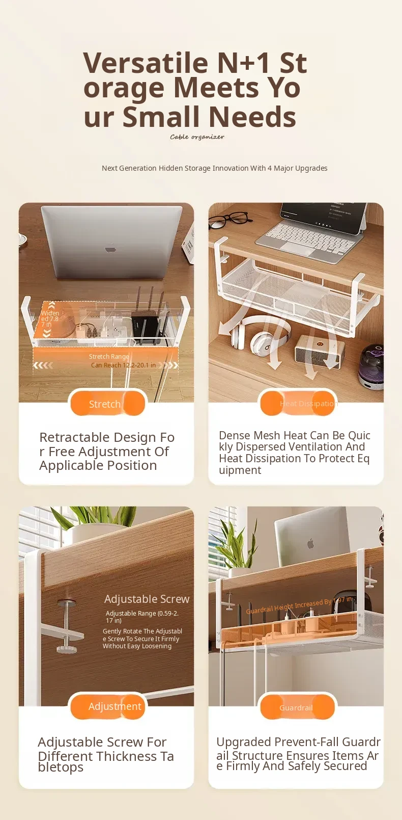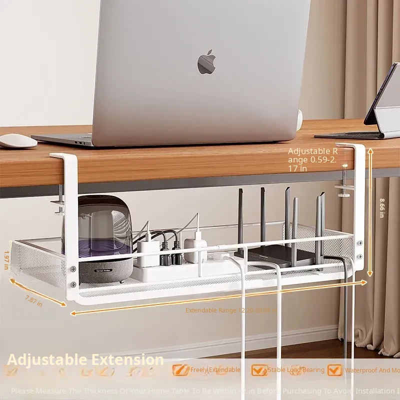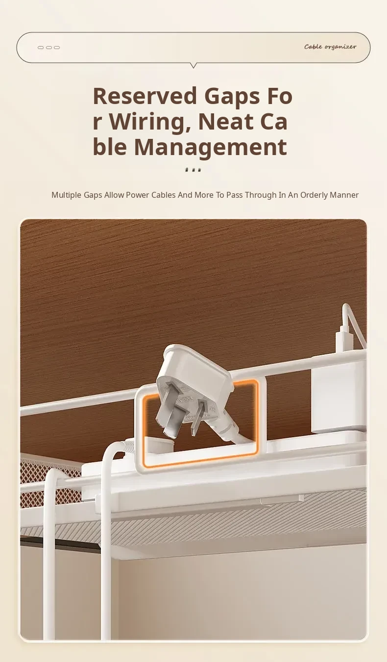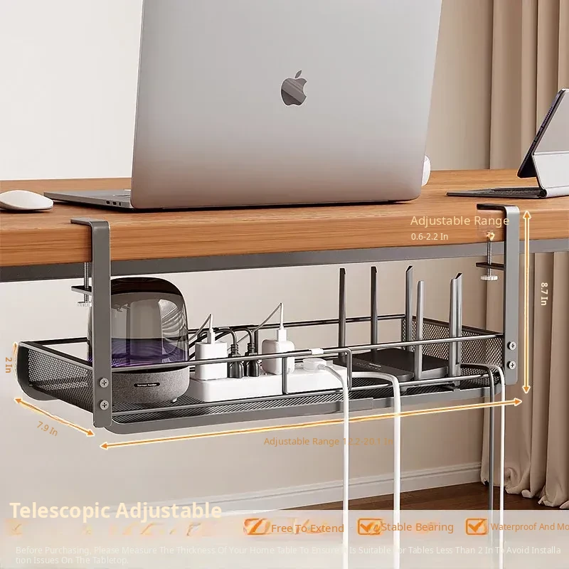 Under-Desk Cable Management Organizer with No-Drill Hanging Basket for Storage - Ideal for Power Outlets, Router, and Computer Desk Organization