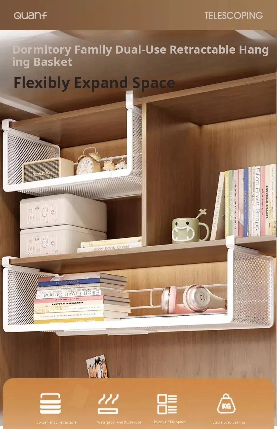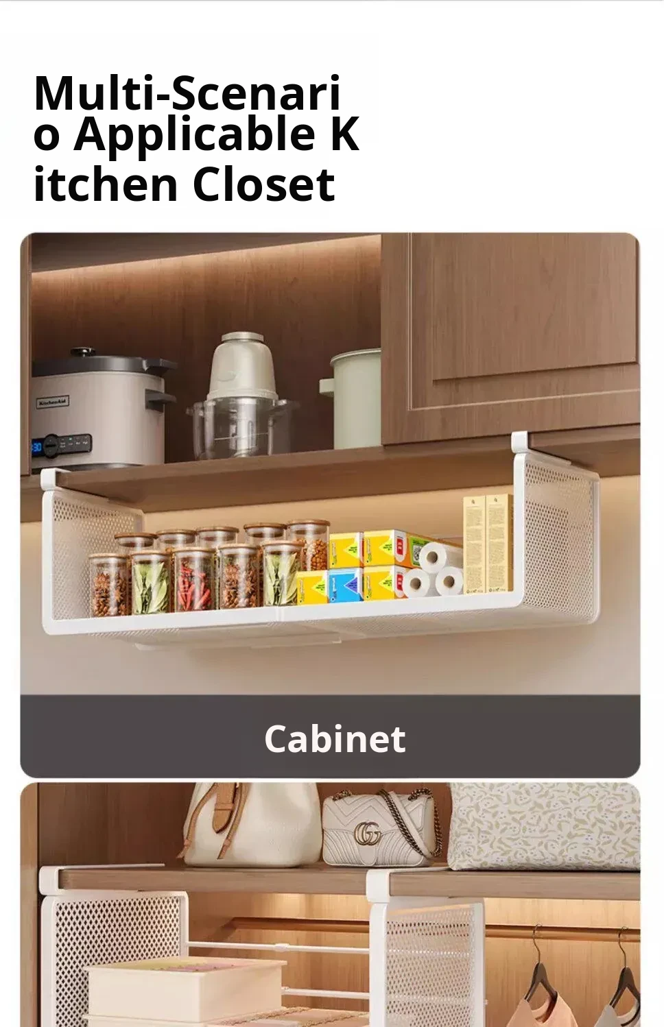 Under-Shelf Hanging Basket Organizer - Adjustable Tiered Storage Solution for Cabinets and Cupboards - Perfect for Maximizing Space and Keeping Your Kitchen Tidy!