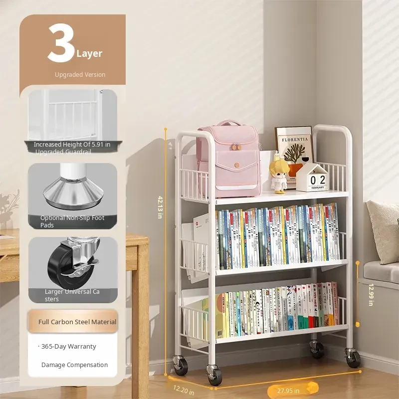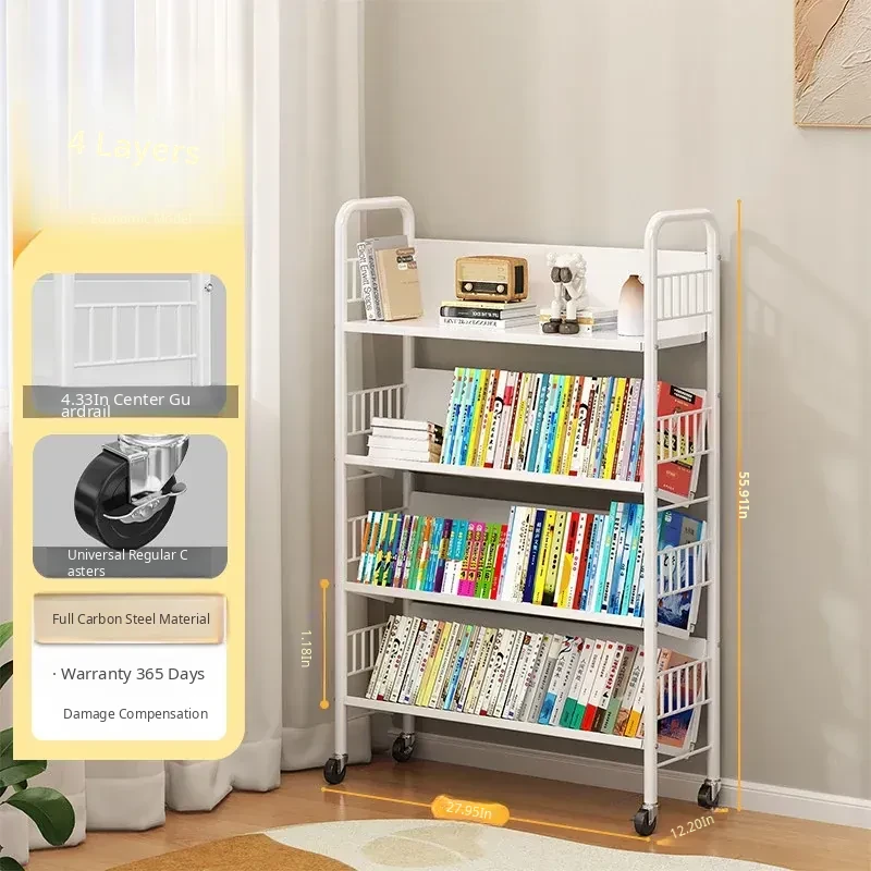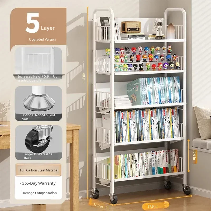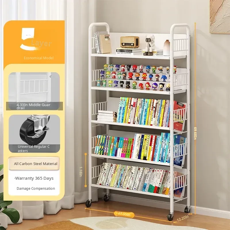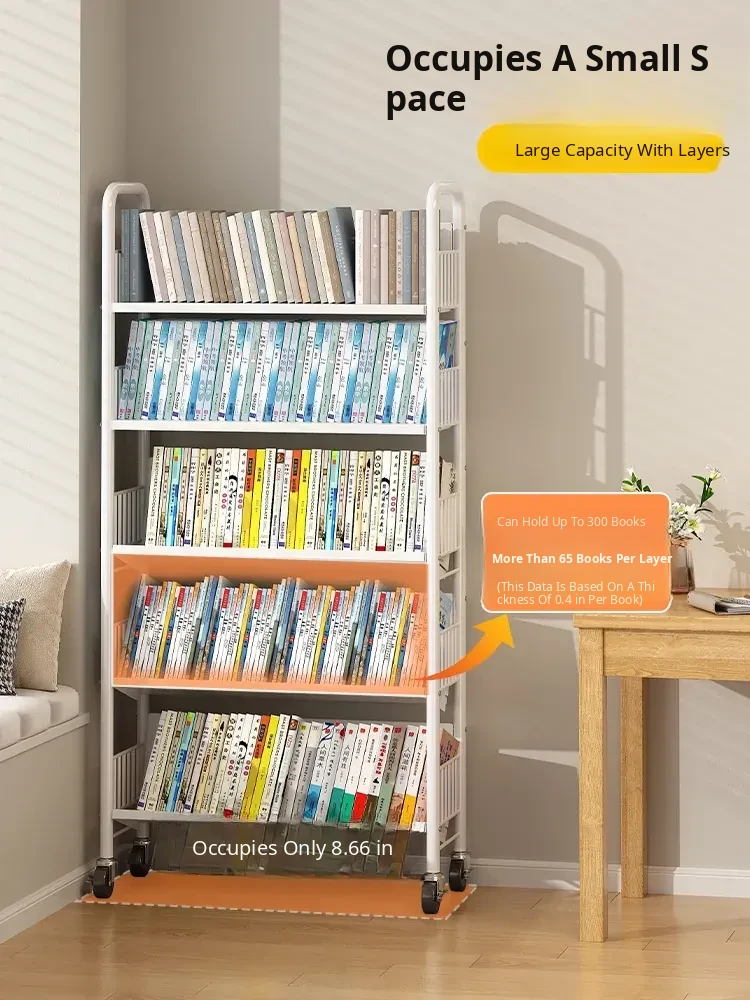 Versatile Floor Bookshelf - Multi-Layer Rolling Storage Rack for Home, Ideal for Students and Kids' Picture Books, Easy Assembly Bookcase for Organizing Your Collection