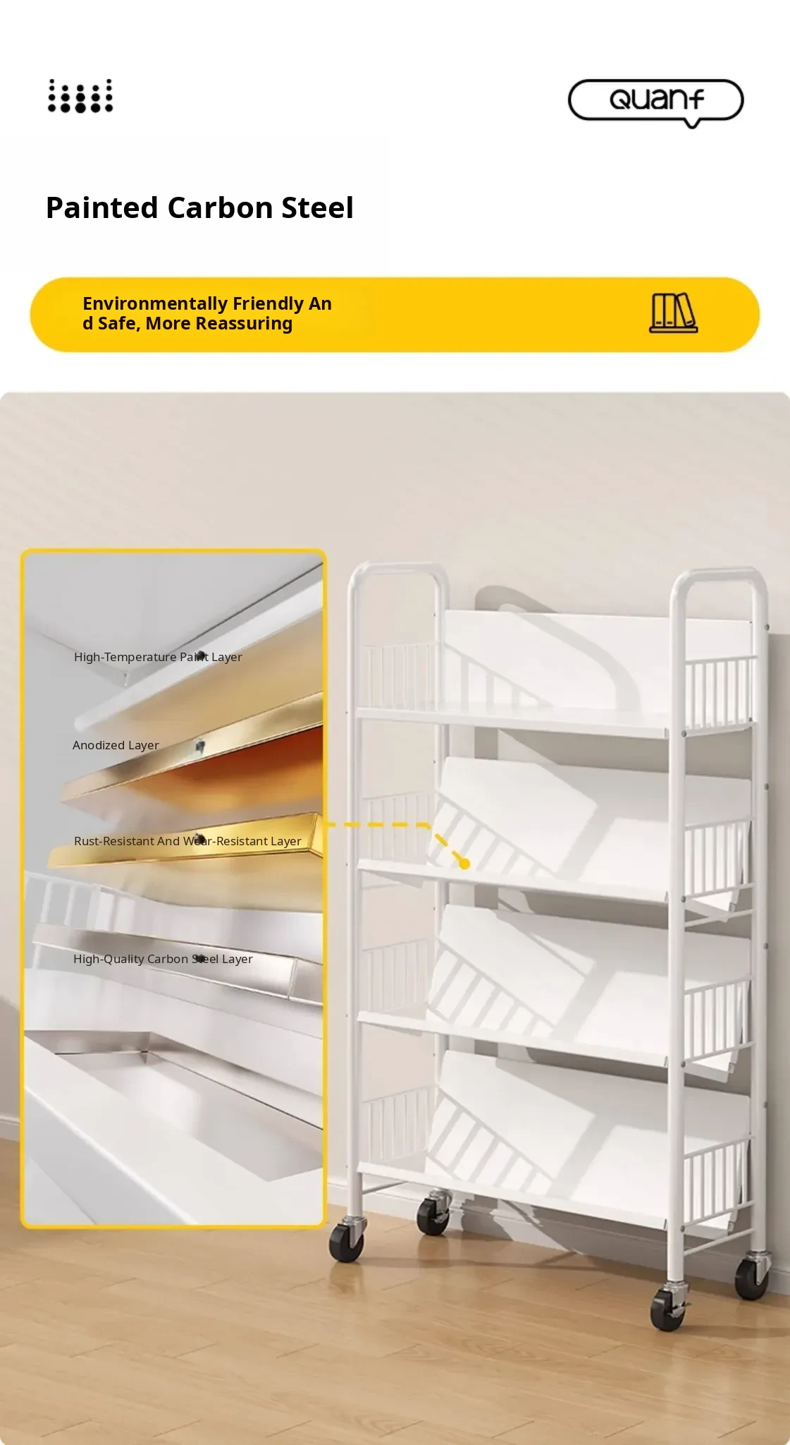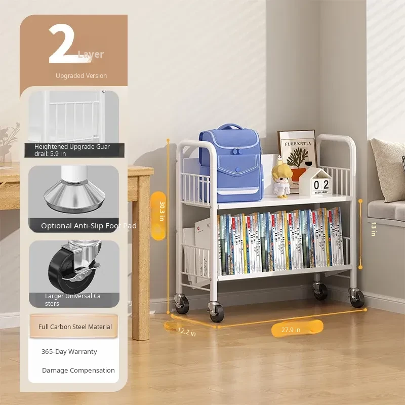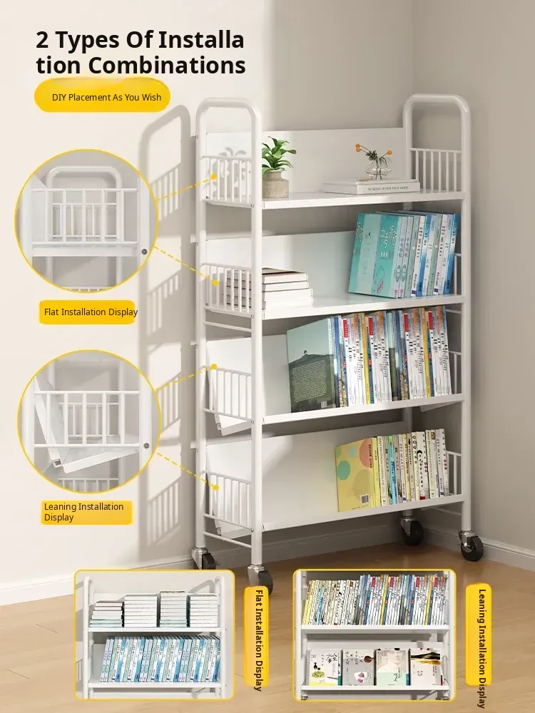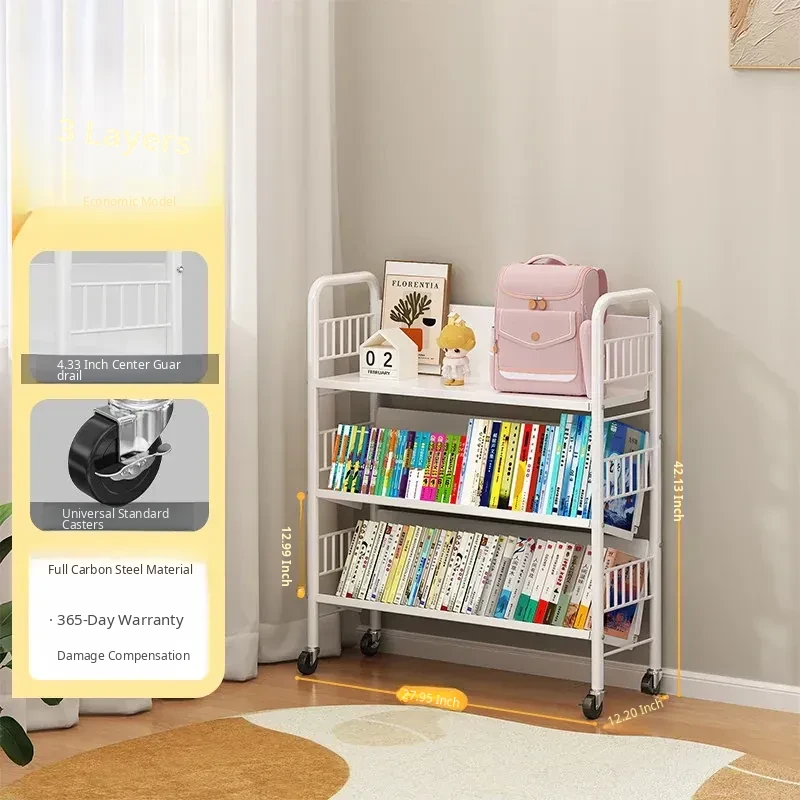 Versatile Floor Bookshelf - Multi-Layer Rolling Storage Rack for Home, Ideal for Students and Kids' Picture Books, Easy Assembly Bookcase for Organizing Your Collection