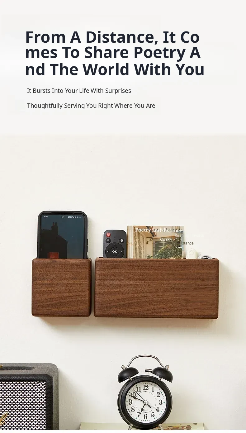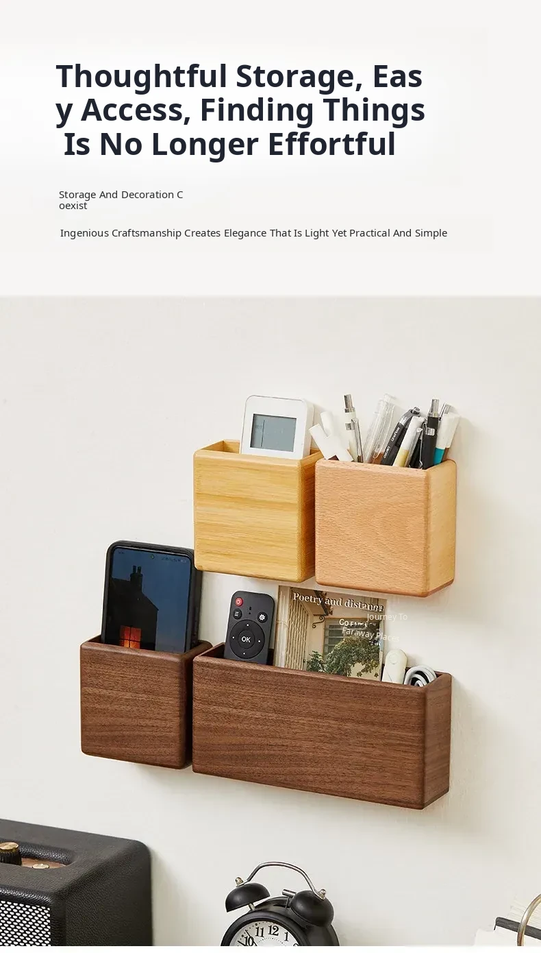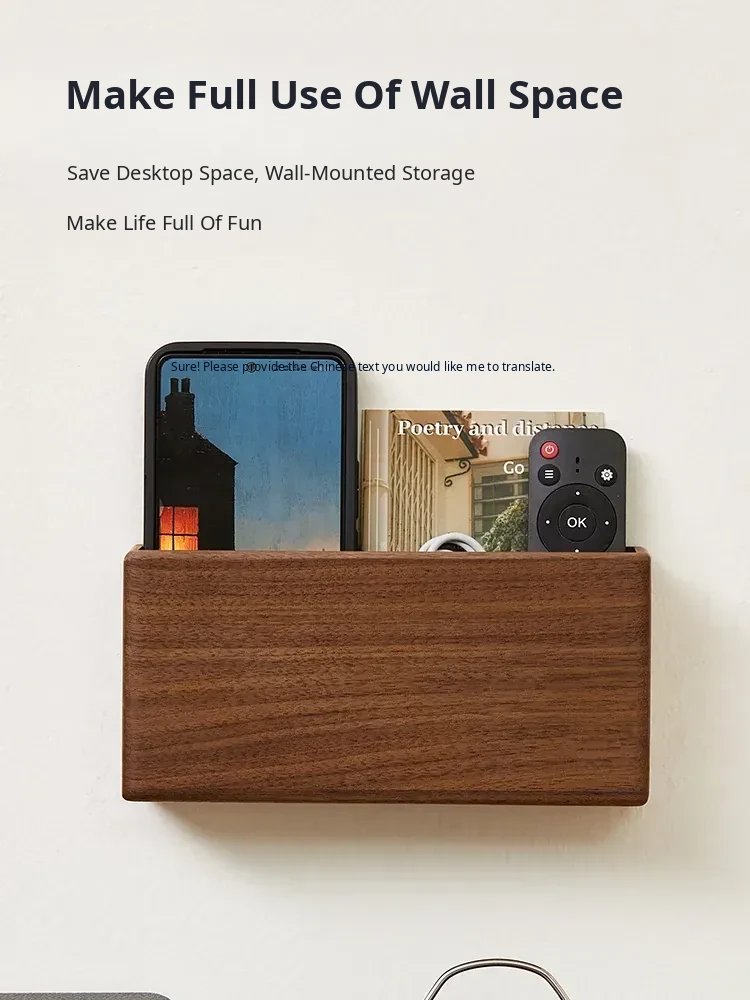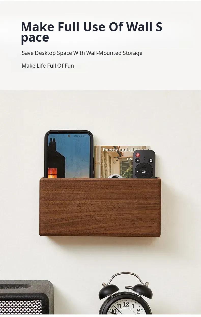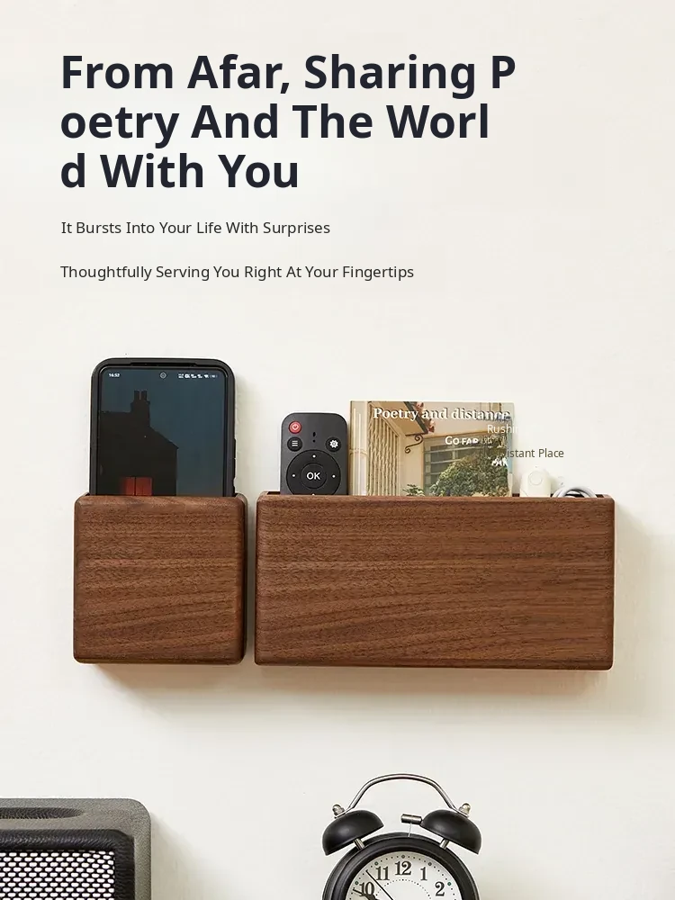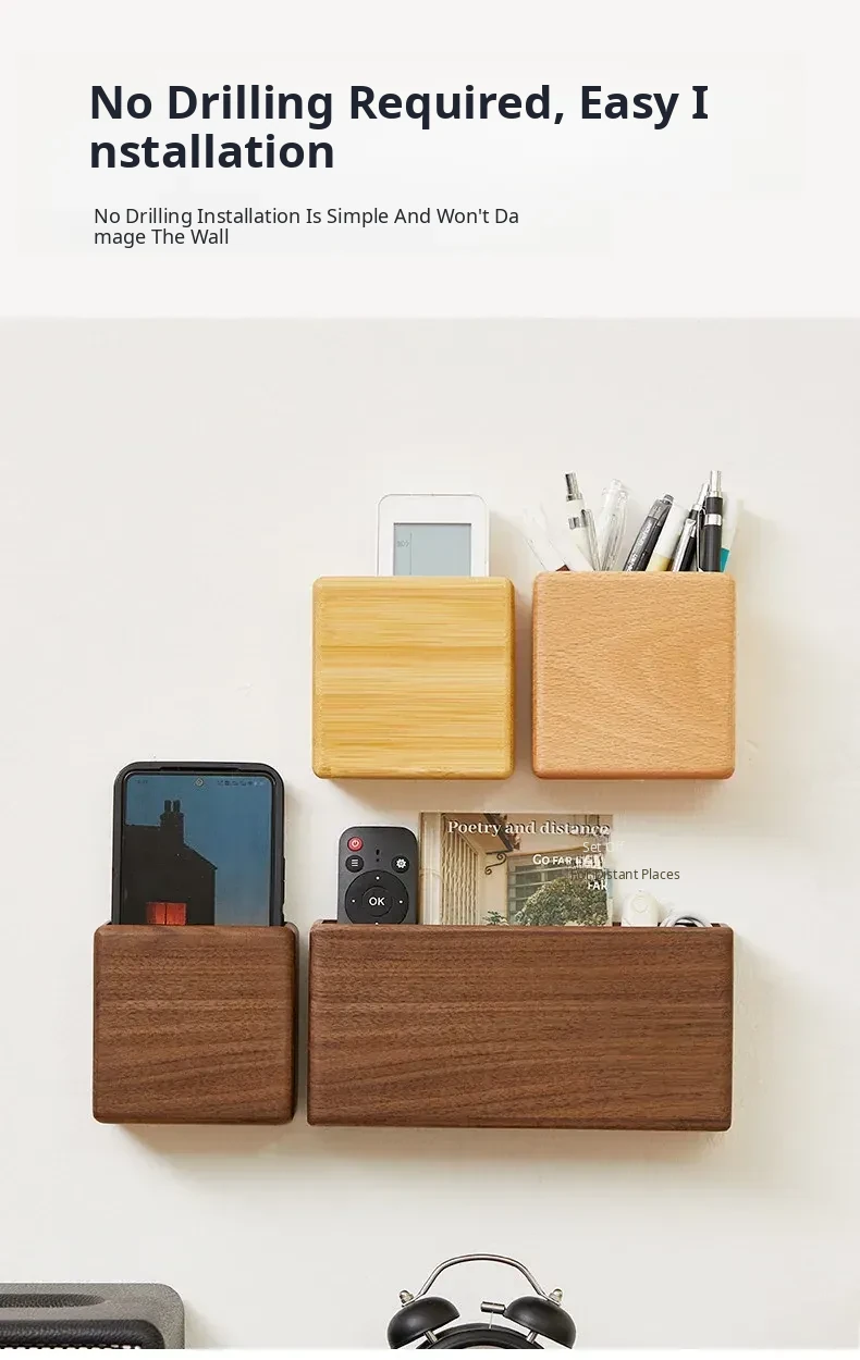 Wall-Mounted Solid Wood Remote Control Storage Box - No Drilling Required, Stylish Black Walnut Organizer for Air Conditioners and Phones
