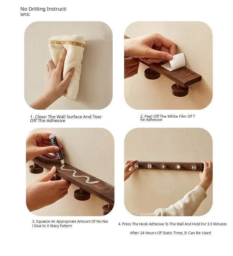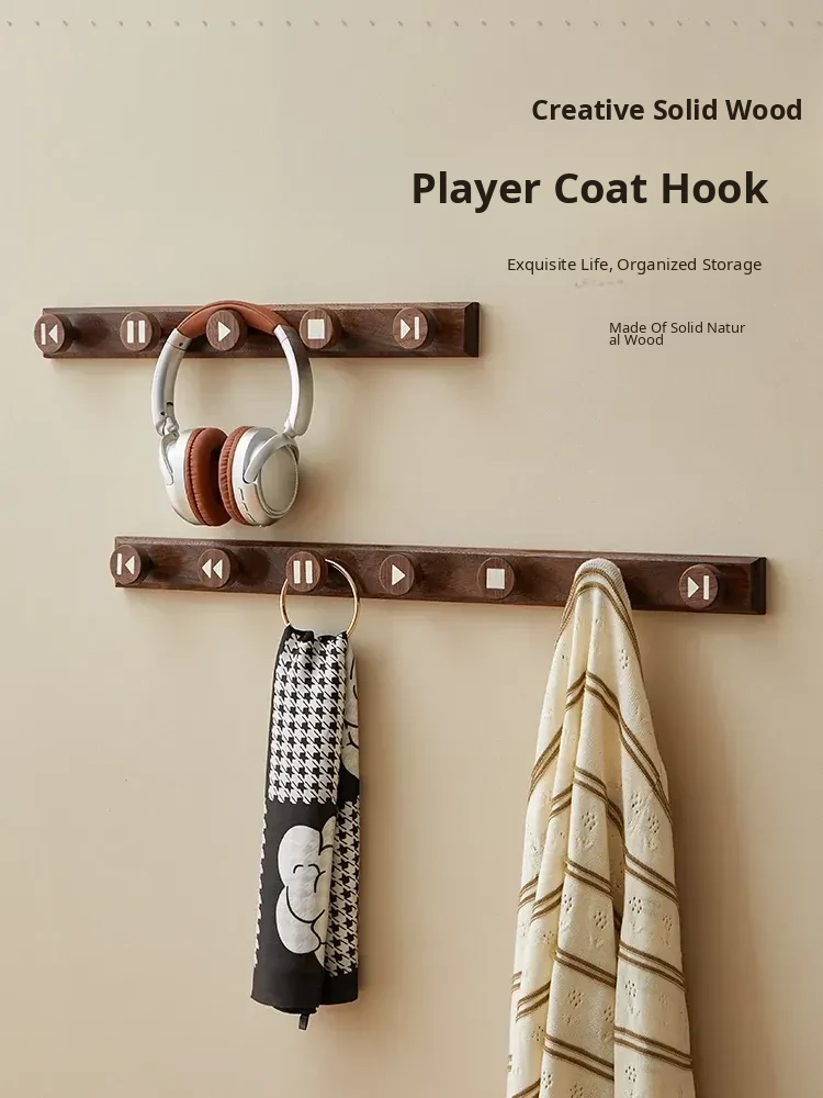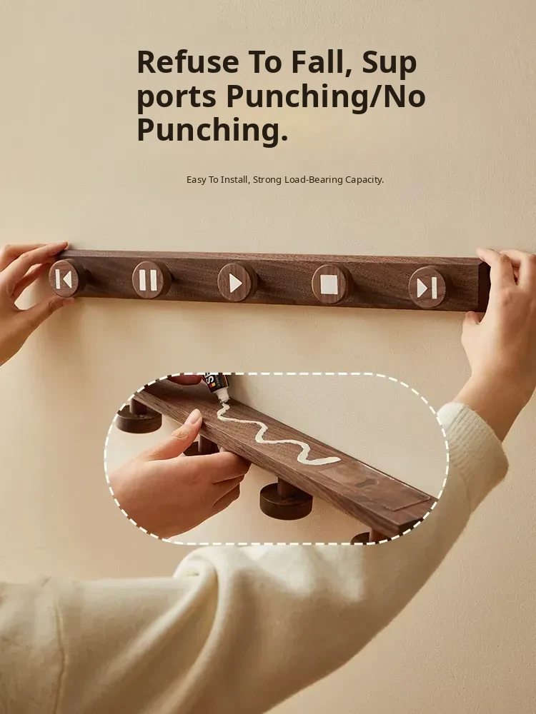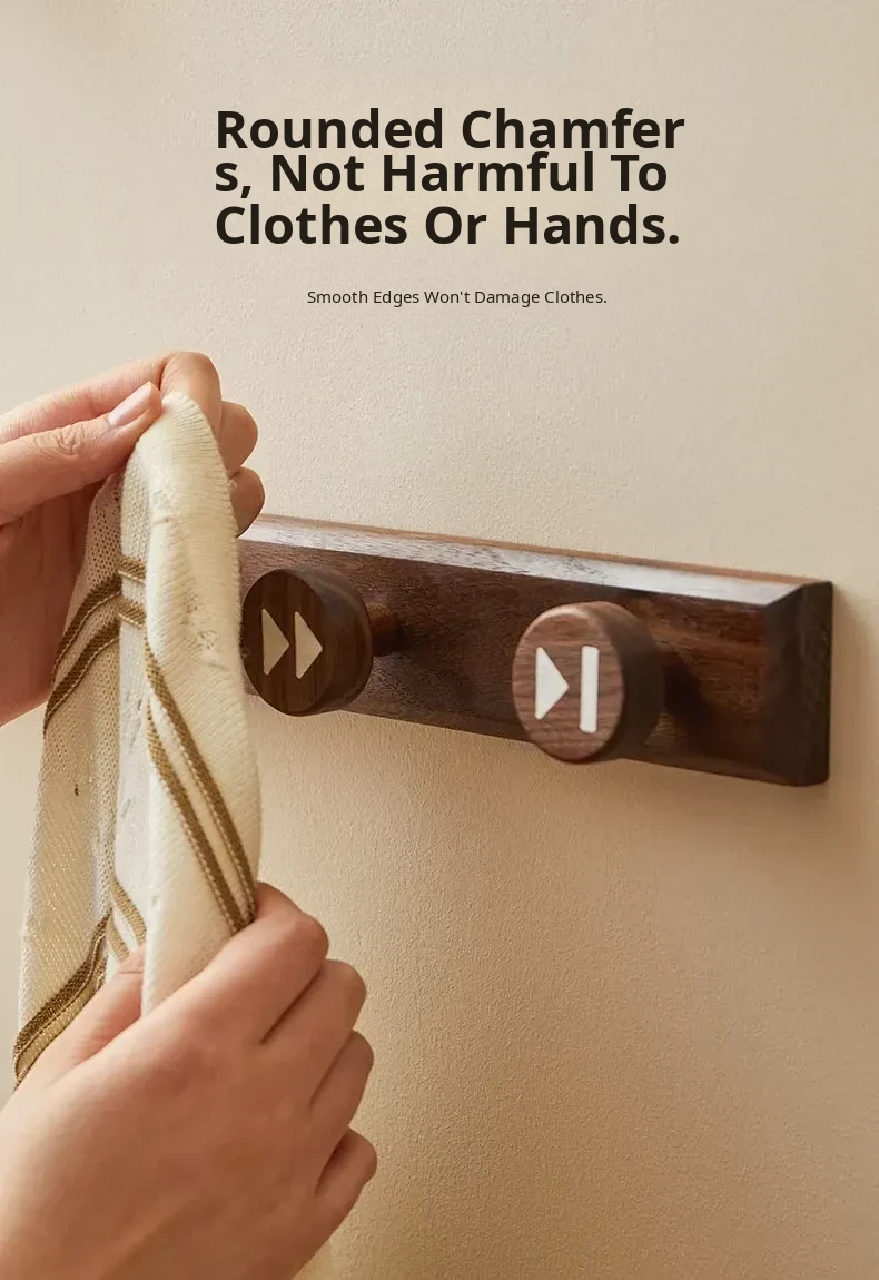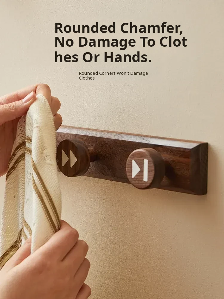 Wooden Hallway Wall-Mounted Coat Hooks - Strong Adhesive, No Drilling Required, Heavy-Duty Clothing and Hat Rack, Durable Solid Wood Design for Entryway Organization