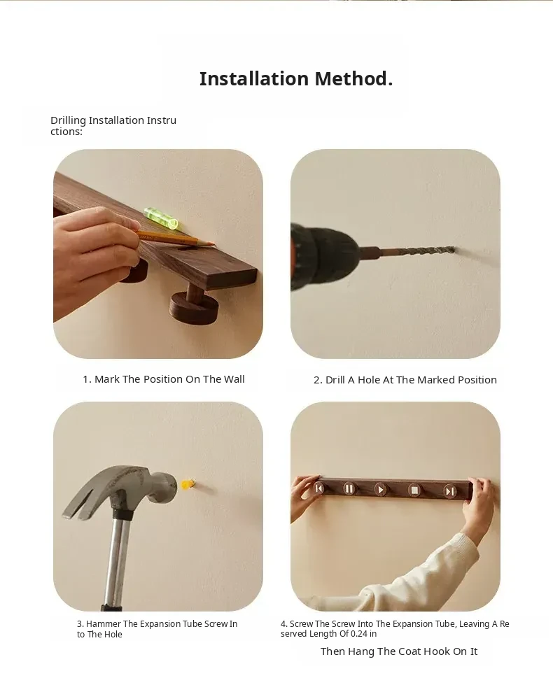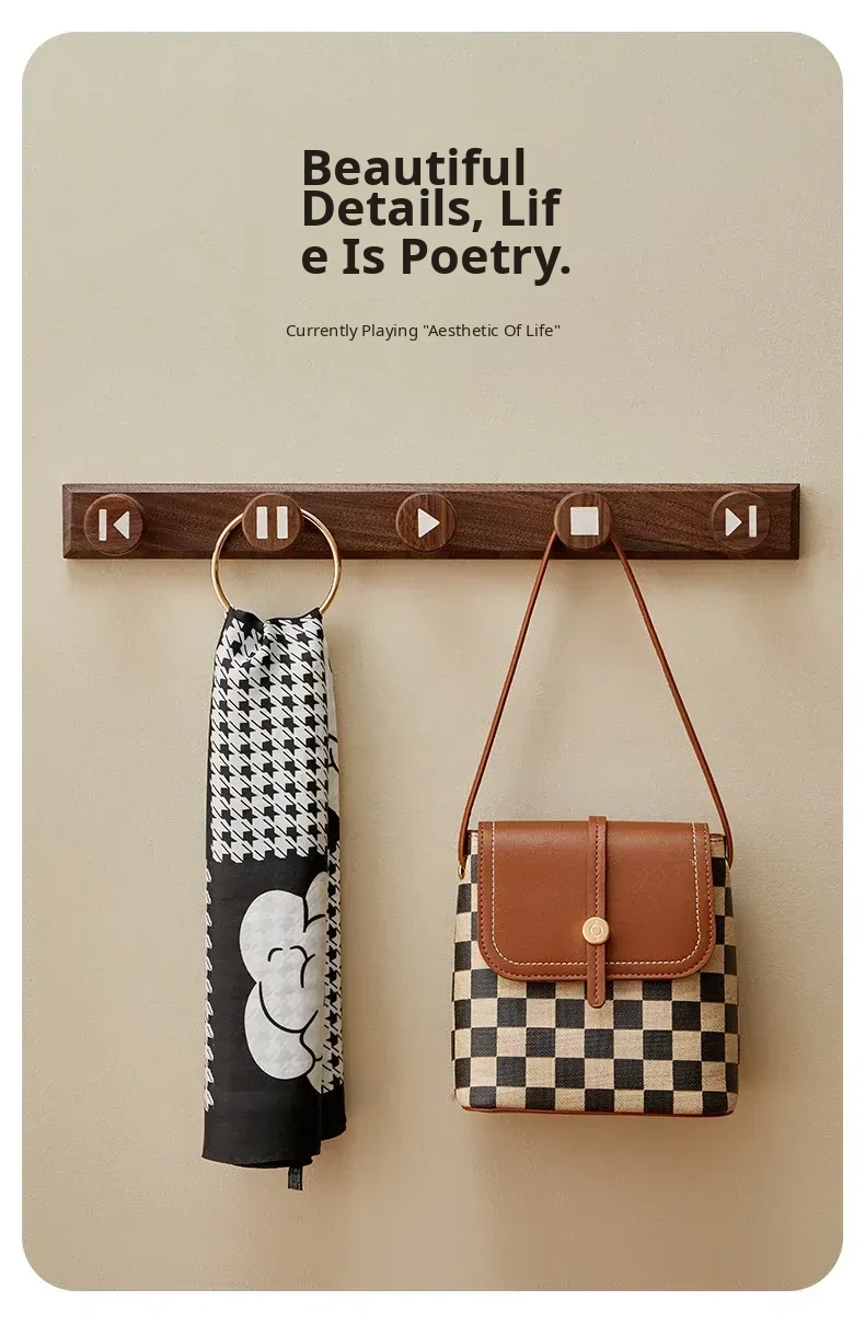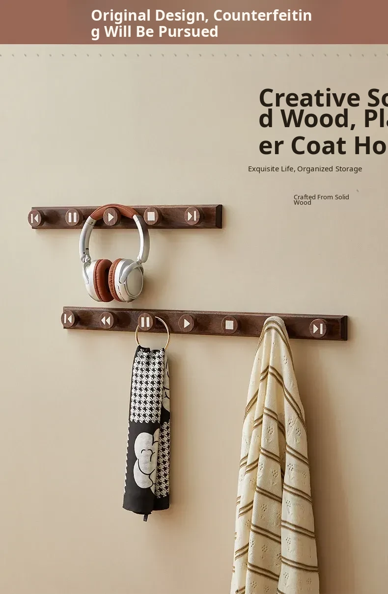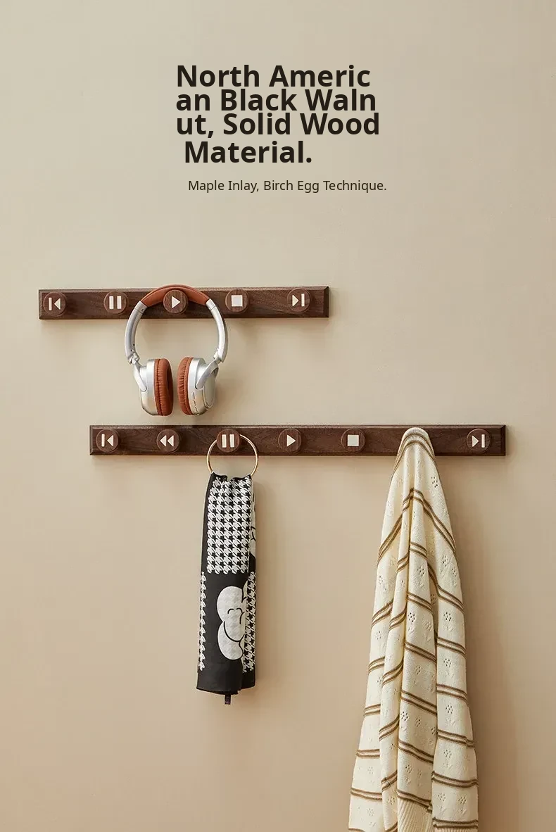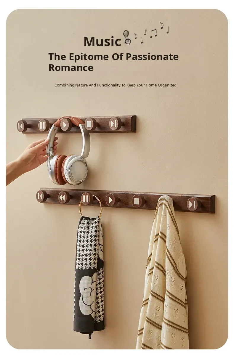 Wooden Hallway Wall-Mounted Coat Hooks - Strong Adhesive, No Drilling Required, Heavy-Duty Clothing and Hat Rack, Durable Solid Wood Design for Entryway Organization