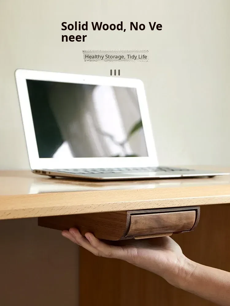 Wooden Office Desk Drawer Organizer - Creative Hidden Storage Box for Pens and Miscellaneous Items, Pull-Out Design
