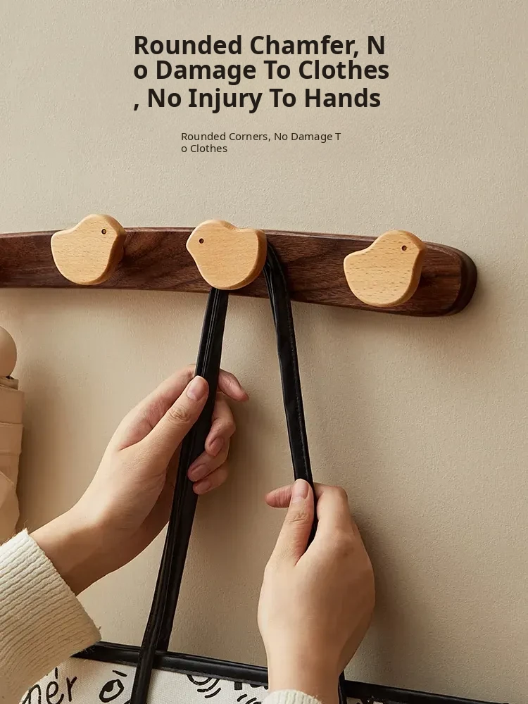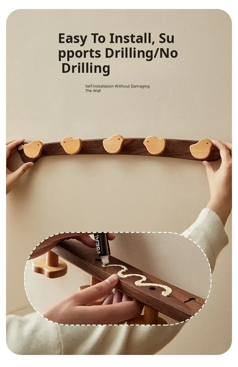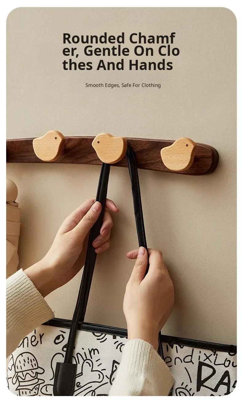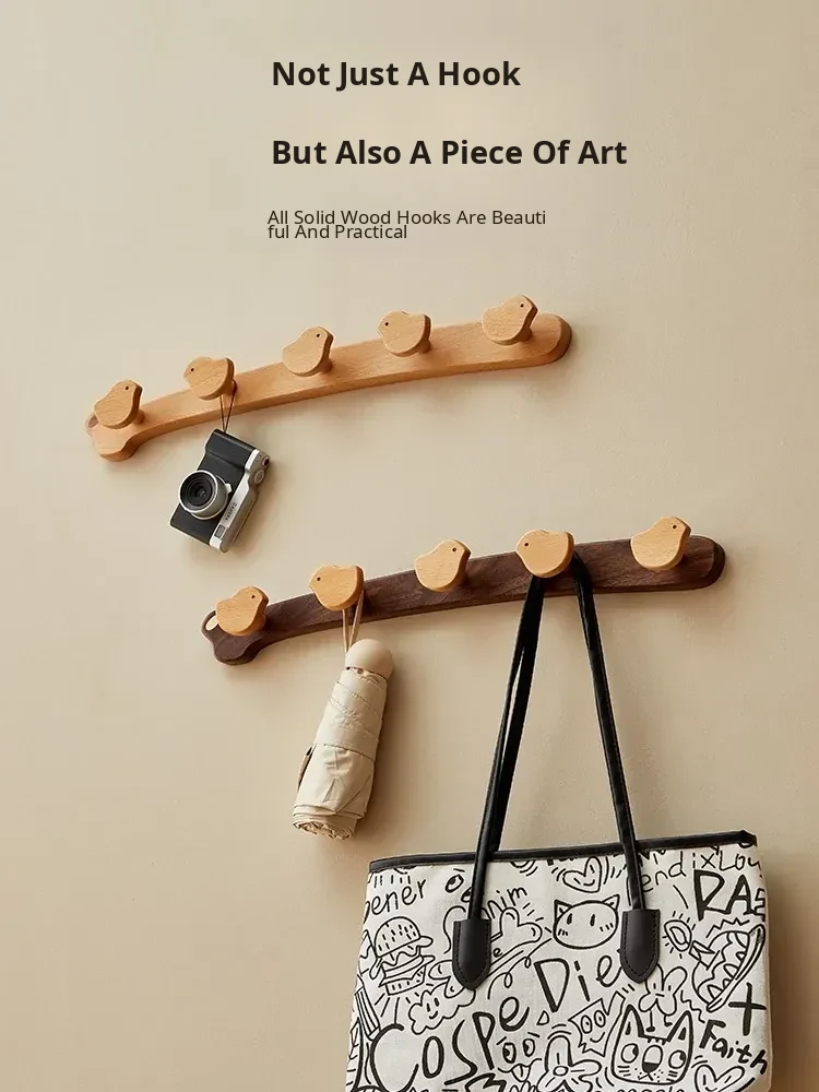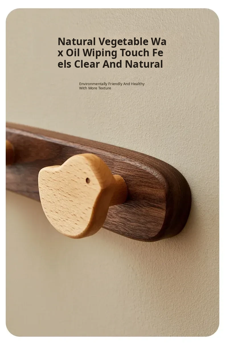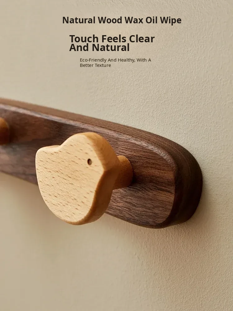 Wooden Wall-Mounted Coat Hooks for Entrance - Heavy-Duty Adhesive No-Drill Design, Sturdy Solid Wood Coat Rack for Hats and Coats - Perfect for Organizing Your Entryway!