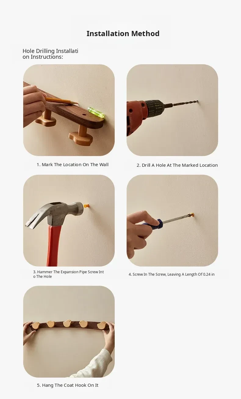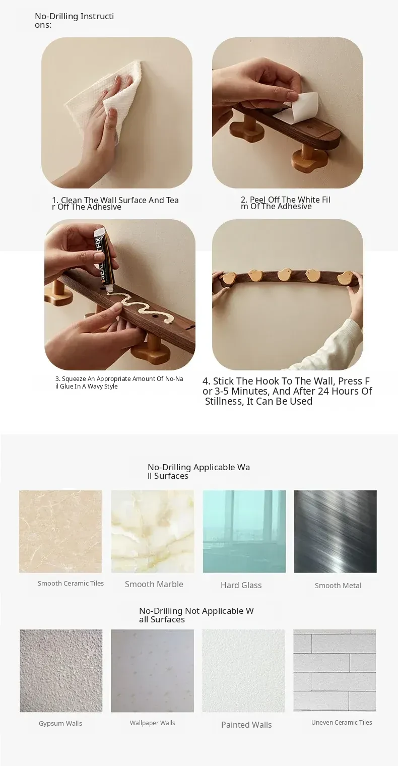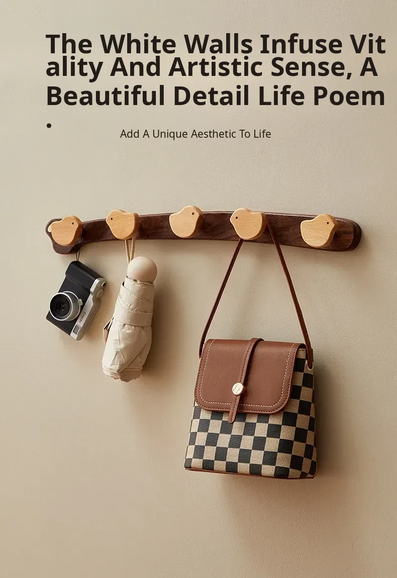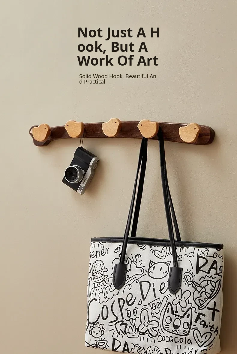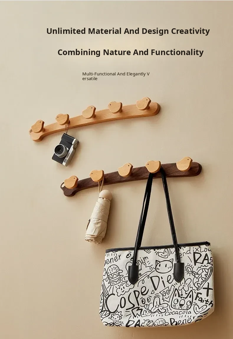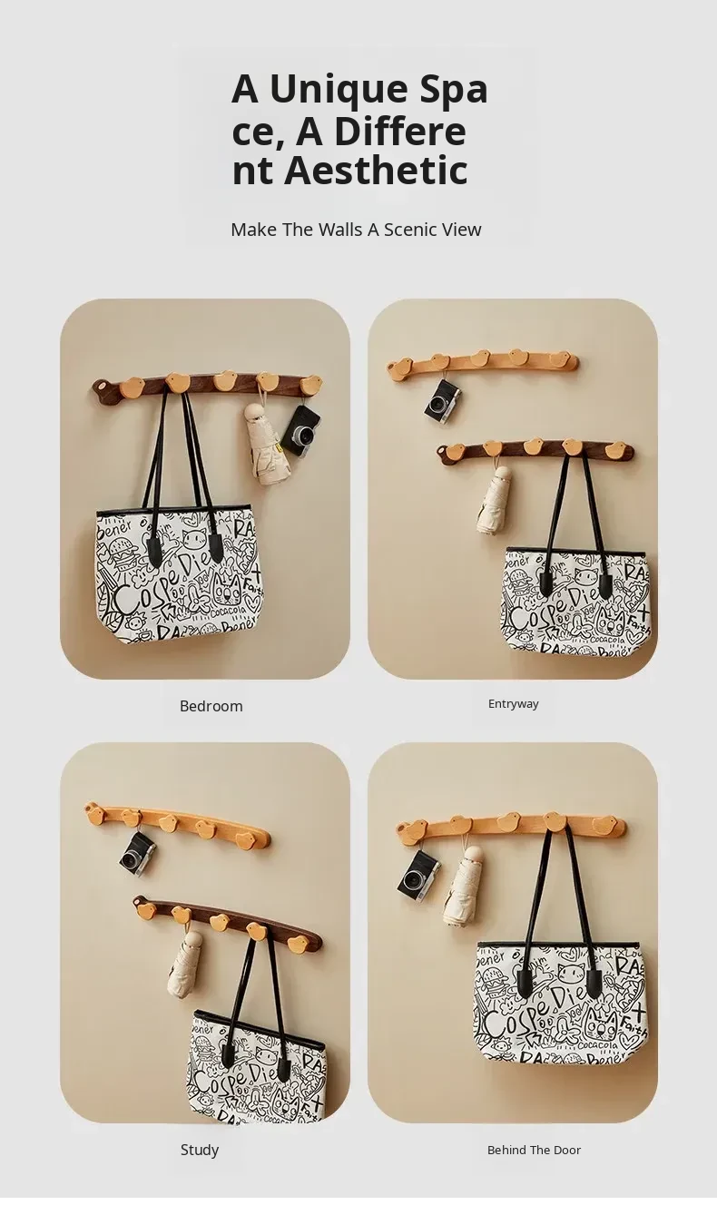 Wooden Wall-Mounted Coat Hooks for Entrance - Heavy-Duty Adhesive No-Drill Design, Sturdy Solid Wood Coat Rack for Hats and Coats - Perfect for Organizing Your Entryway!