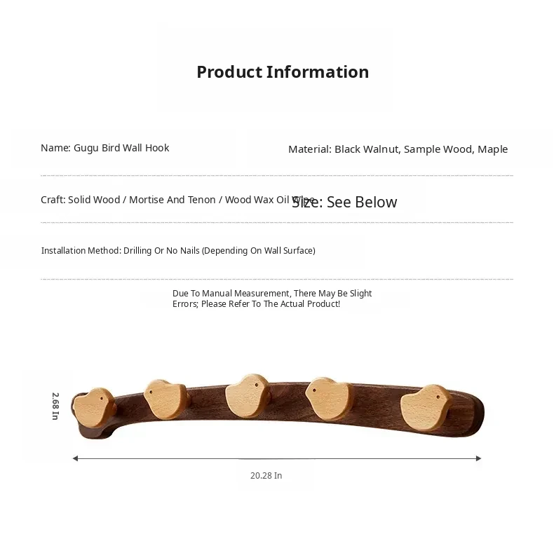 Black Walnut Cuckoo Clothes Hook 5 Hooks