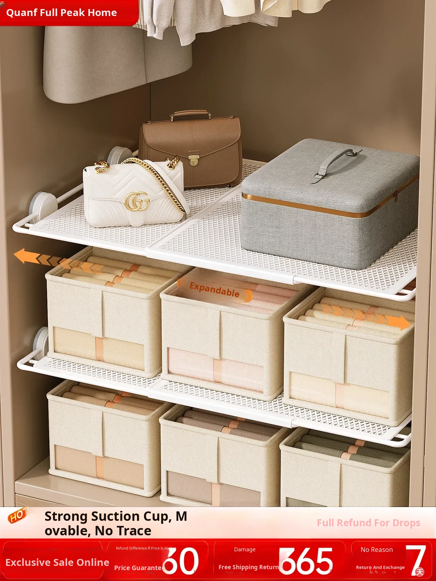Suction Cup Closet Shelf Organizer - Adjustable Layered Storage Rack for Easy Organization, No Drilling Required, Perfect for Maximizing Closet Space