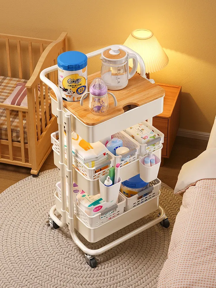 Portable Multi-Layer Baby Supplies Cart - Versatile Feeding Station & Snack Organizer for Bedroom & Nursery, Easy to Move and Store