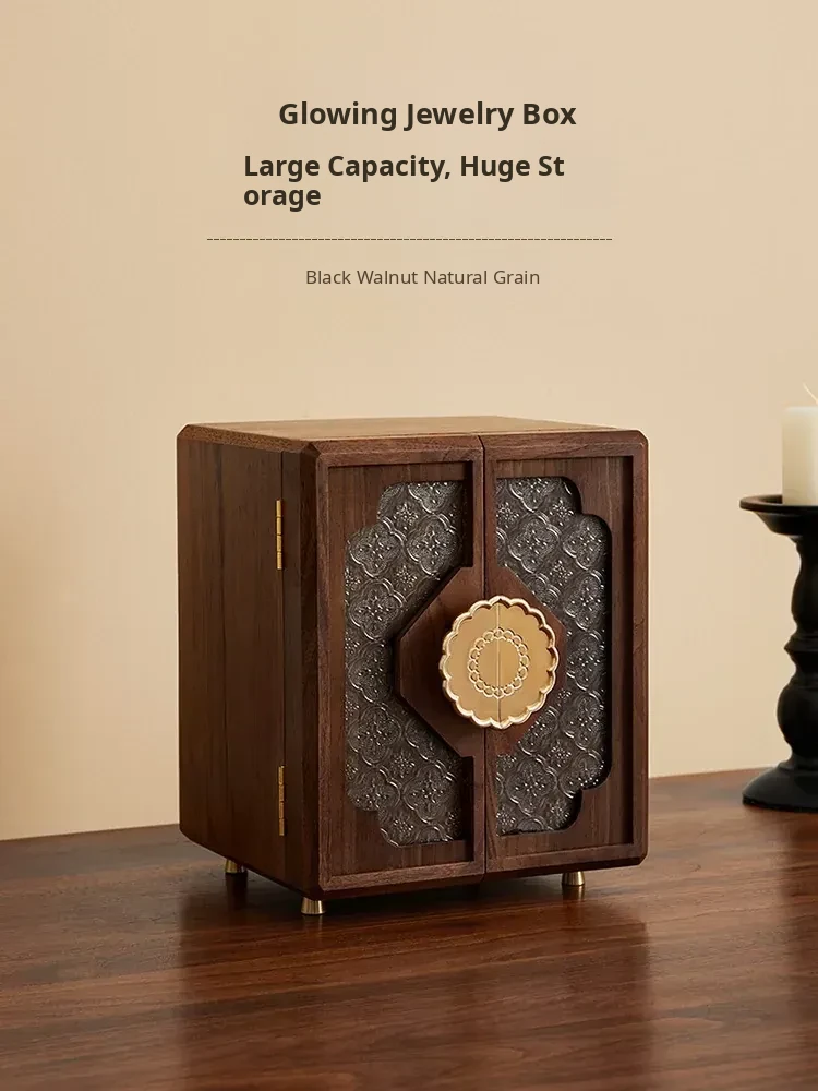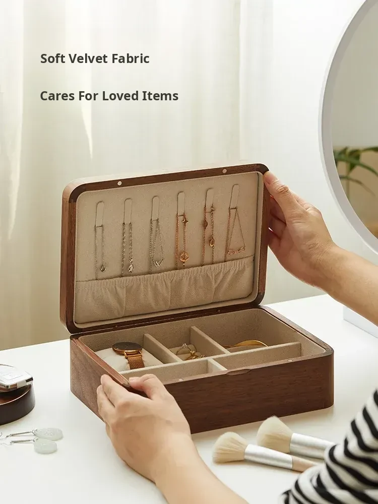Elegant Solid Black Walnut Jewelry Box - High-End Multi-Layer Storage Organizer for Rings and Earrings - Spacious & Luxurious Design for Your Precious Accessories