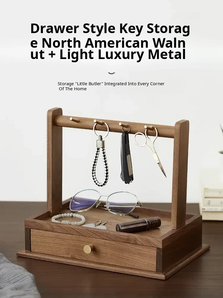 Wooden Drawer Storage Box - Stylish Organizer for Jewelry, Cosmetics, and Miscellaneous Items - Entryway Key Holder and Hook Rack