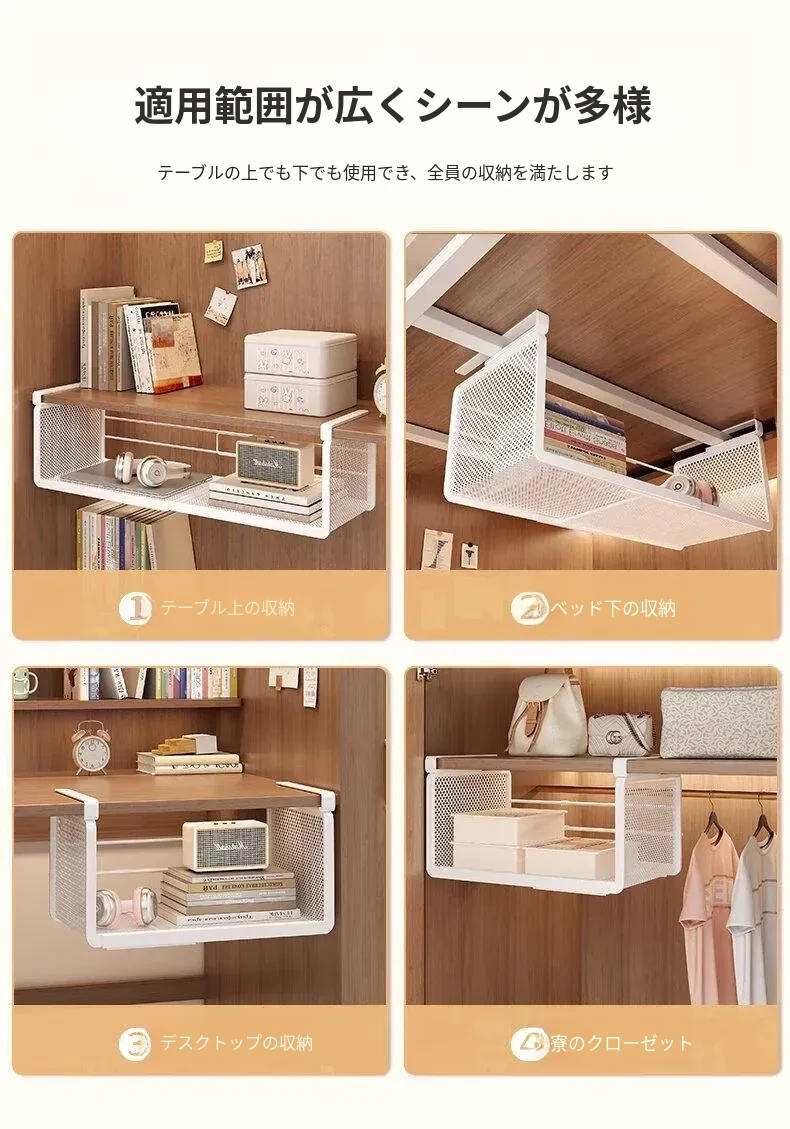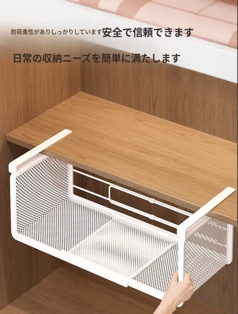 伸縮式サイドバスケットテーブル!寮生活にぴったりの収納ラック。壁掛けで穴あけ不要、衣類や小物をスッキリ整理できる便利アイテム!あなたのスペースを有効活用しましょう!