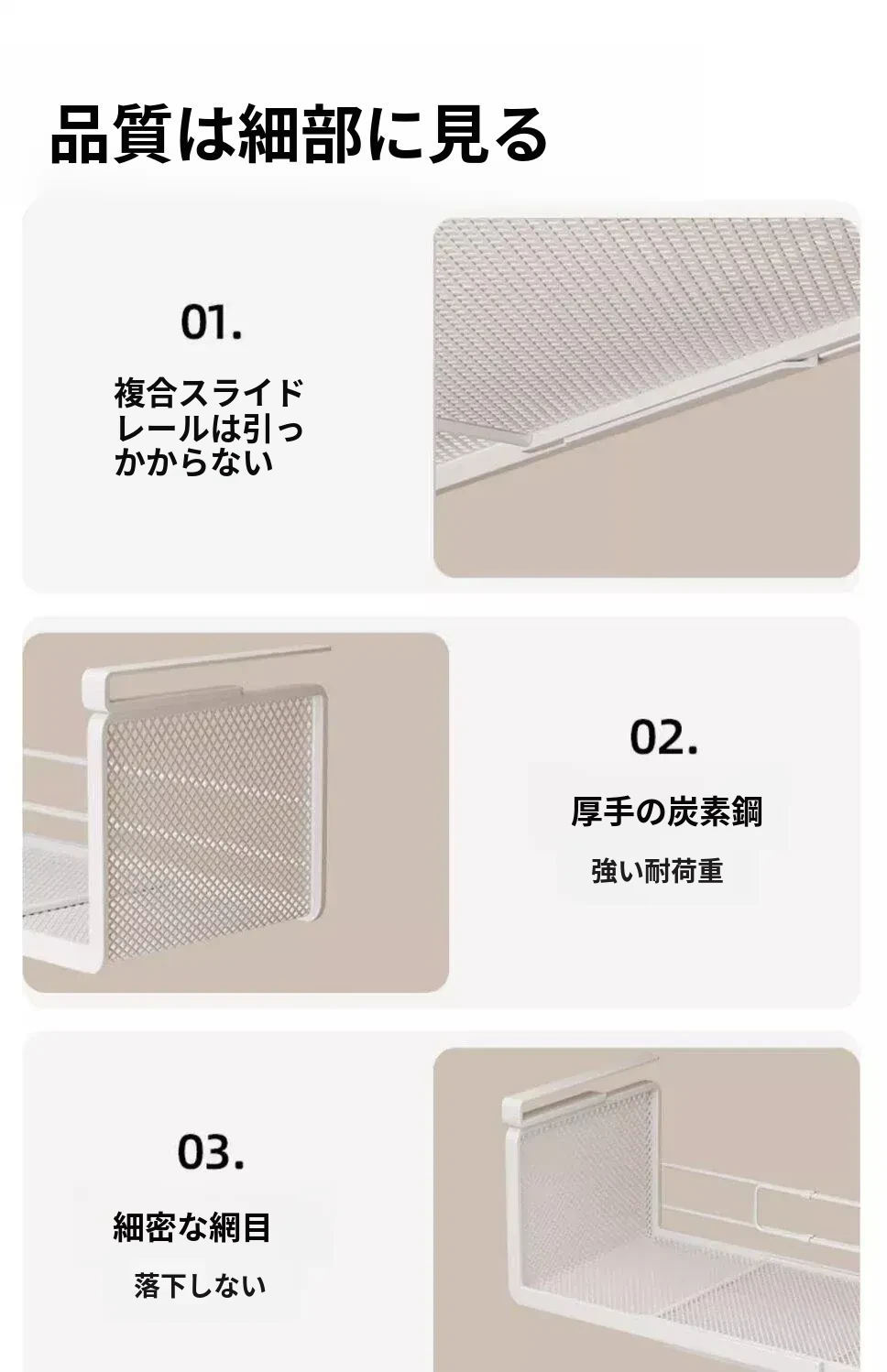 白色粗メッシュタイプ【奥行25cm 高さ20cm】 板の厚さは3cm未満を推奨 可伸縮長さ36-60cm