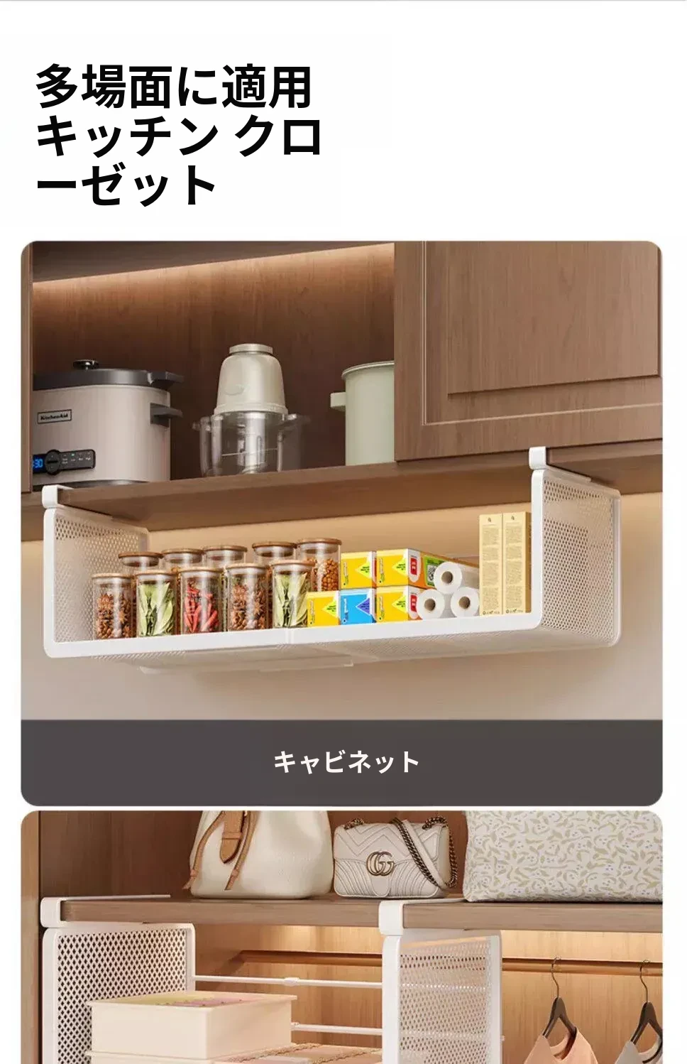 白色メッシュタイプ【奥行25cm 高さ20cm】 板の厚さは3cm未満を推奨 可伸縮長さ36-60cm