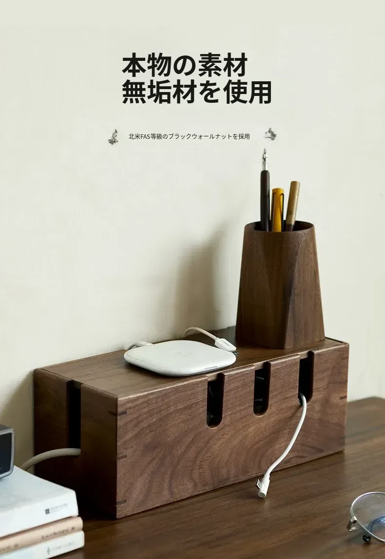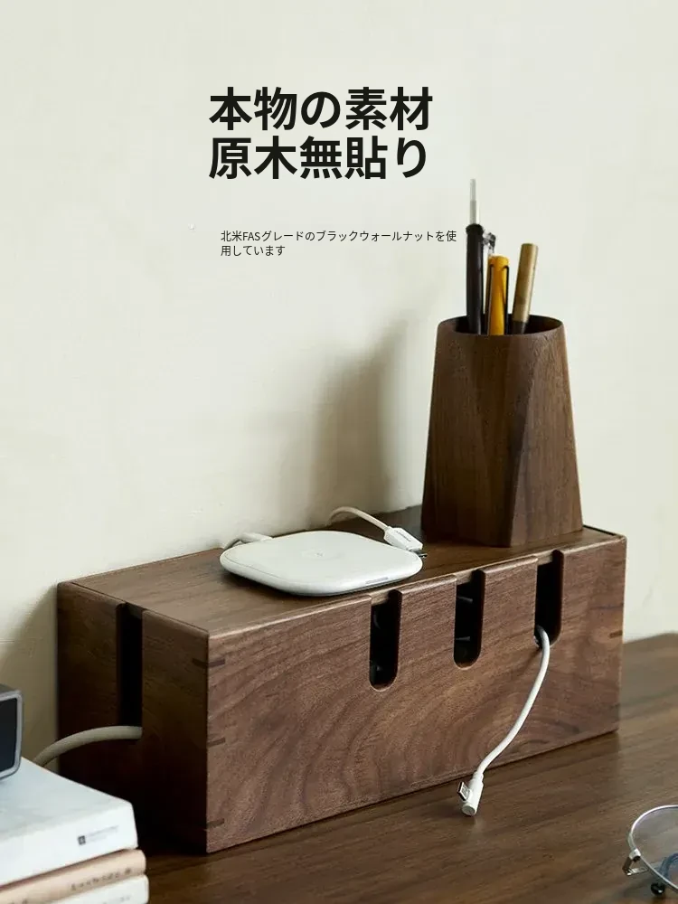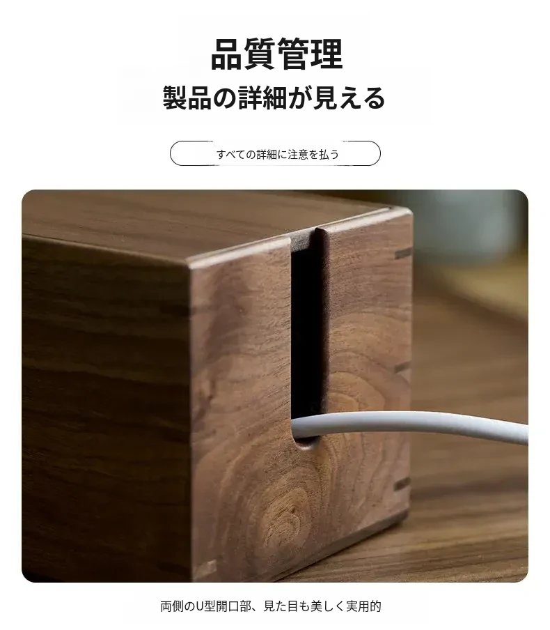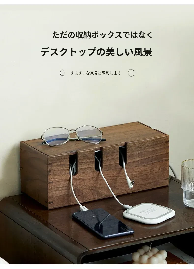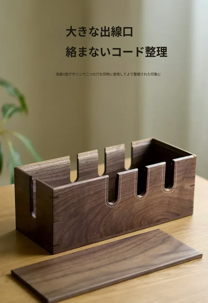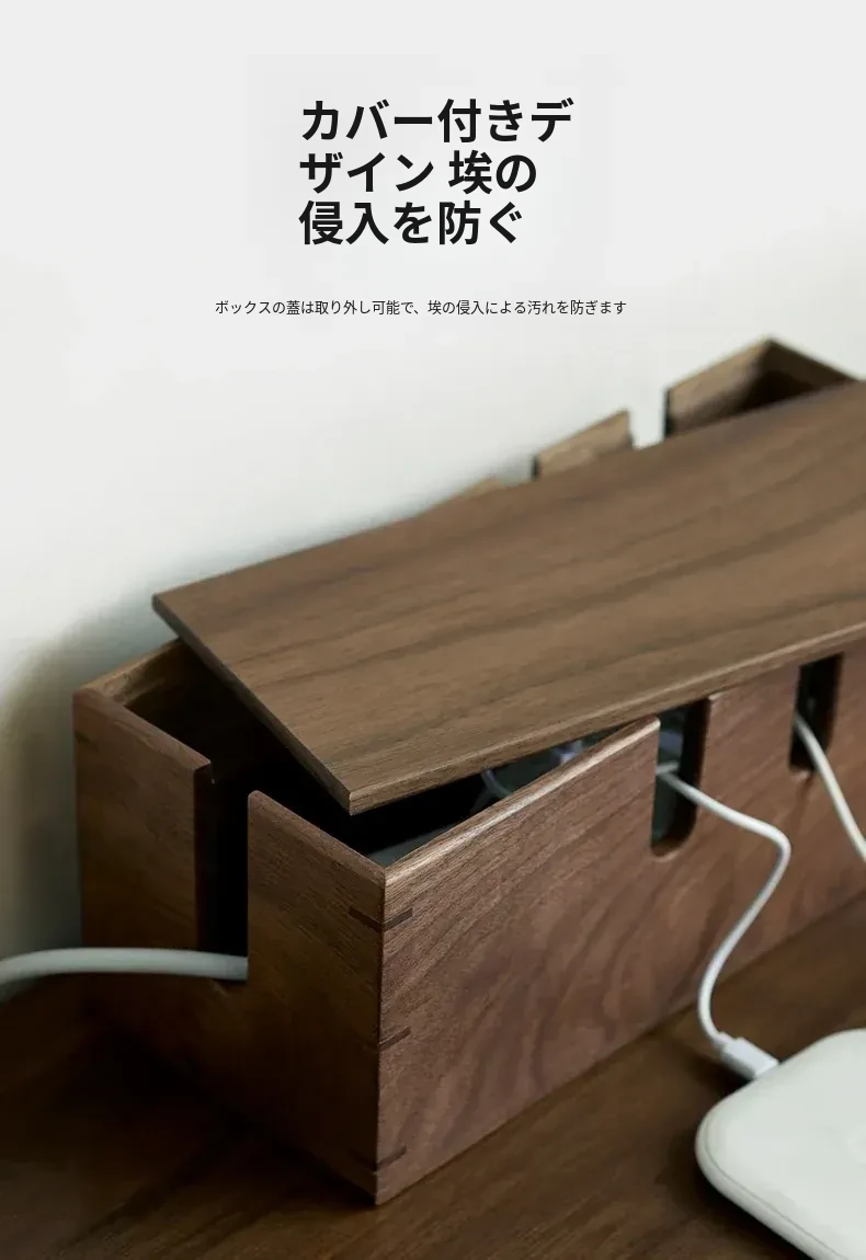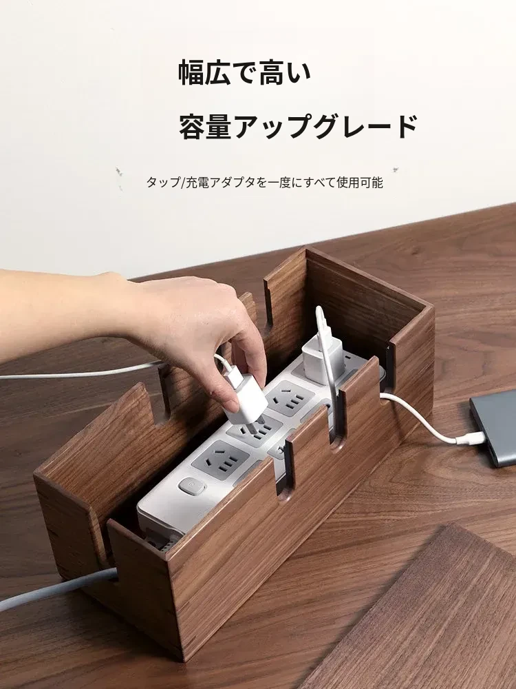 ウォールナット木製デスク用電源ケーブル収納ボックス - おしゃれで機能的なマルチタップ!配線をスッキリ整理し、デスク周りをスマートに演出。快適な作業環境を手に入れましょう!