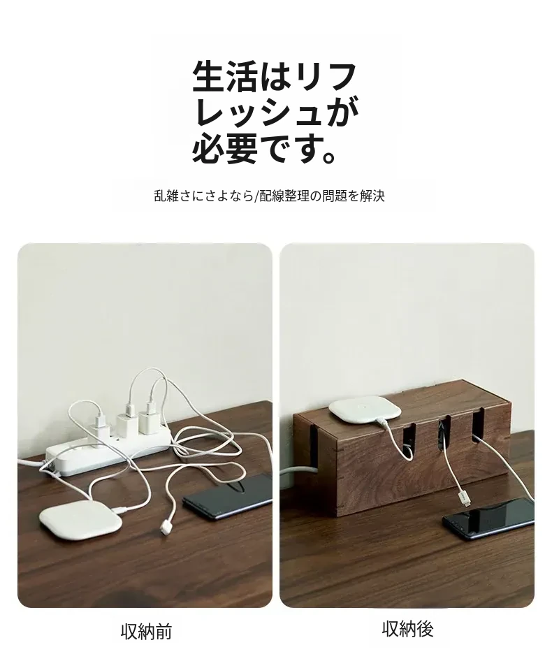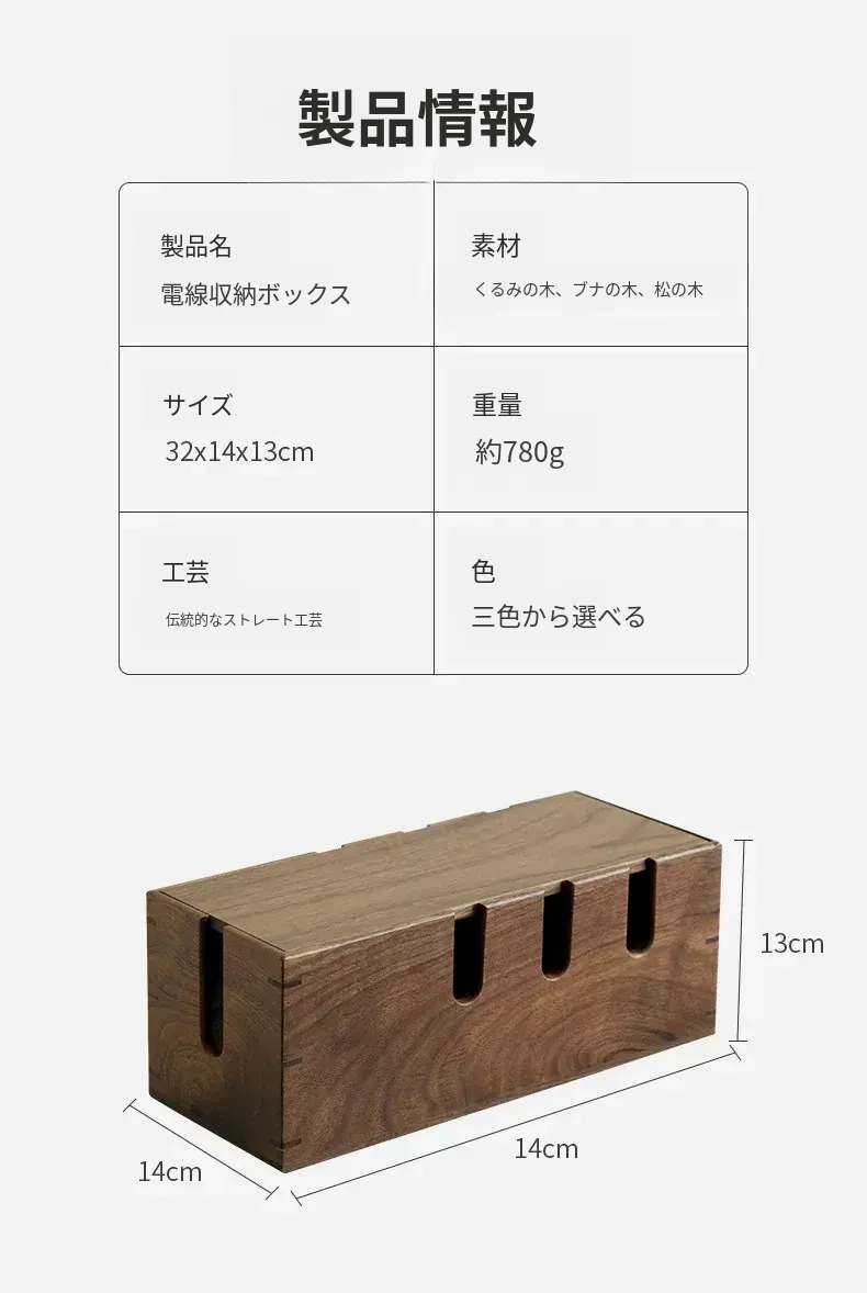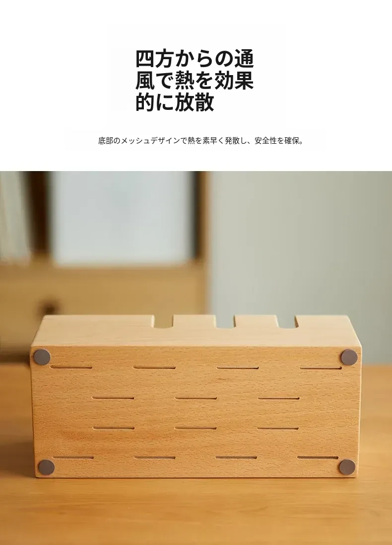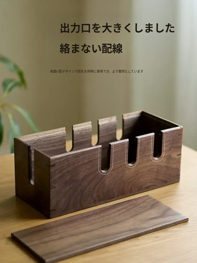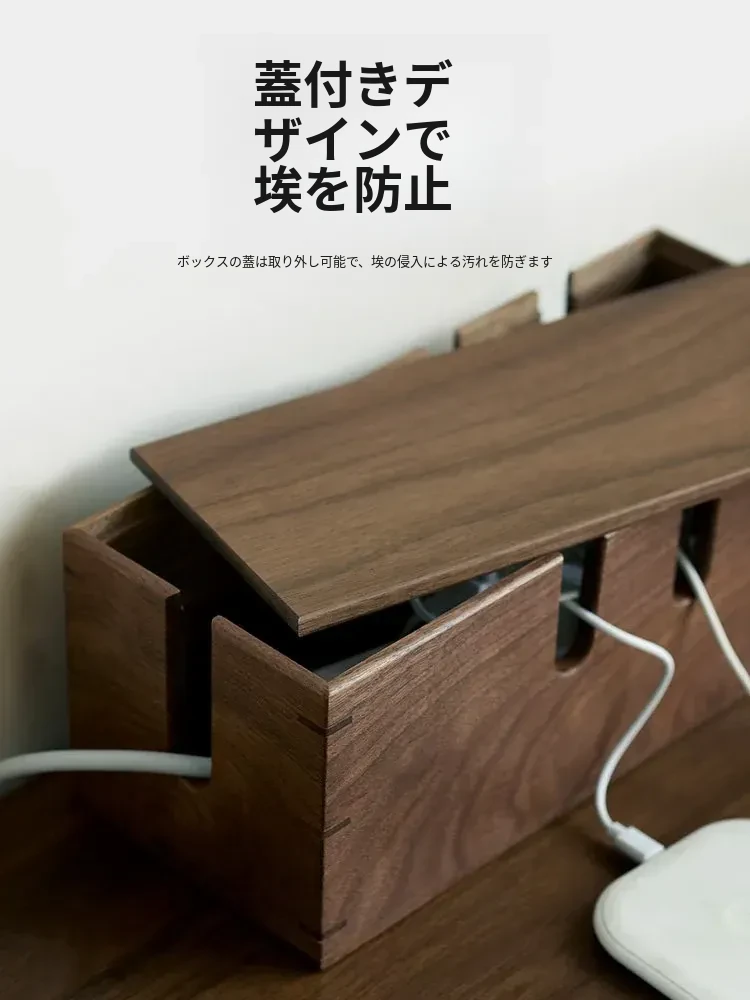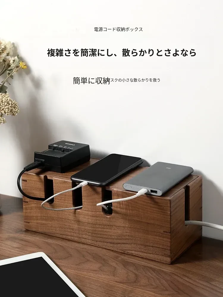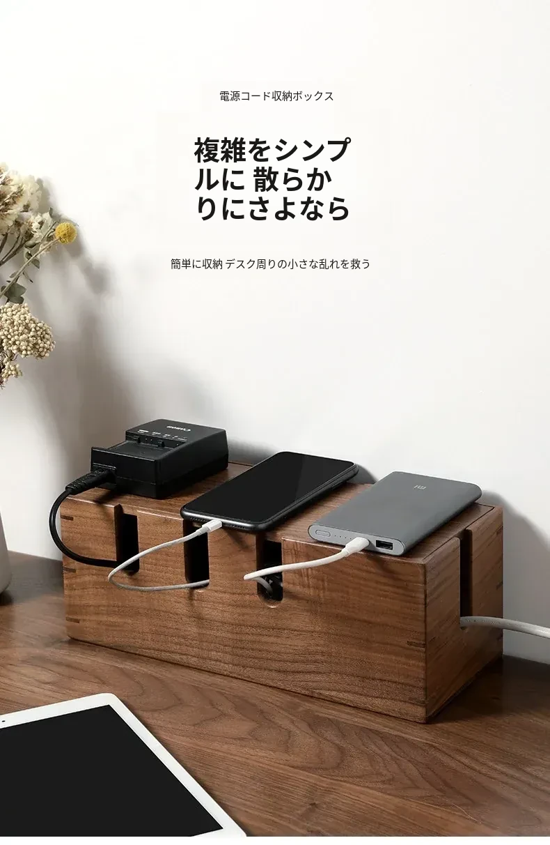 ウォールナット木製デスク用電源ケーブル収納ボックス - おしゃれで機能的なマルチタップ!配線をスッキリ整理し、デスク周りをスマートに演出。快適な作業環境を手に入れましょう!