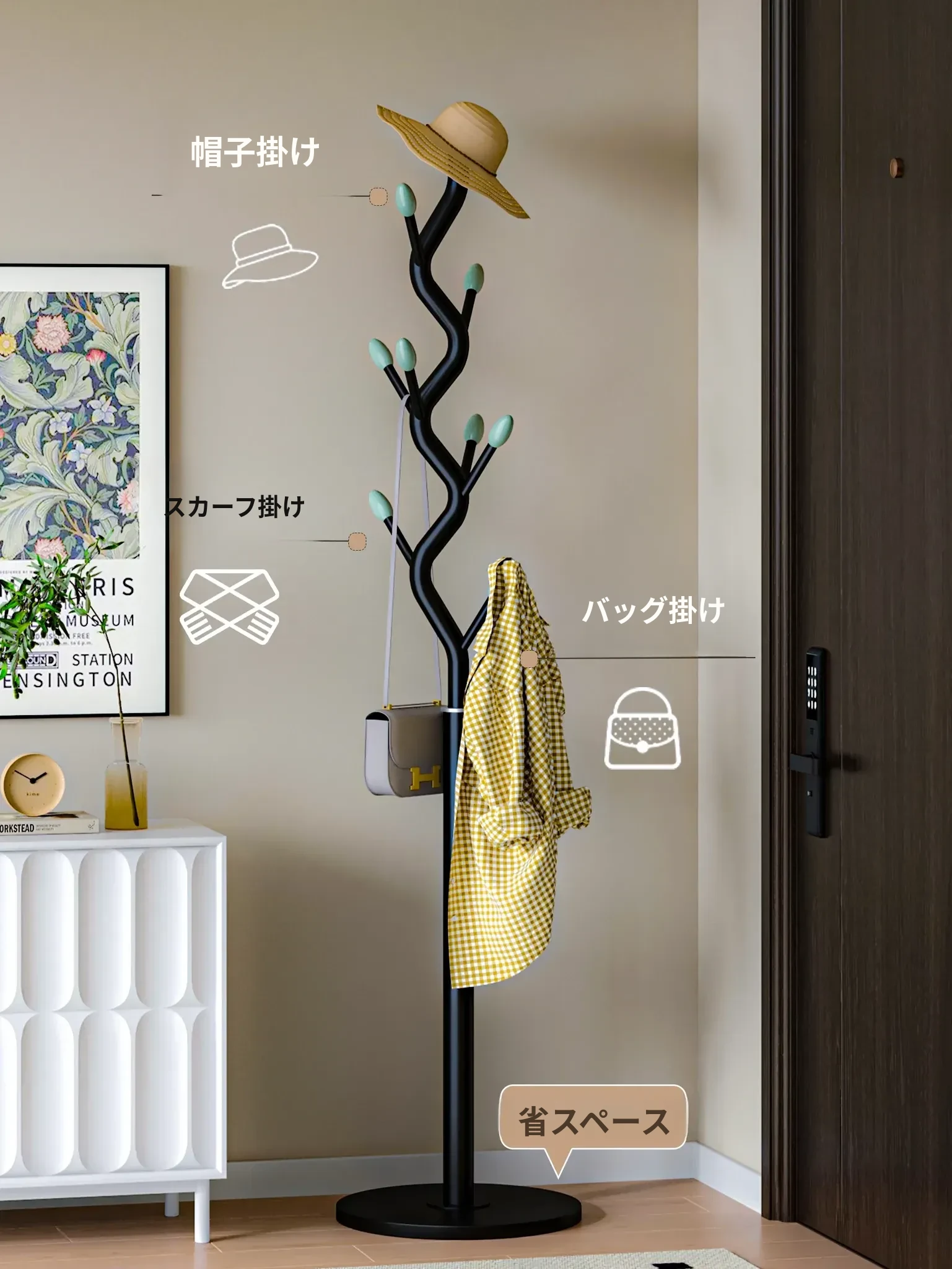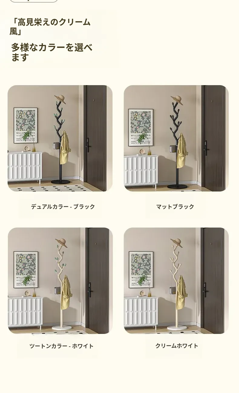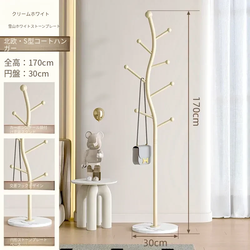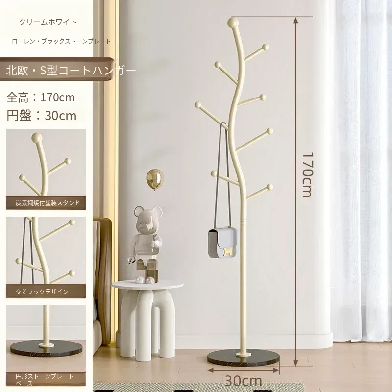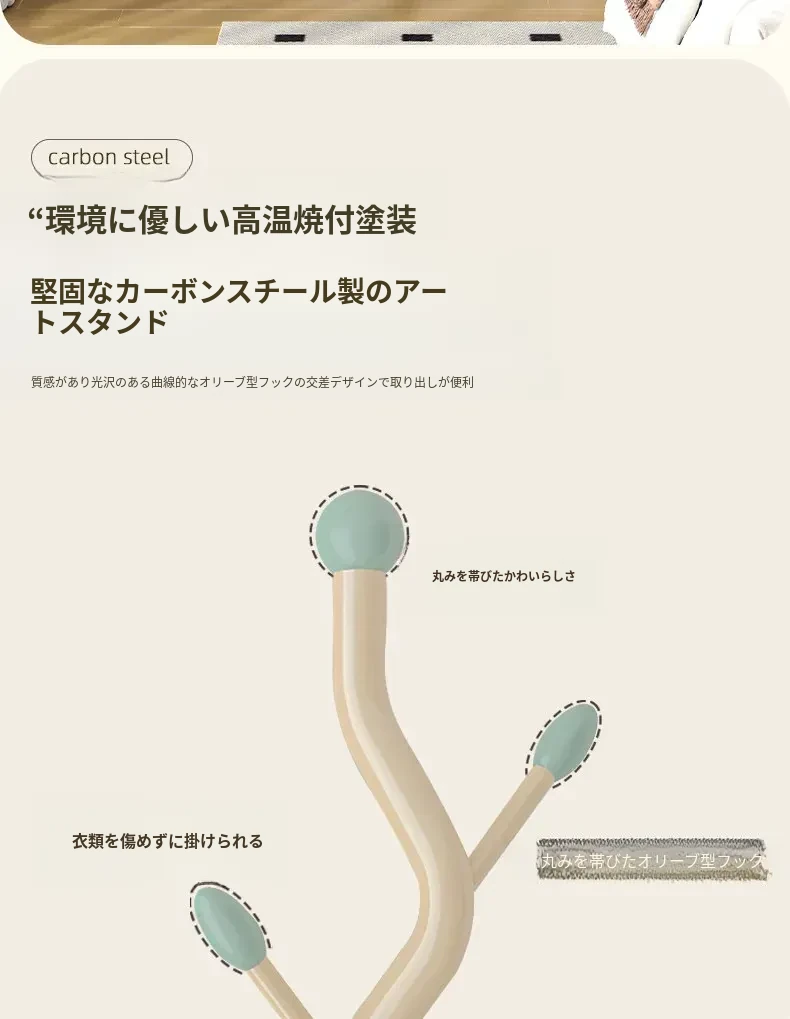 クリーム風のスタイリッシュな立体ハンガー - シンプルでおしゃれな室内用コートラック、寝室やリビングに最適!衣類や帽子を美しく収納して、お部屋をスッキリ魅せるアイテムです。