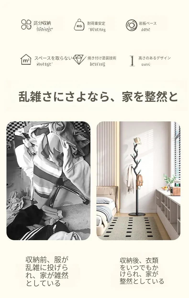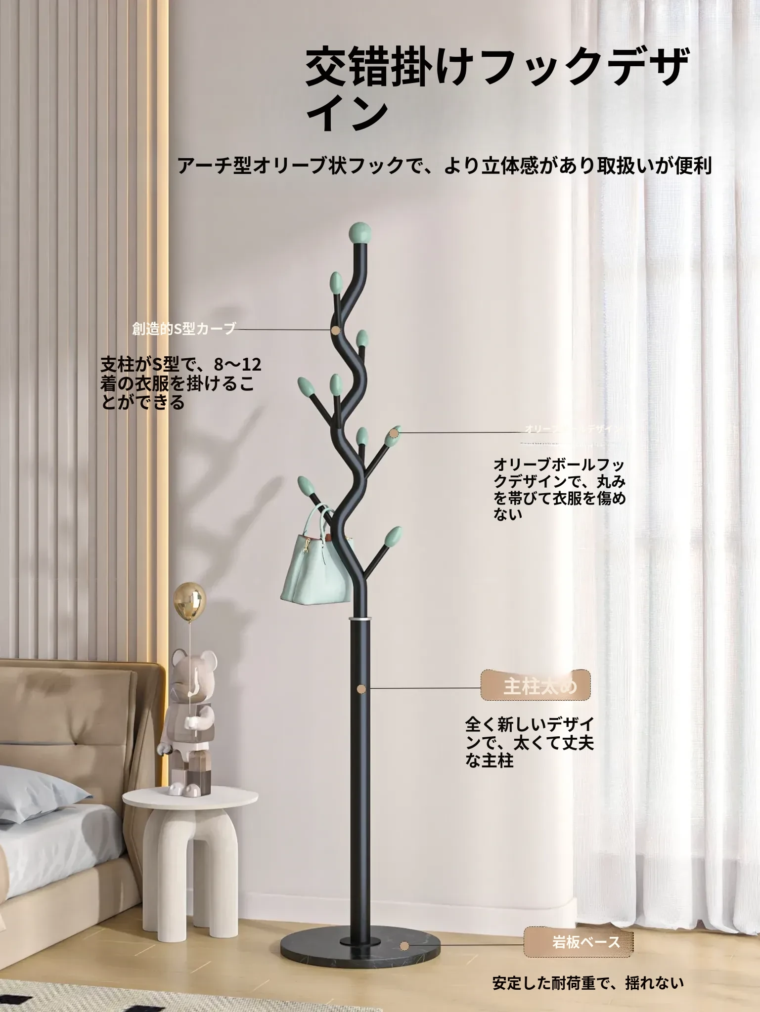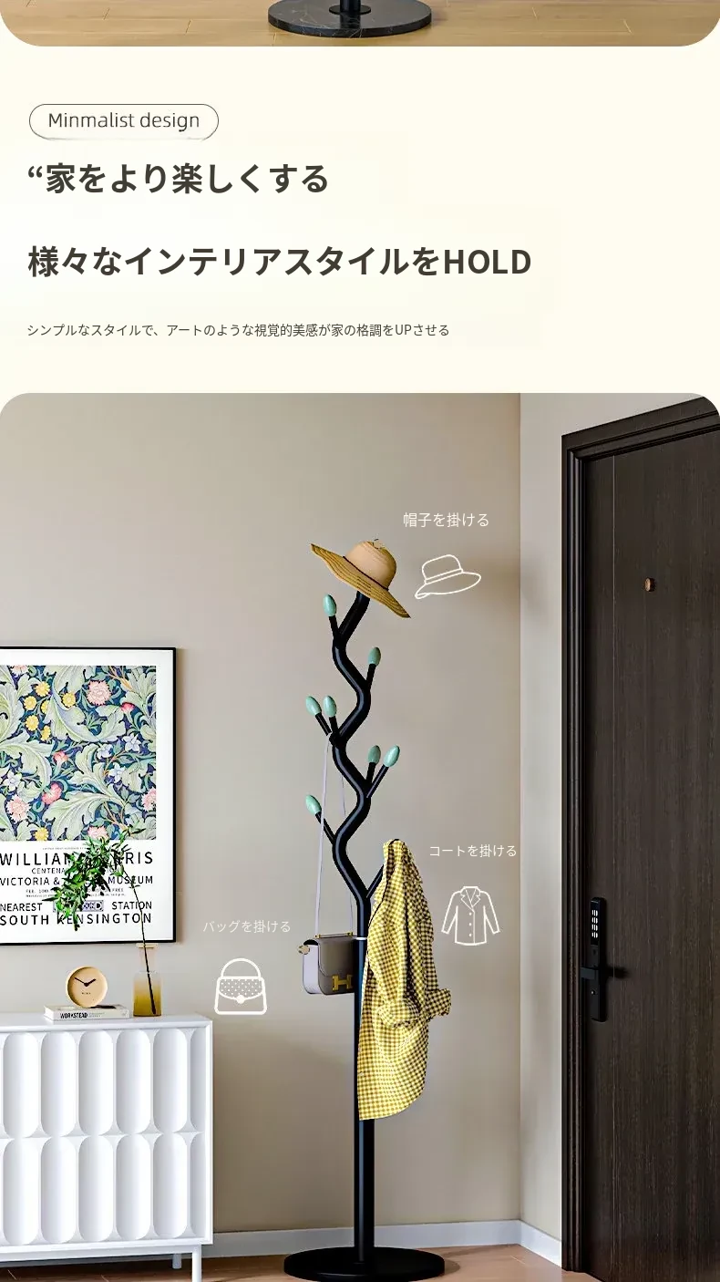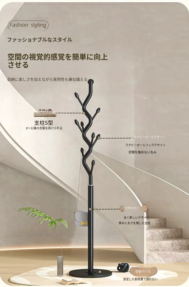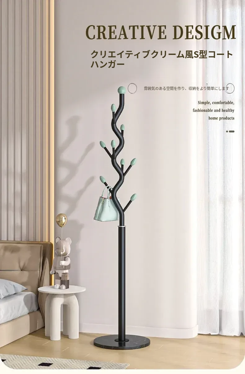 クリーム風のスタイリッシュな立体ハンガー - シンプルでおしゃれな室内用コートラック、寝室やリビングに最適!衣類や帽子を美しく収納して、お部屋をスッキリ魅せるアイテムです。