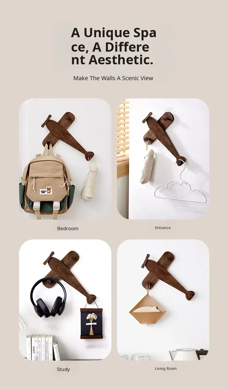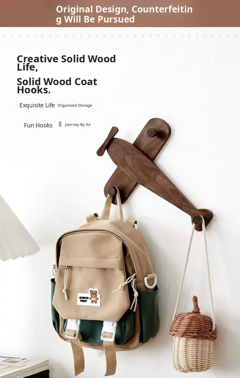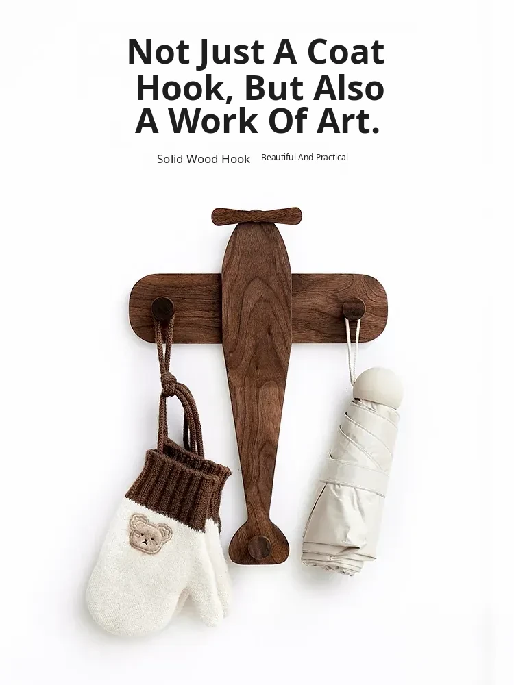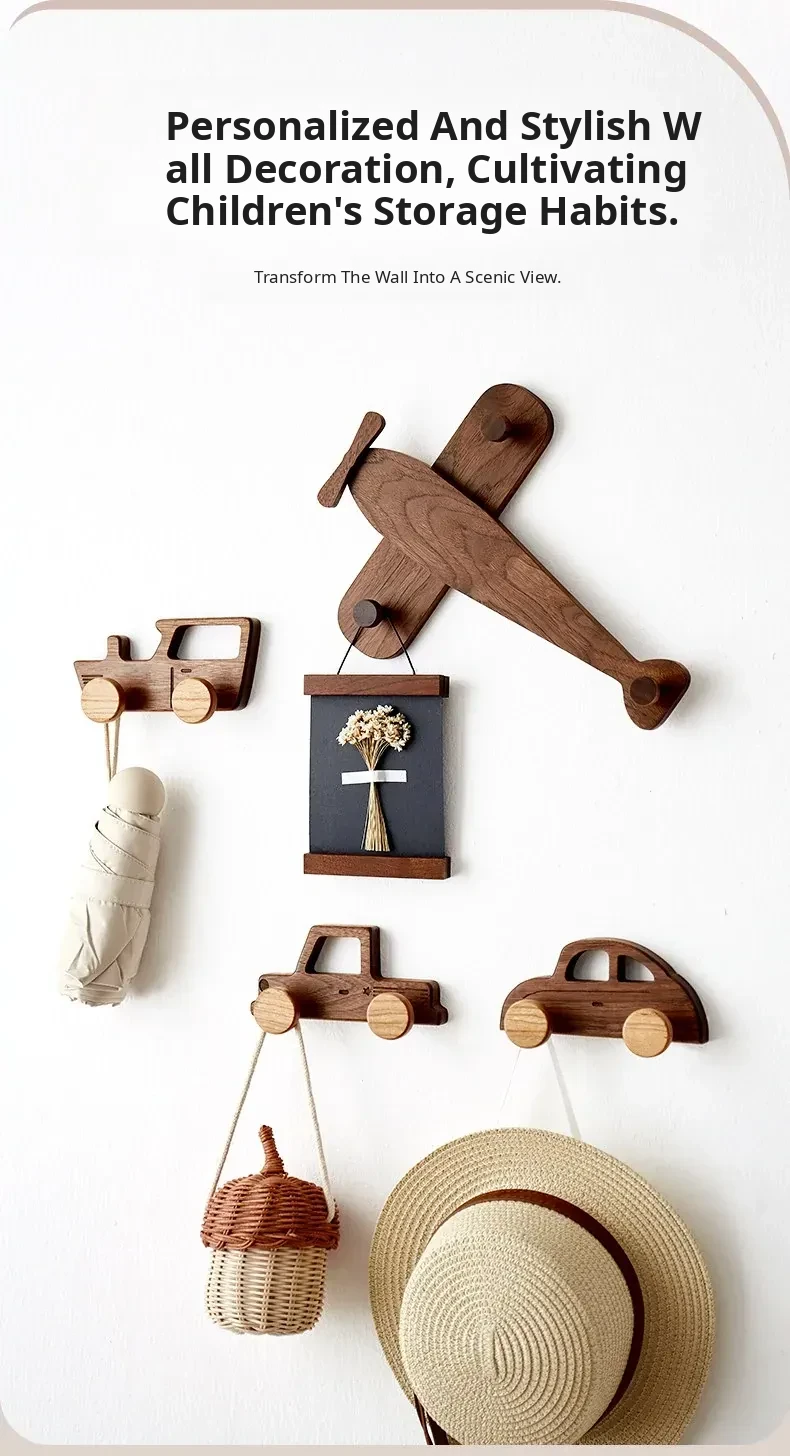 Cute Solid Wood Wall-Mounted Coat Hooks for Kids' Rooms - No Drilling Required, Perfect for Entryways and Wardrobes, Easy Installation for Hats and Coats