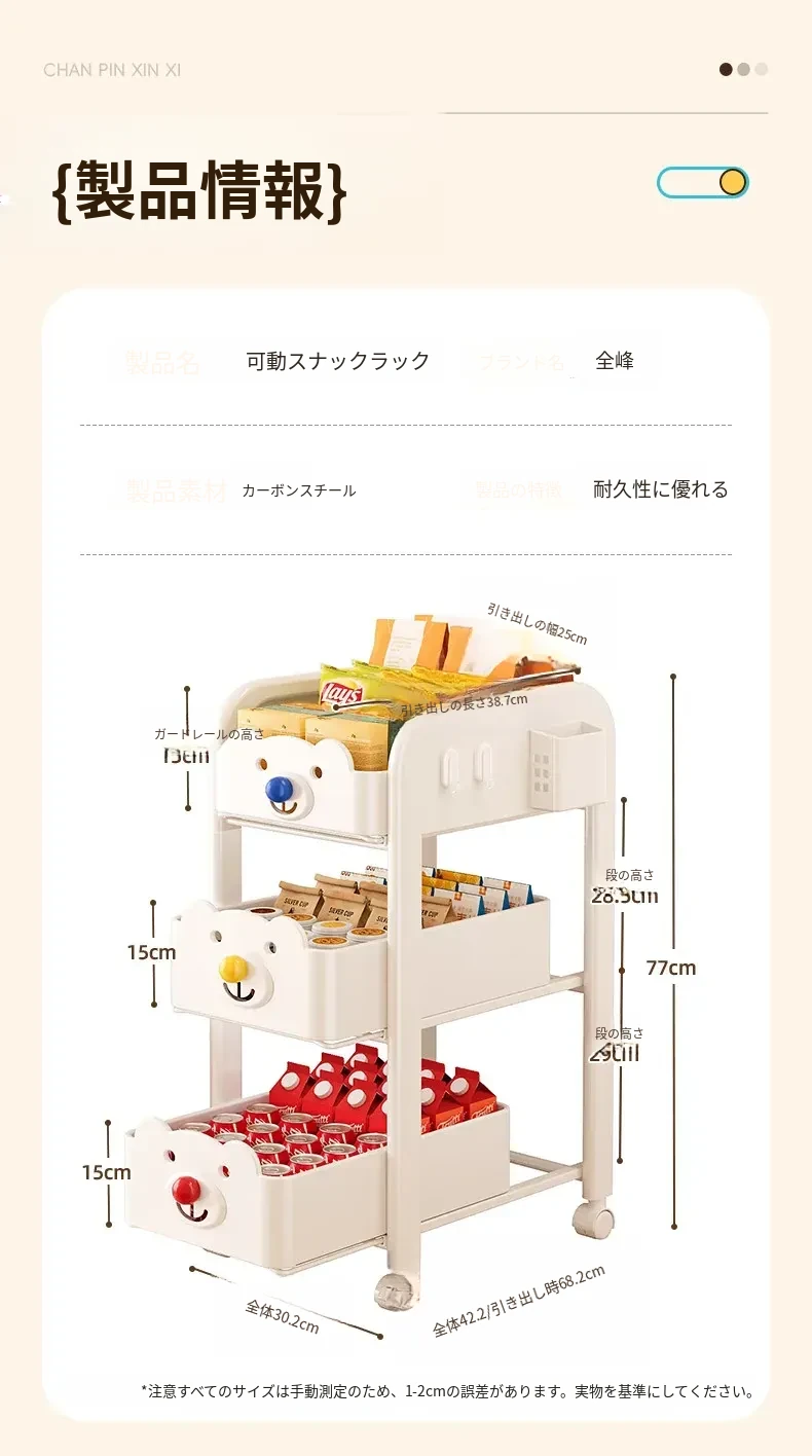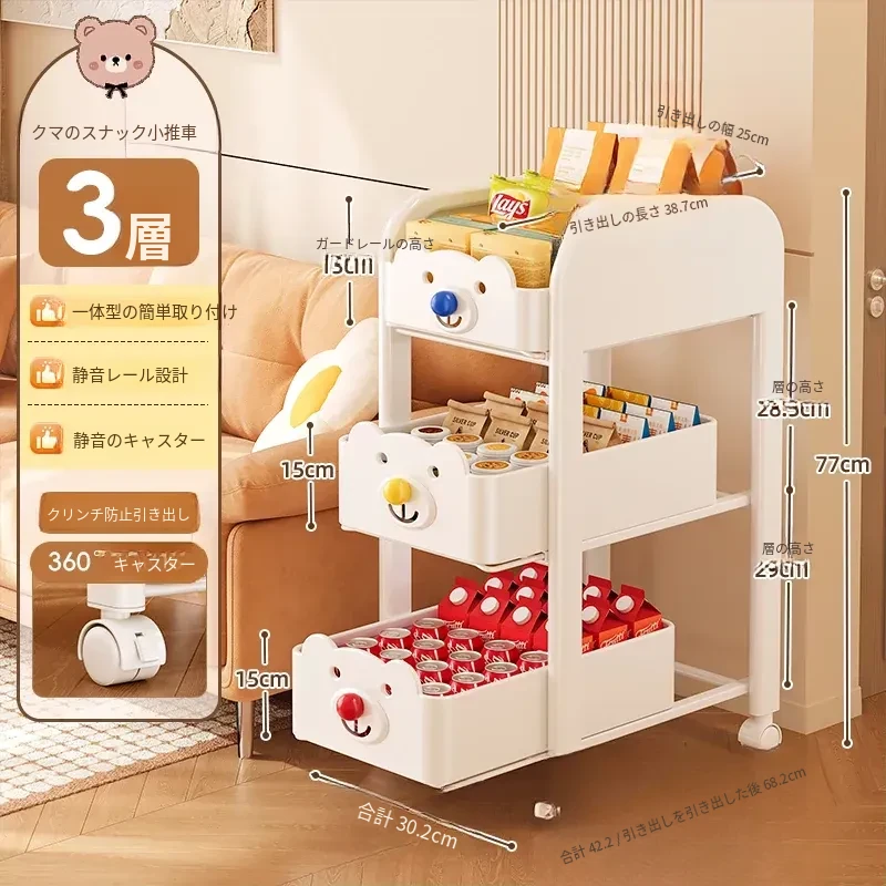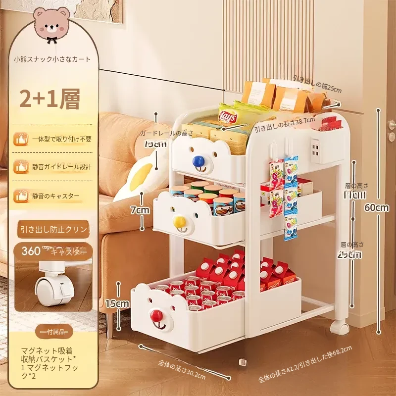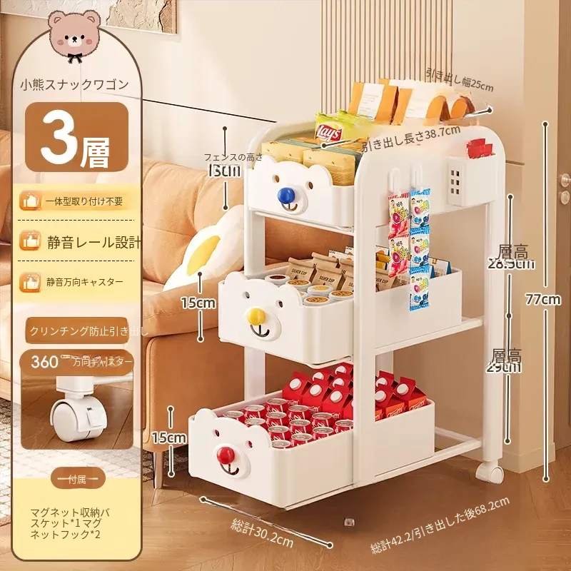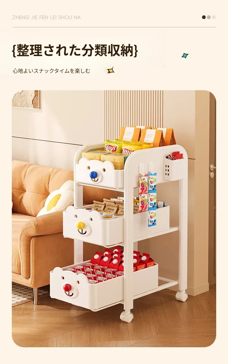 取り付け不要!ダイエットサポートのドパミンおやつワゴン - 家庭用マルチ収納ラック、リビングのための移動可能な多層構造で便利さを追求!