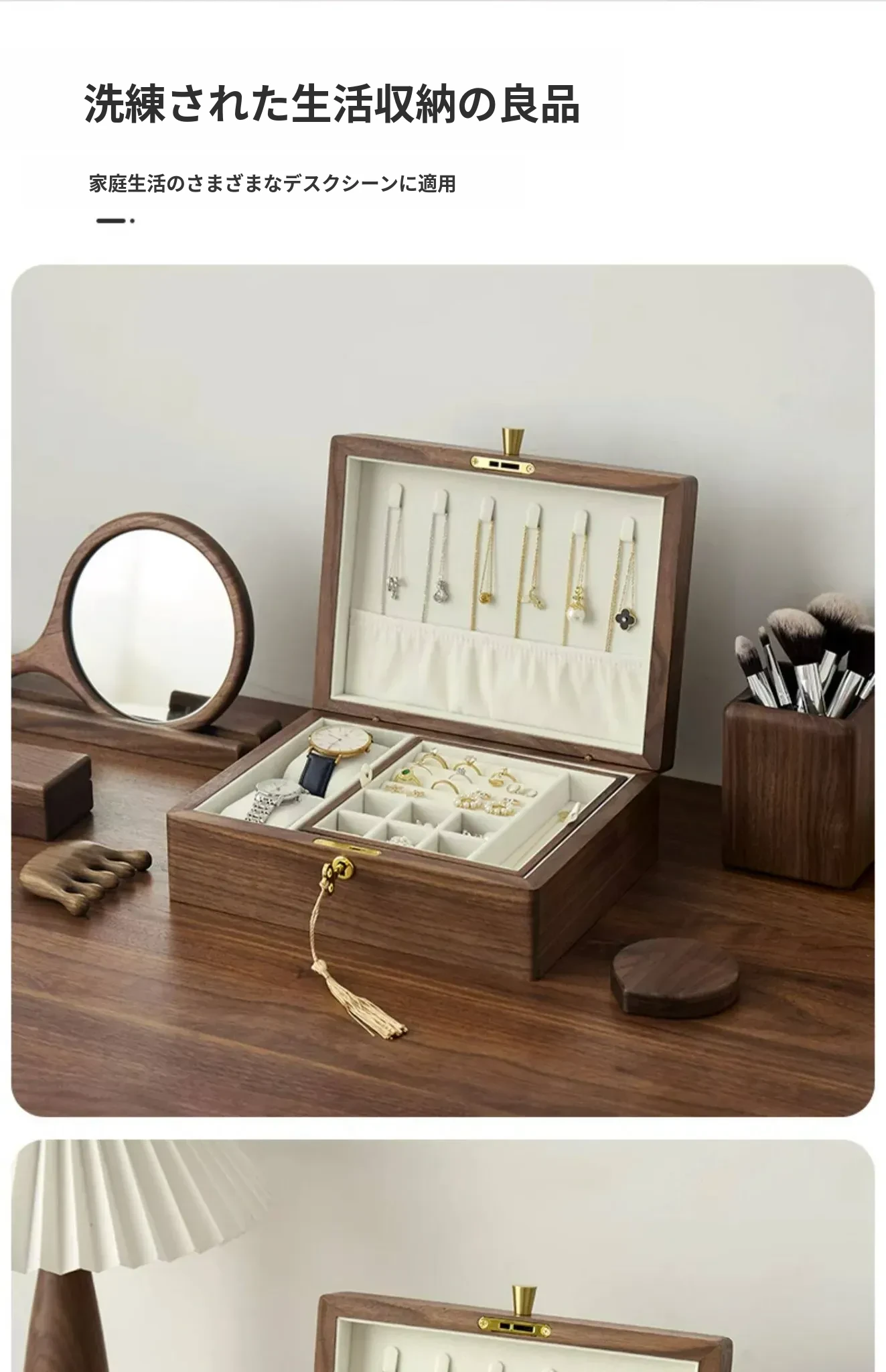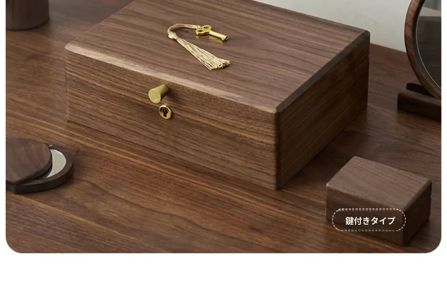 ウォールナット製二段式ジュエリーボックス---鍵付きタイプ