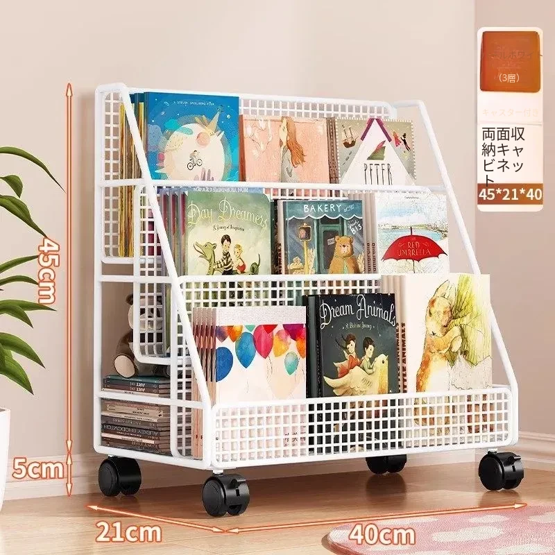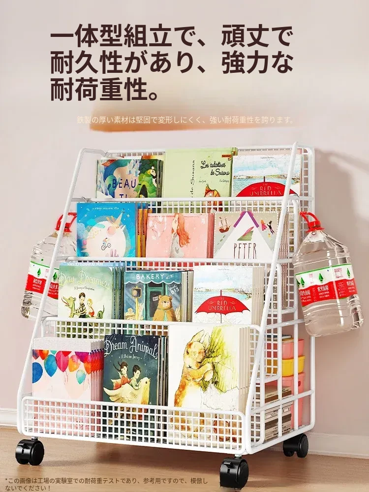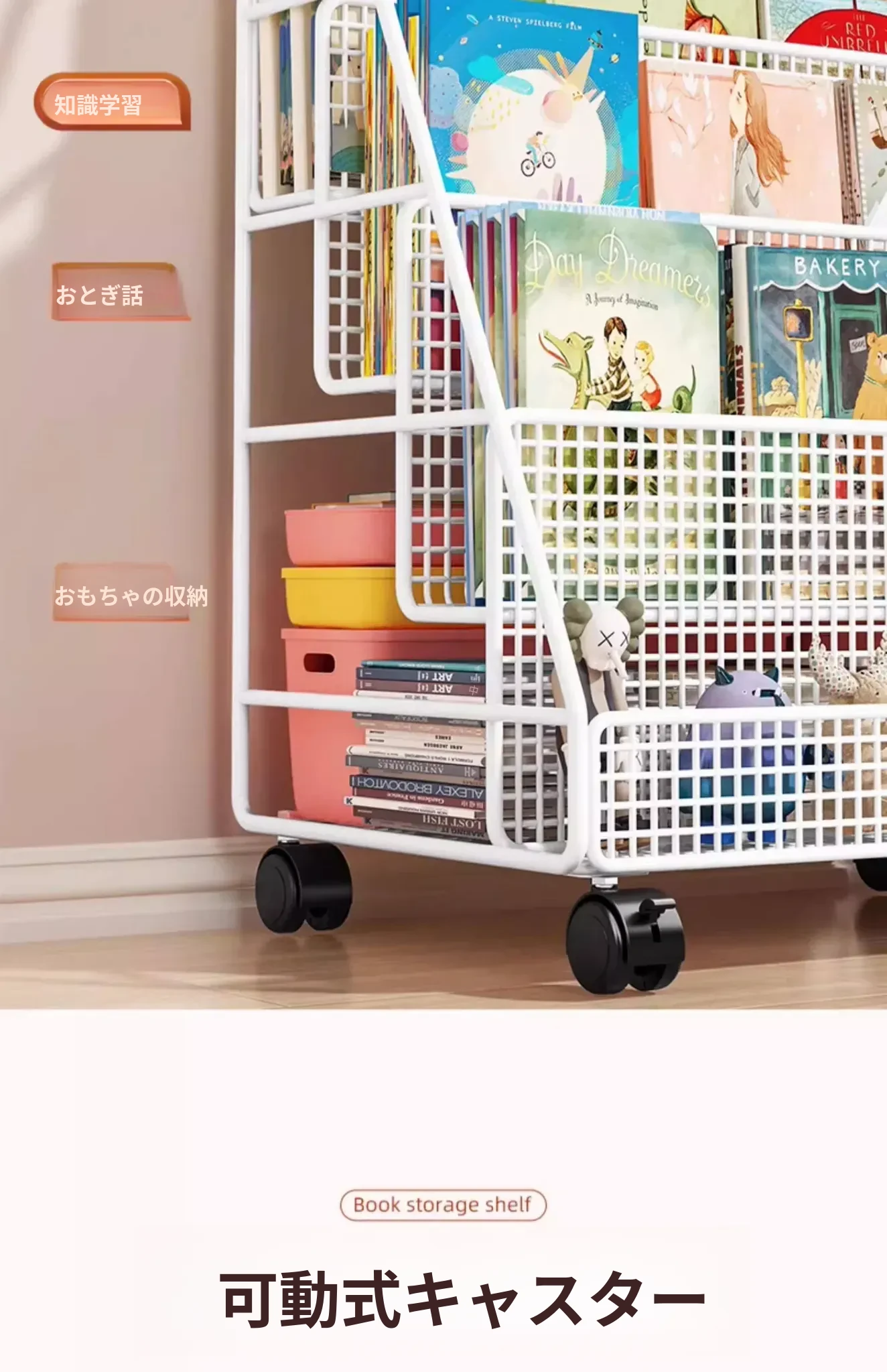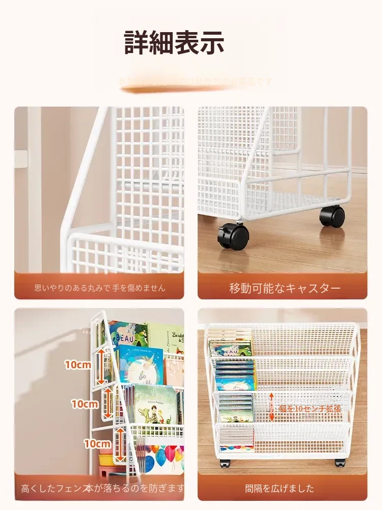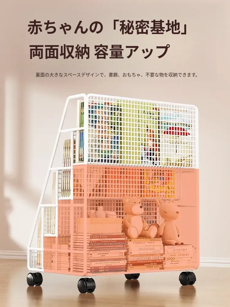子供の絵本にぴったり!移動式マルチ収納ラック - 簡単組み立ての多段式フロアシェルフ。おしゃれで便利な収納スペースで、お子様の本をすっきり整理!お部屋のインテリアにも最適です。