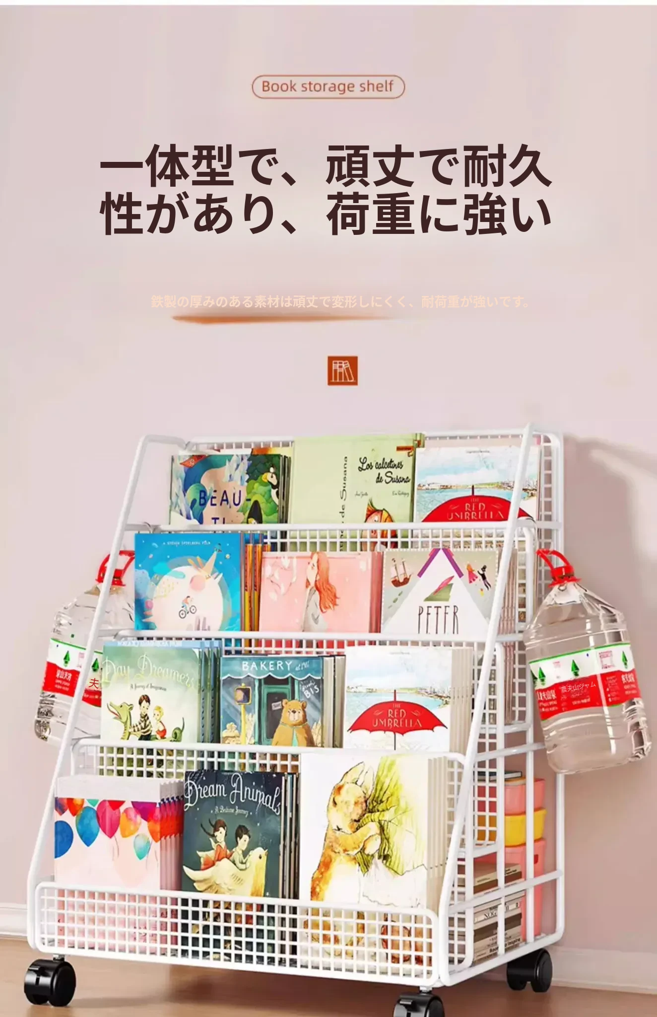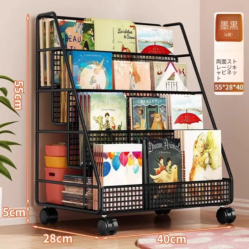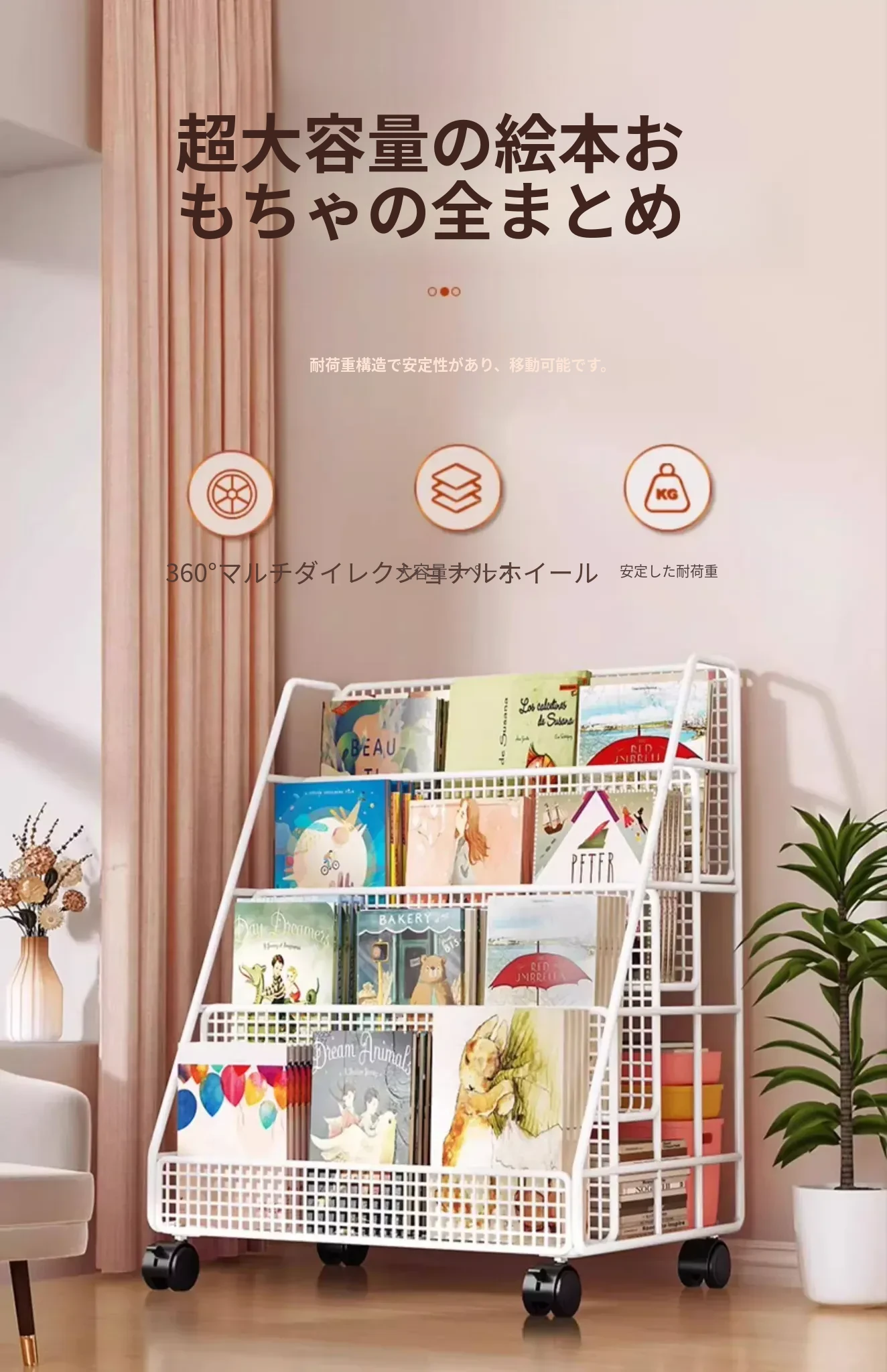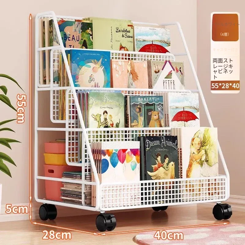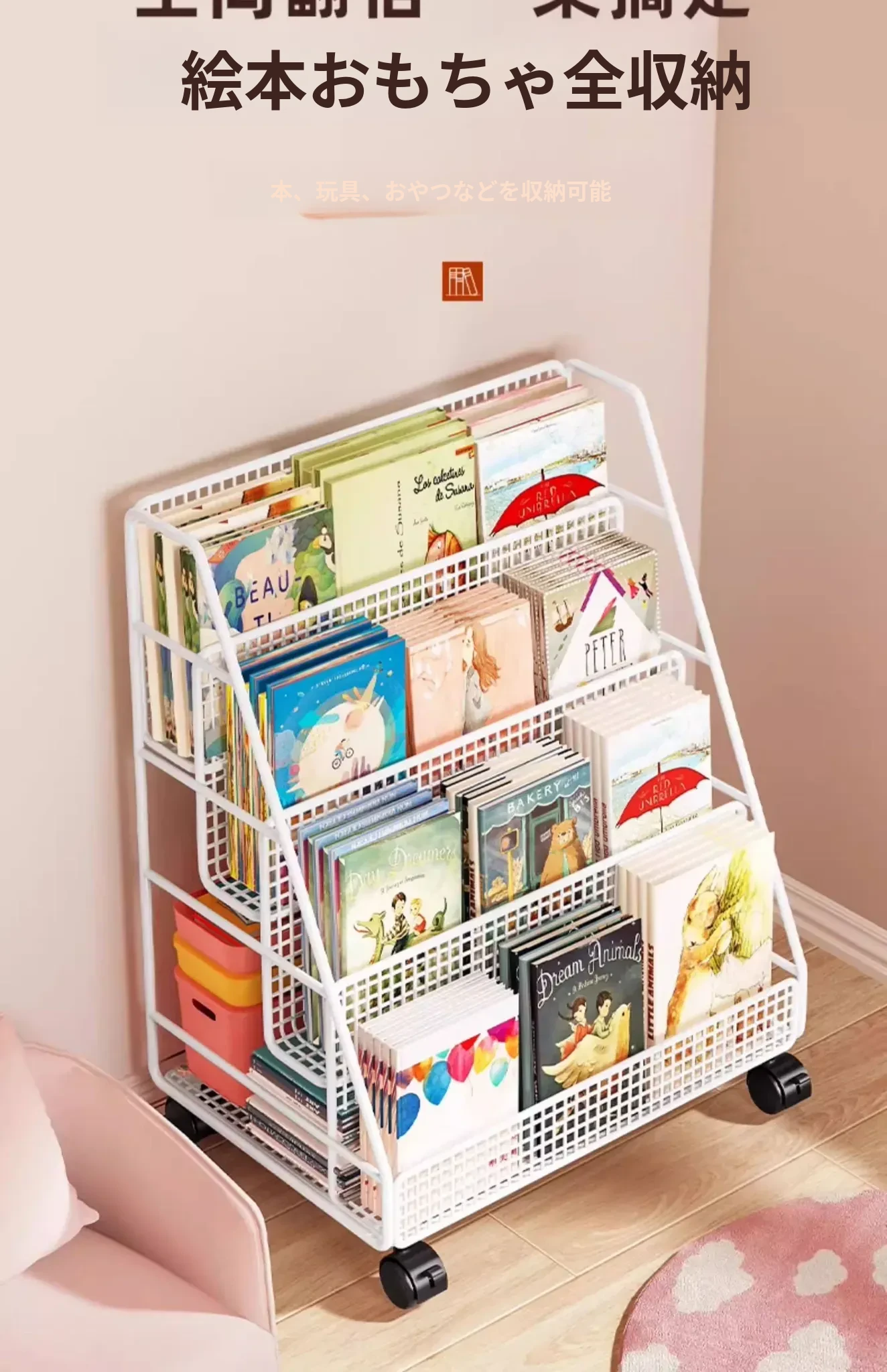 子供の絵本にぴったり!移動式マルチ収納ラック - 簡単組み立ての多段式フロアシェルフ。おしゃれで便利な収納スペースで、お子様の本をすっきり整理!お部屋のインテリアにも最適です。