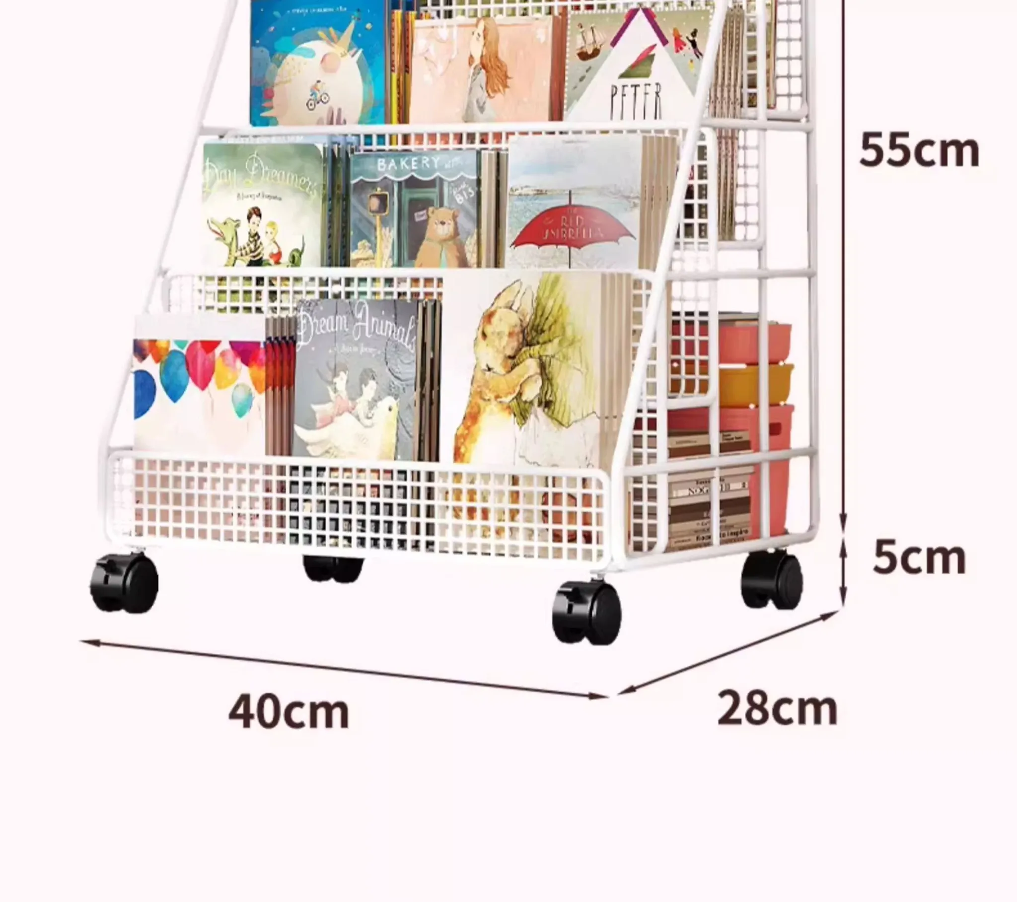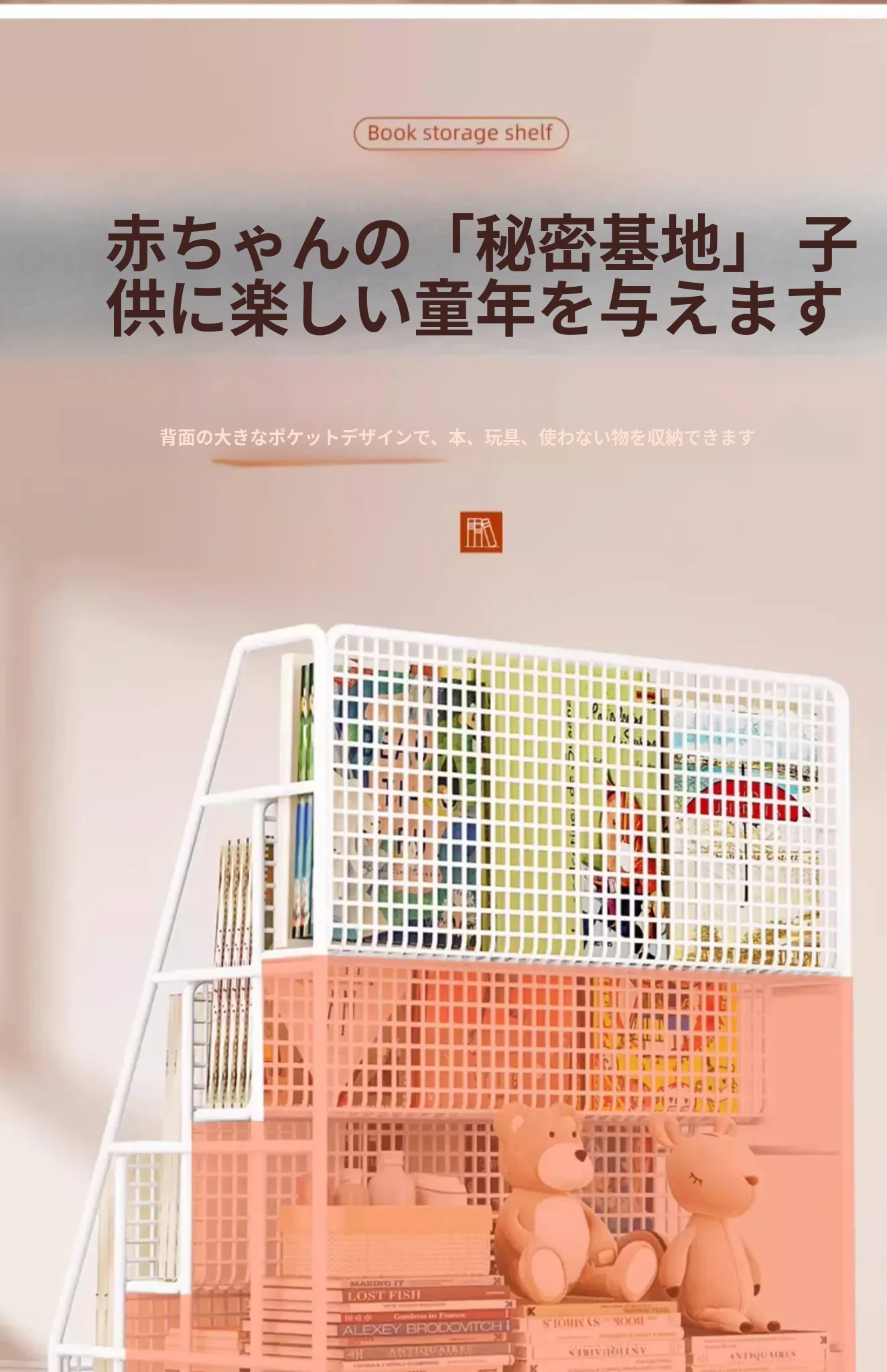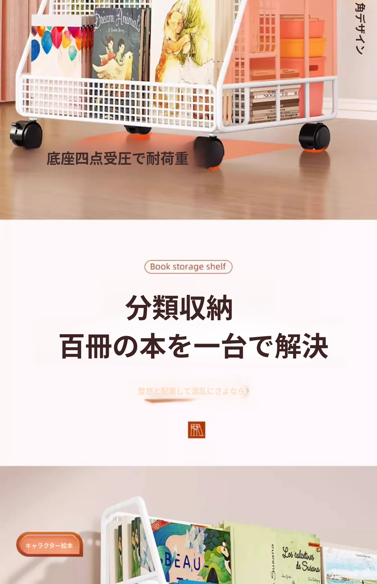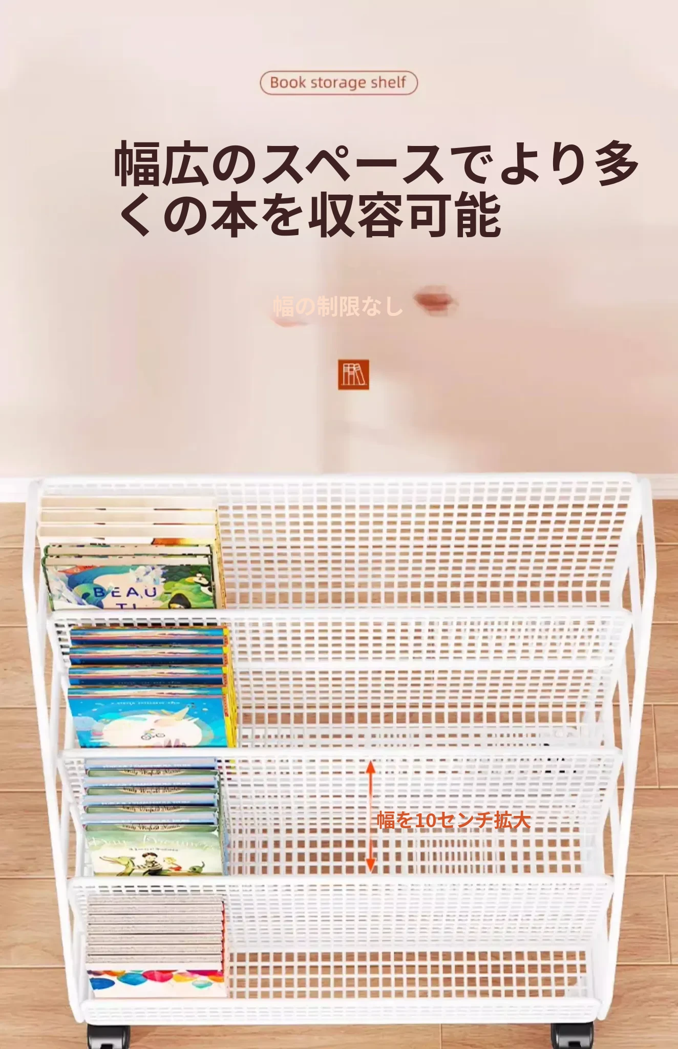 子供の絵本にぴったり!移動式マルチ収納ラック - 簡単組み立ての多段式フロアシェルフ。おしゃれで便利な収納スペースで、お子様の本をすっきり整理!お部屋のインテリアにも最適です。