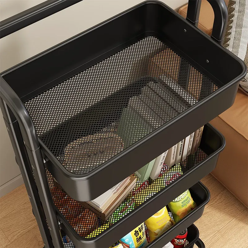 キャスター付き多段式収納ラック - 折りたたみ可能な多機能キッチンカート、家庭用スナック収納に最適!簡単設置でスペースを有効活用!