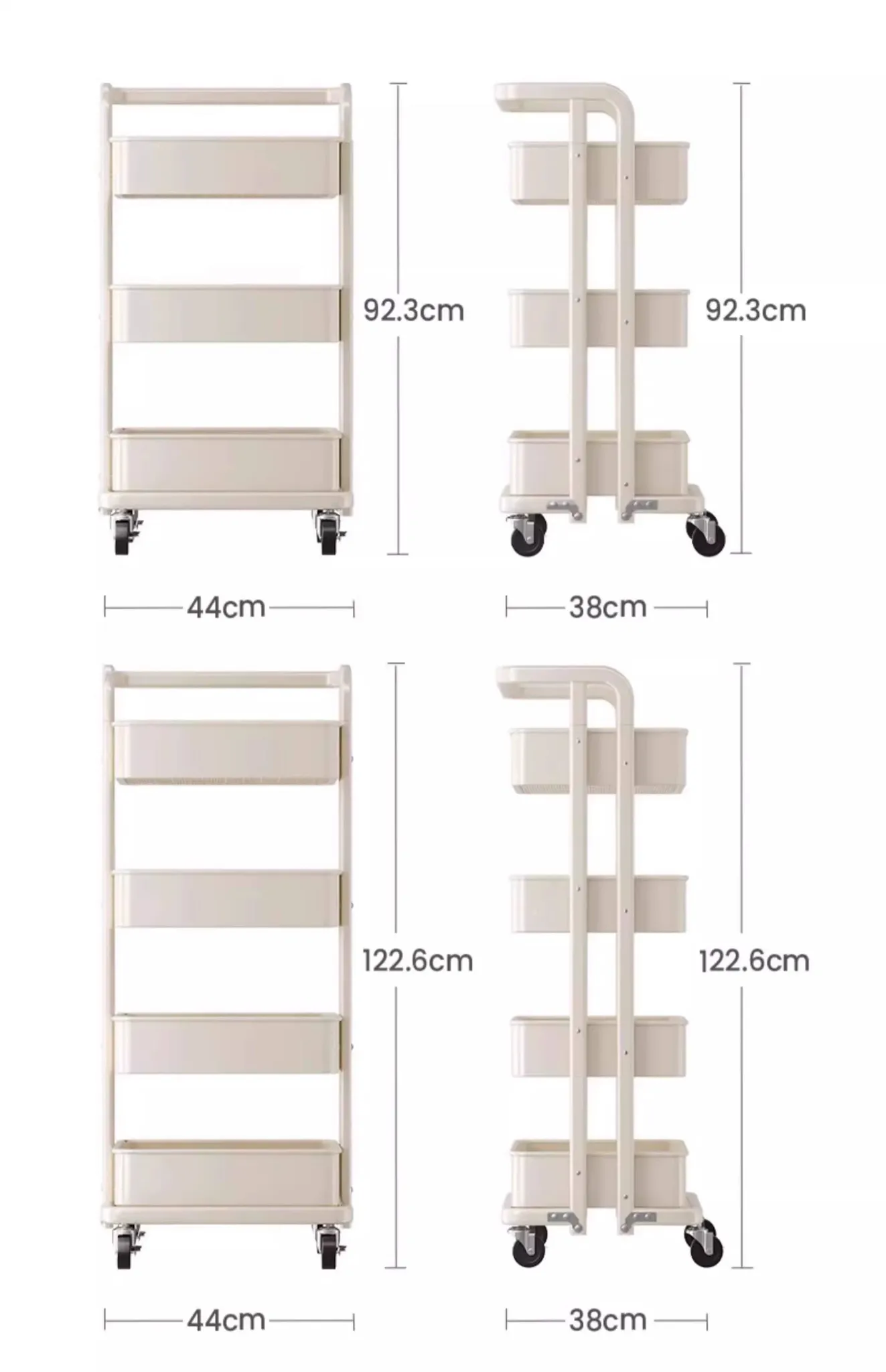 ホワイトモデル キャスター付き 安定して揺れない 4段 幅438mm 奥行385mm 高さ1222mm