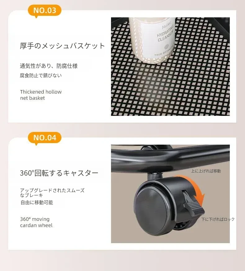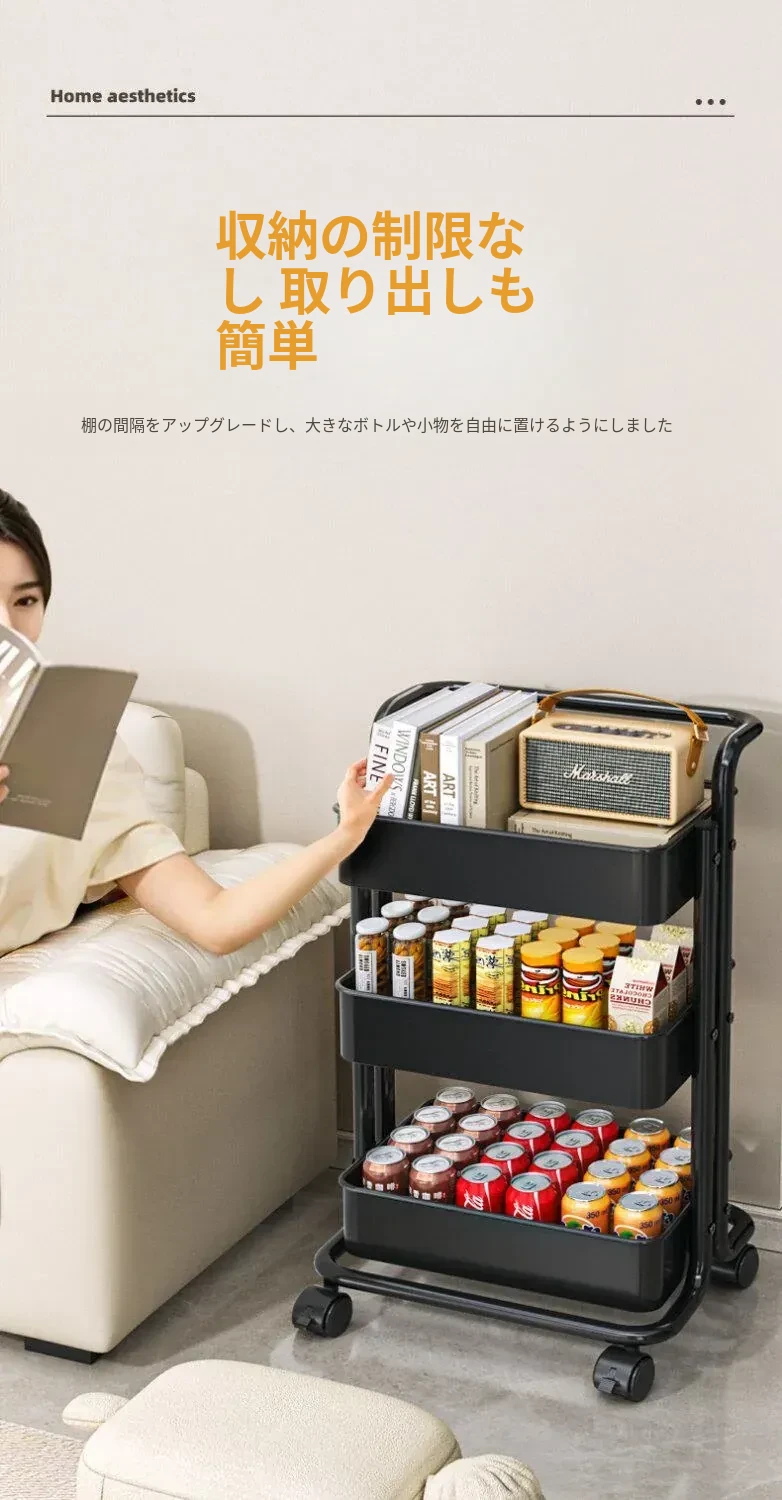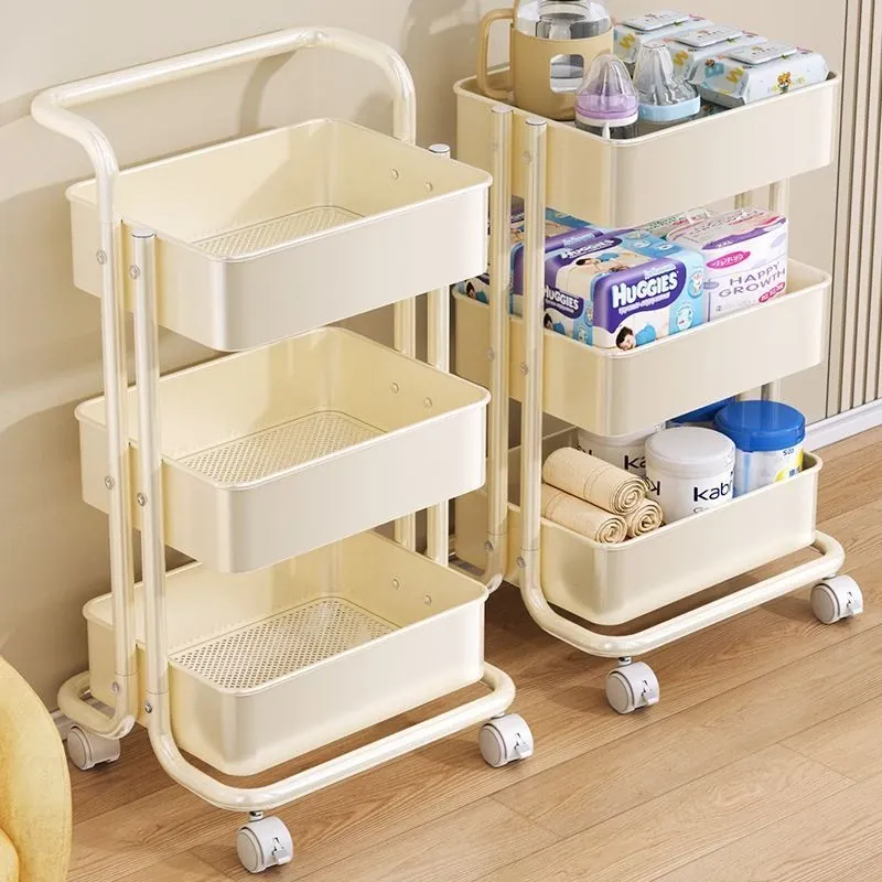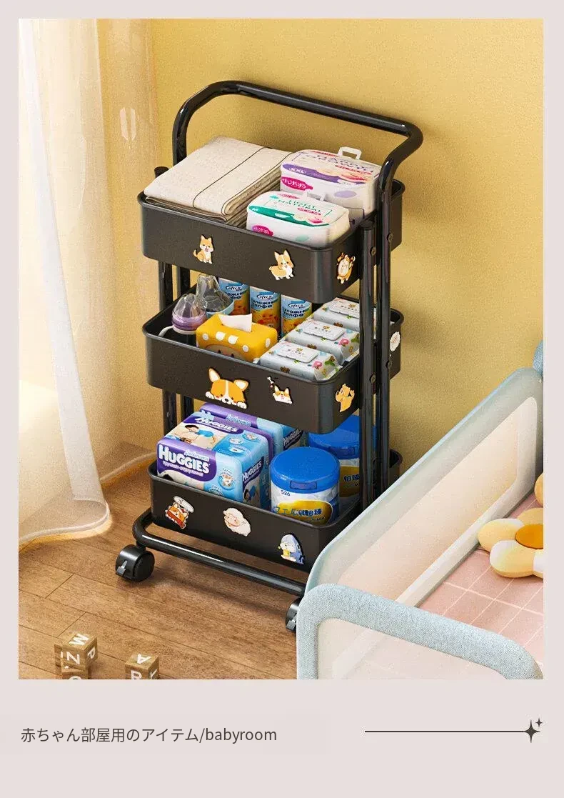 多機能!キッチンや寝室にぴったりの多層移動式収納ラック - 赤ちゃんのおやつやバスルーム、トイレの整理整頓に最適!手軽に移動できるので、どこでも使えます。