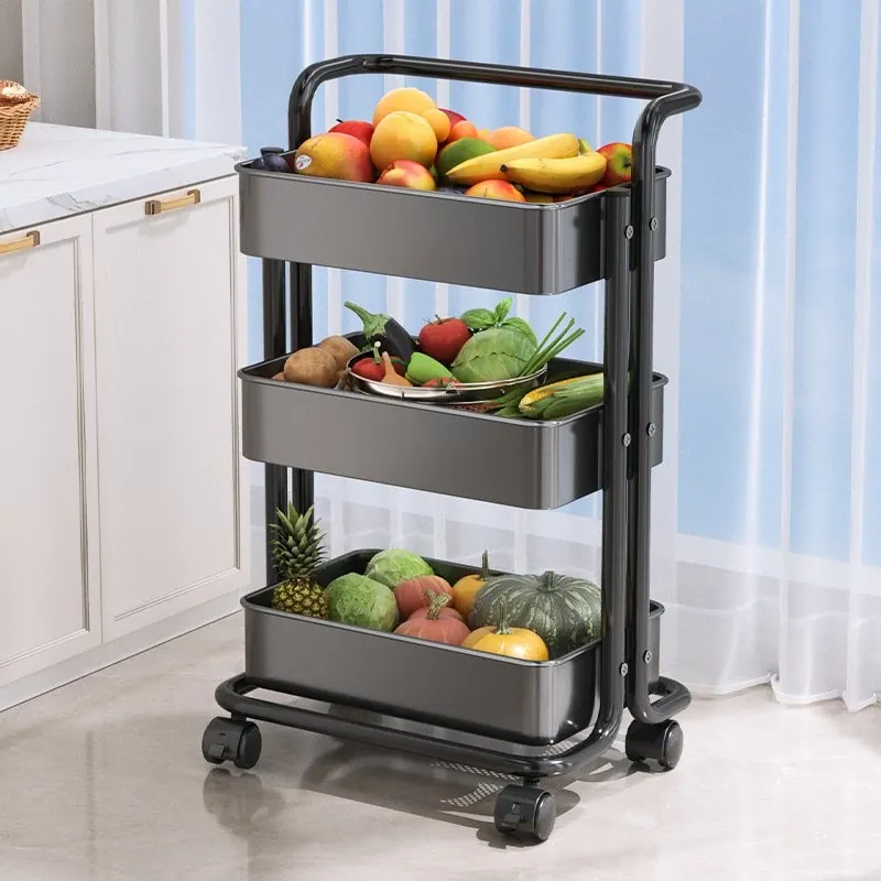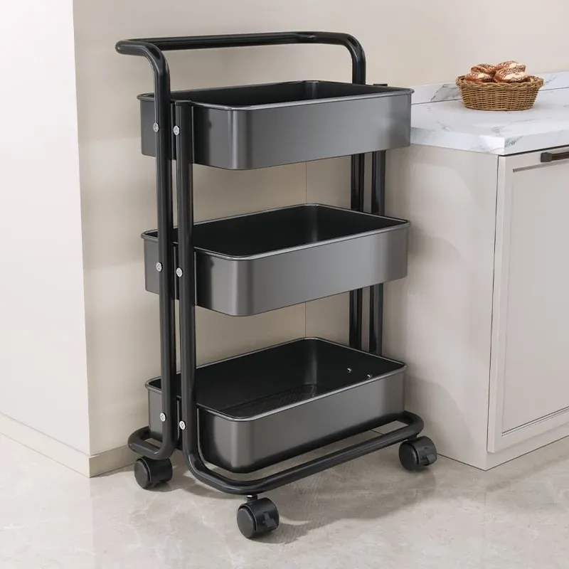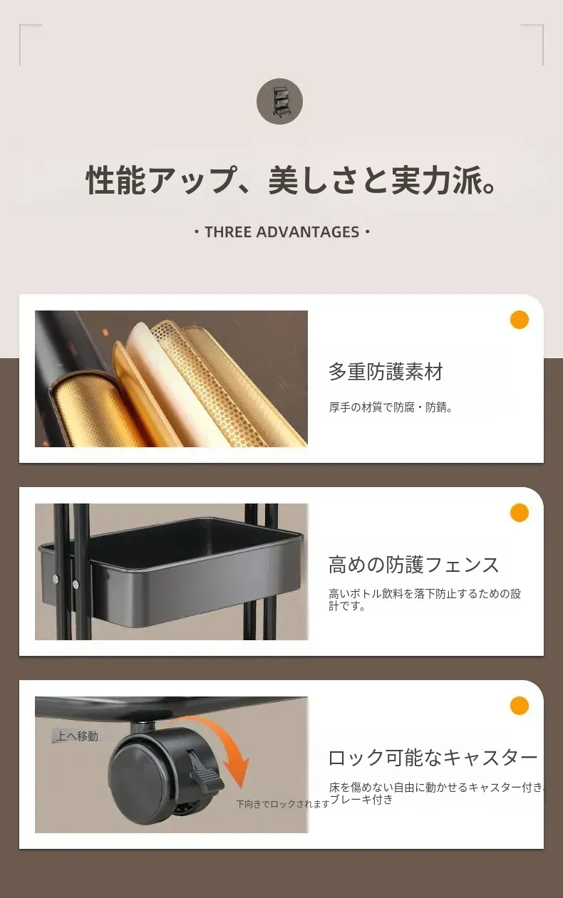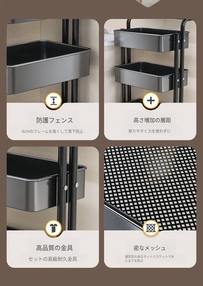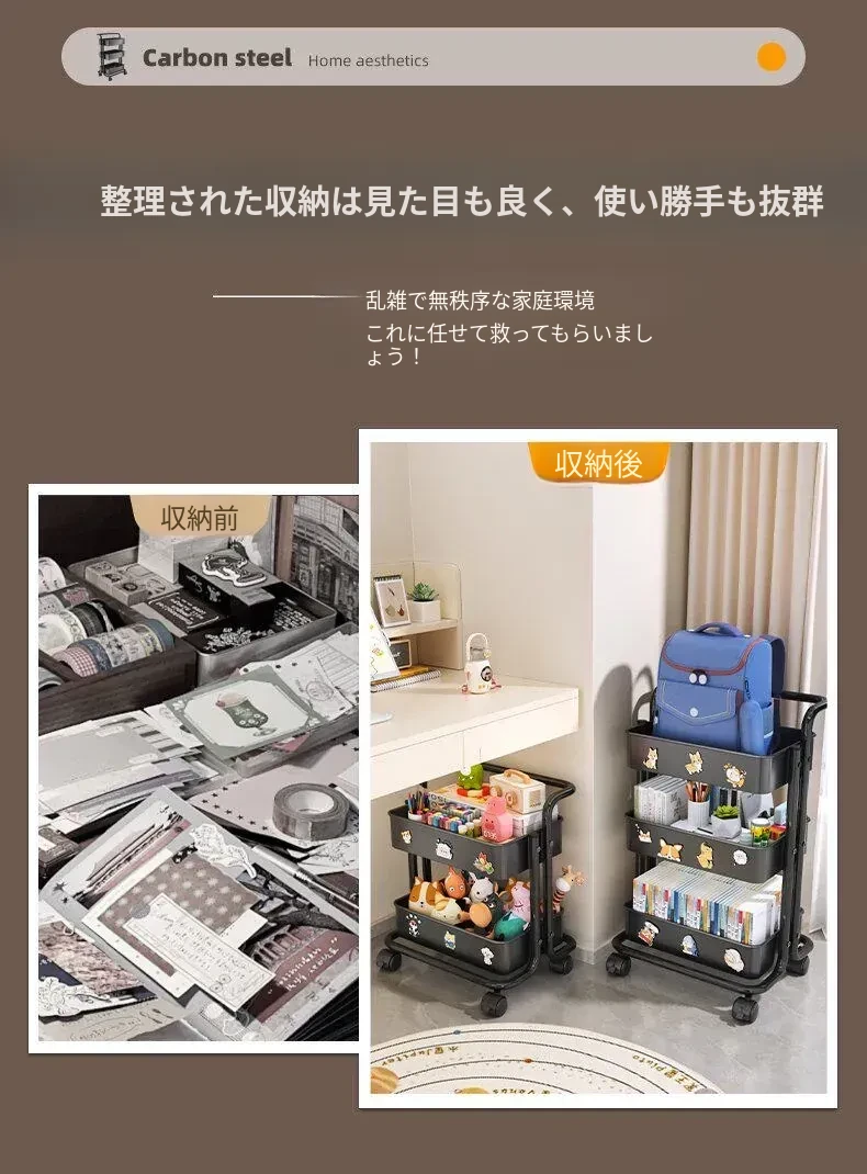 多機能!キッチンや寝室にぴったりの多層移動式収納ラック - 赤ちゃんのおやつやバスルーム、トイレの整理整頓に最適!手軽に移動できるので、どこでも使えます。