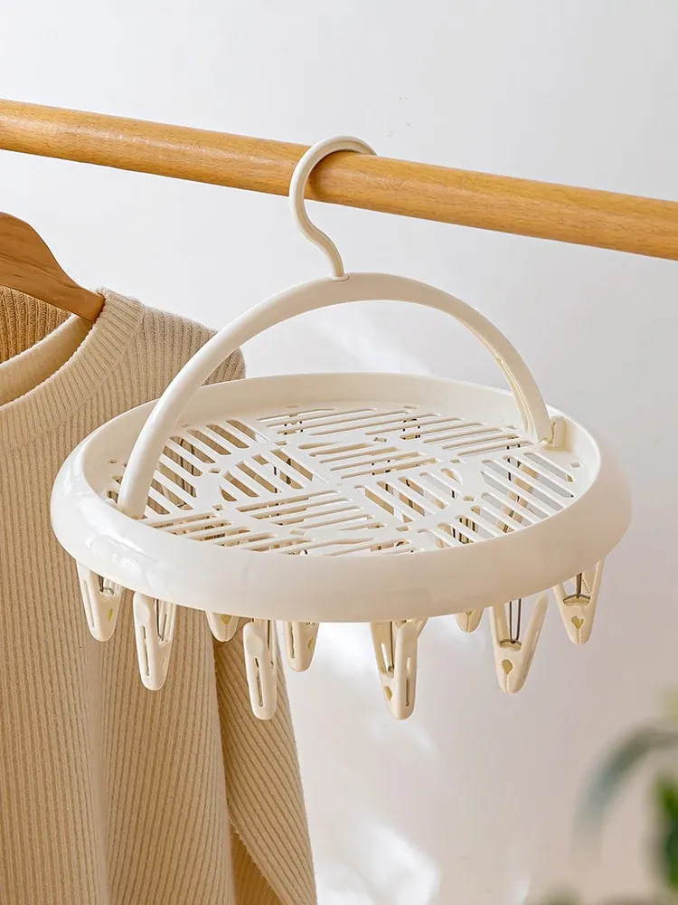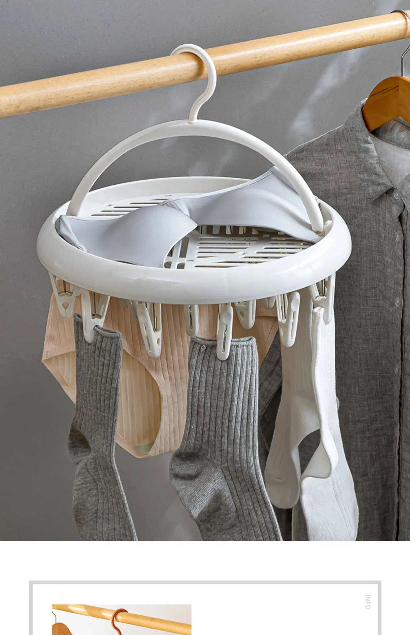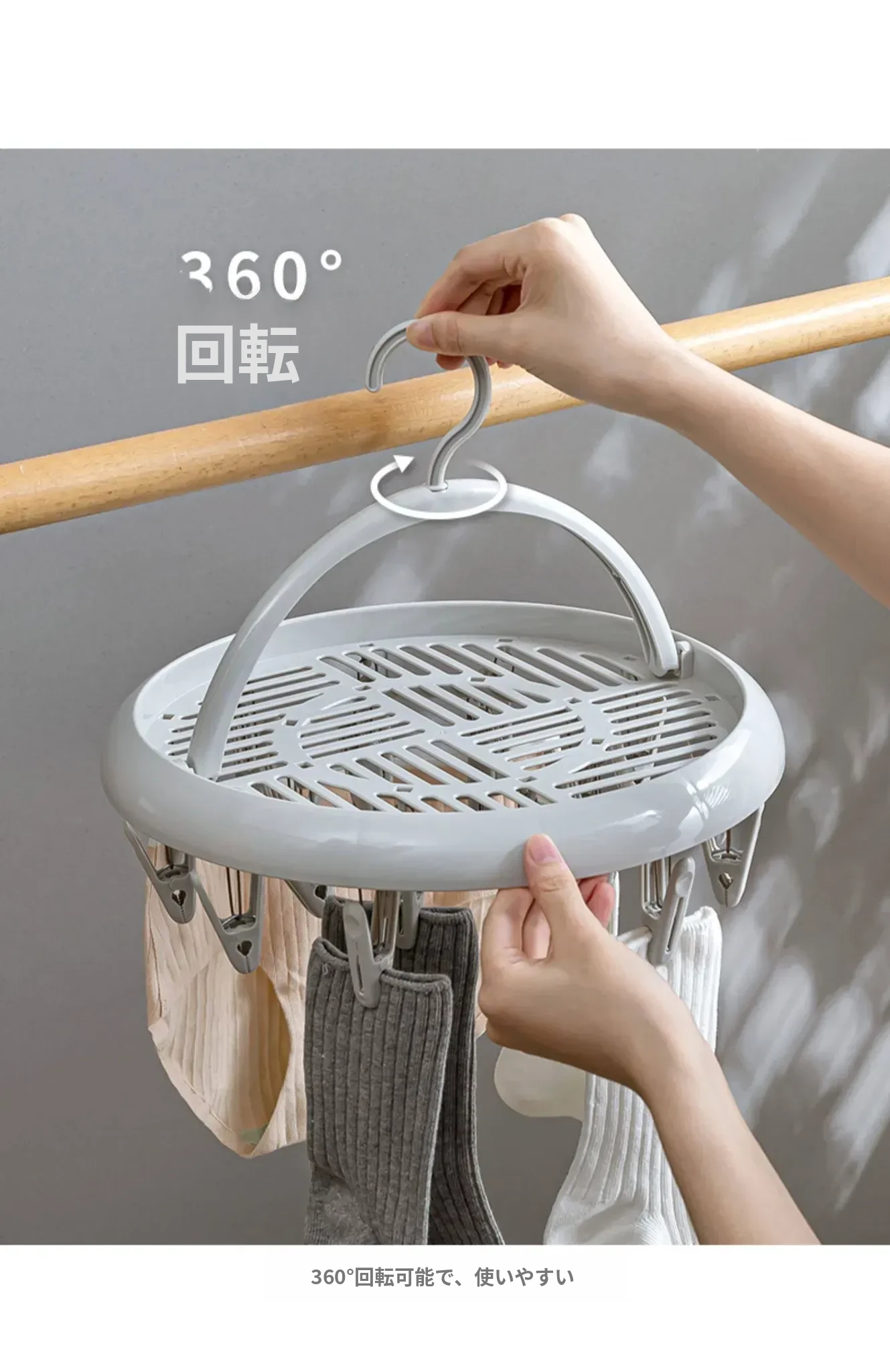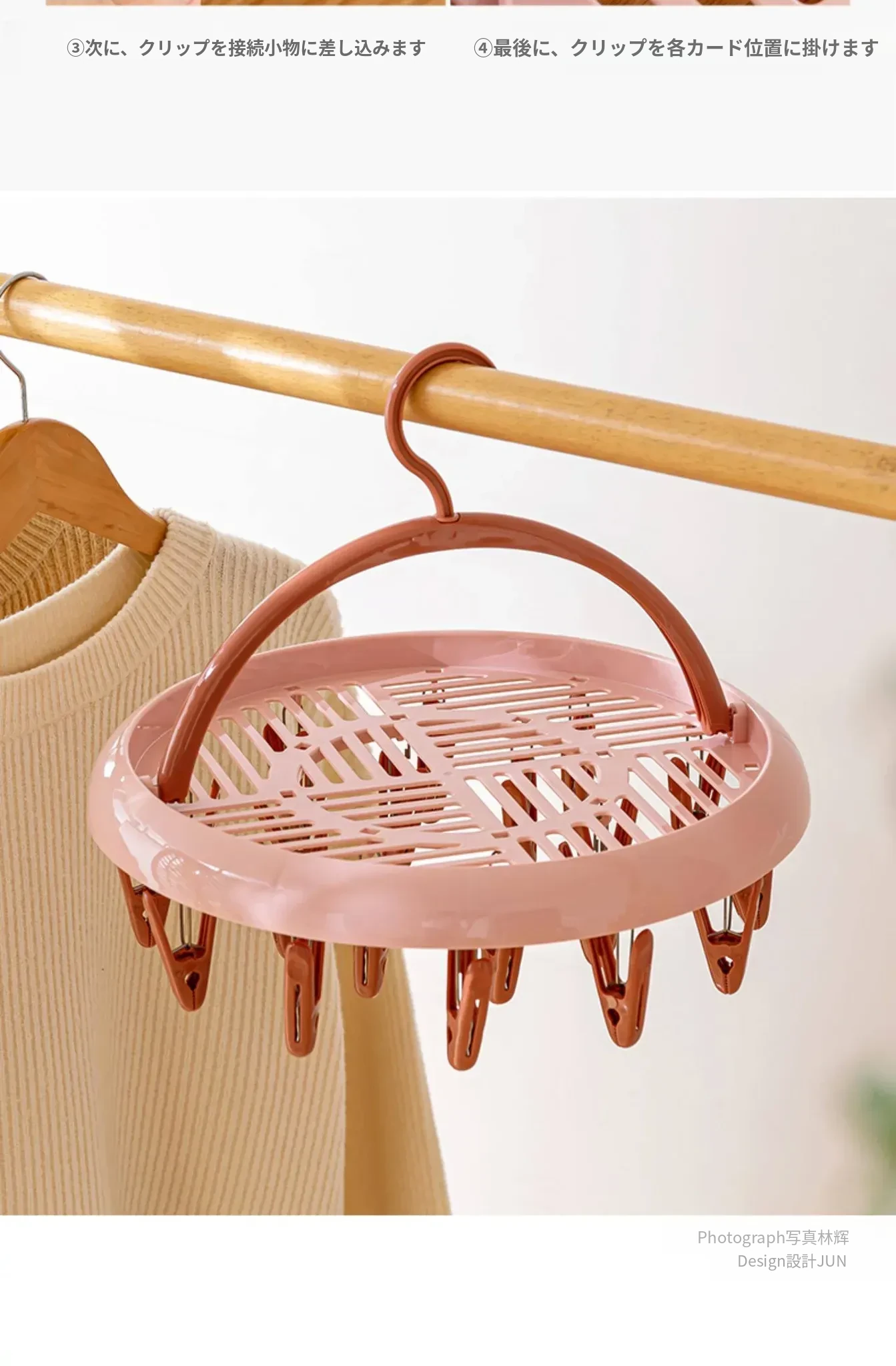 多機能衣類干しラック - ソックス専用クリップ付き!バルコニーでの内衣やパンツの乾燥に最適な円形デザイン!省スペースで効率的に乾かせる便利アイテムです。
