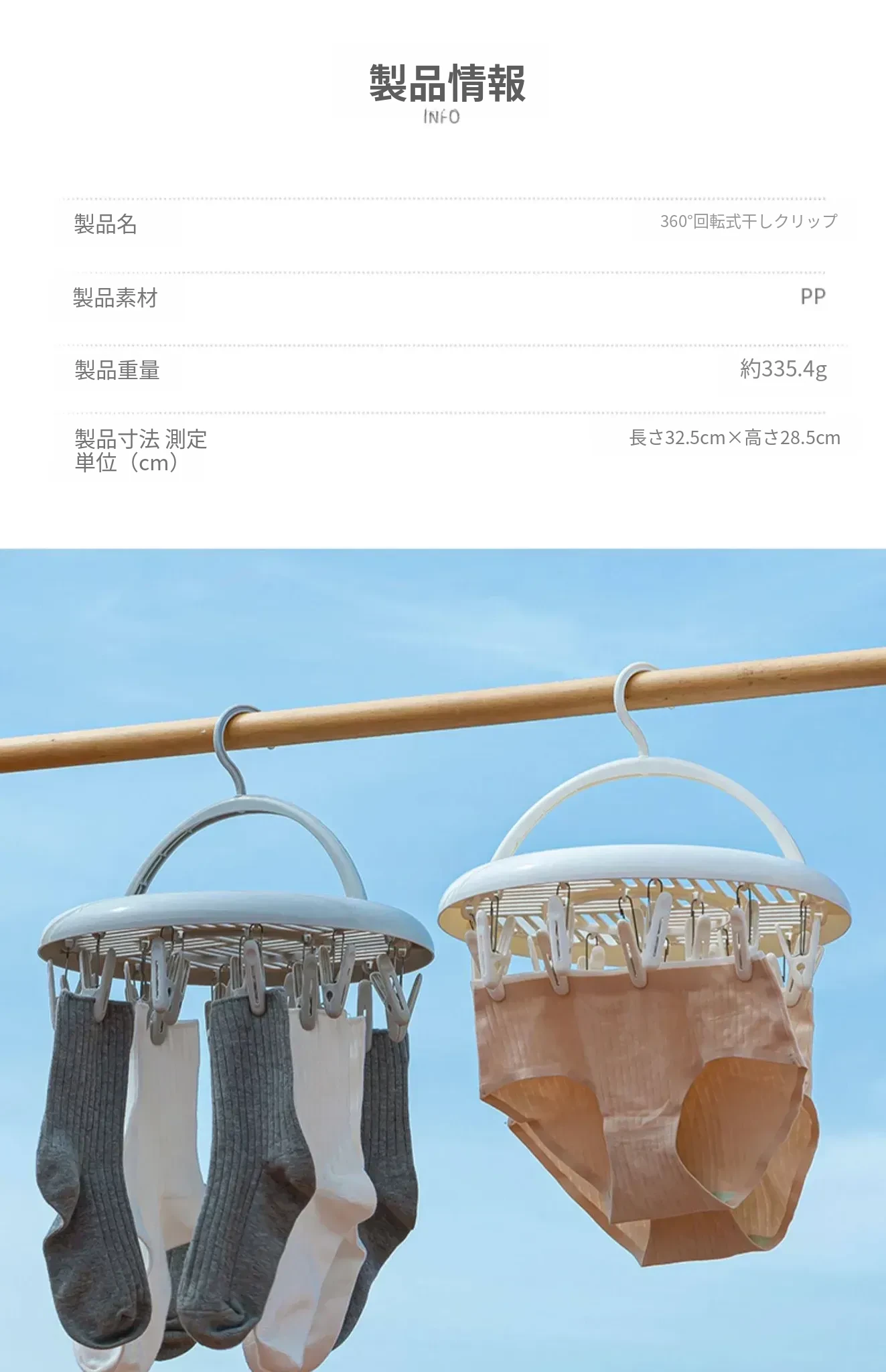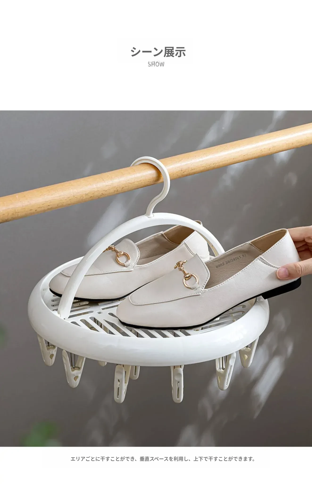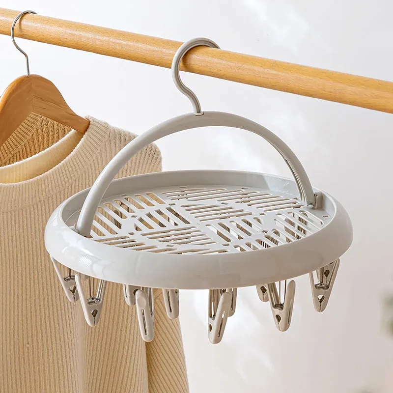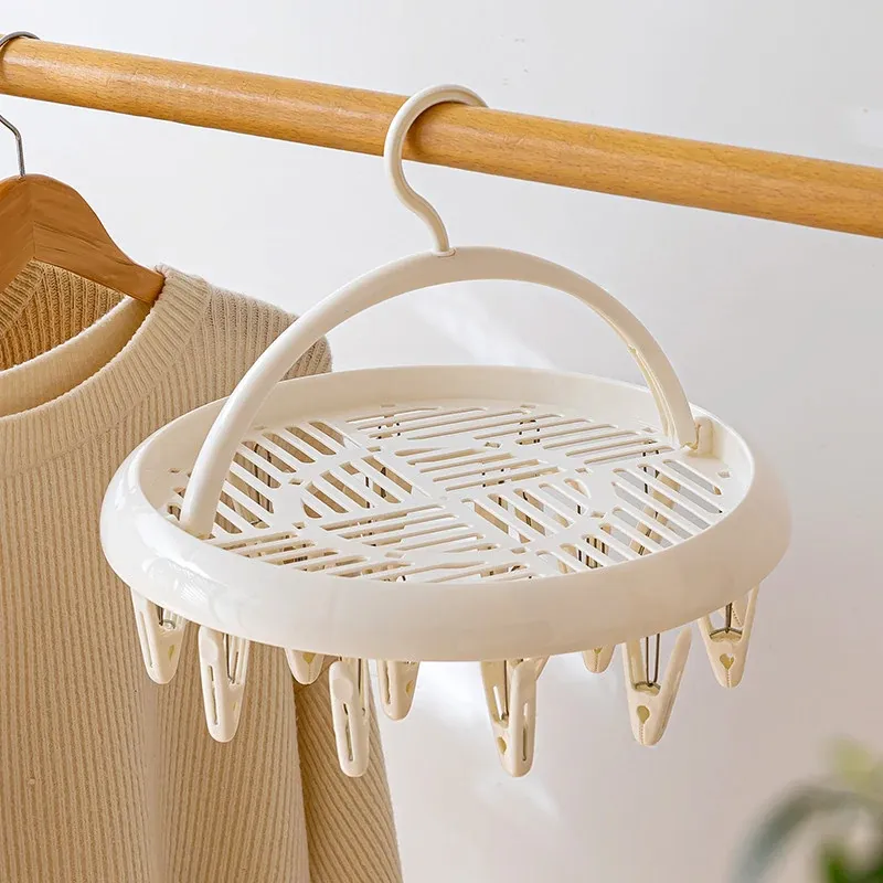 多機能衣類干しラック - ソックス専用クリップ付き!バルコニーでの内衣やパンツの乾燥に最適な円形デザイン!省スペースで効率的に乾かせる便利アイテムです。