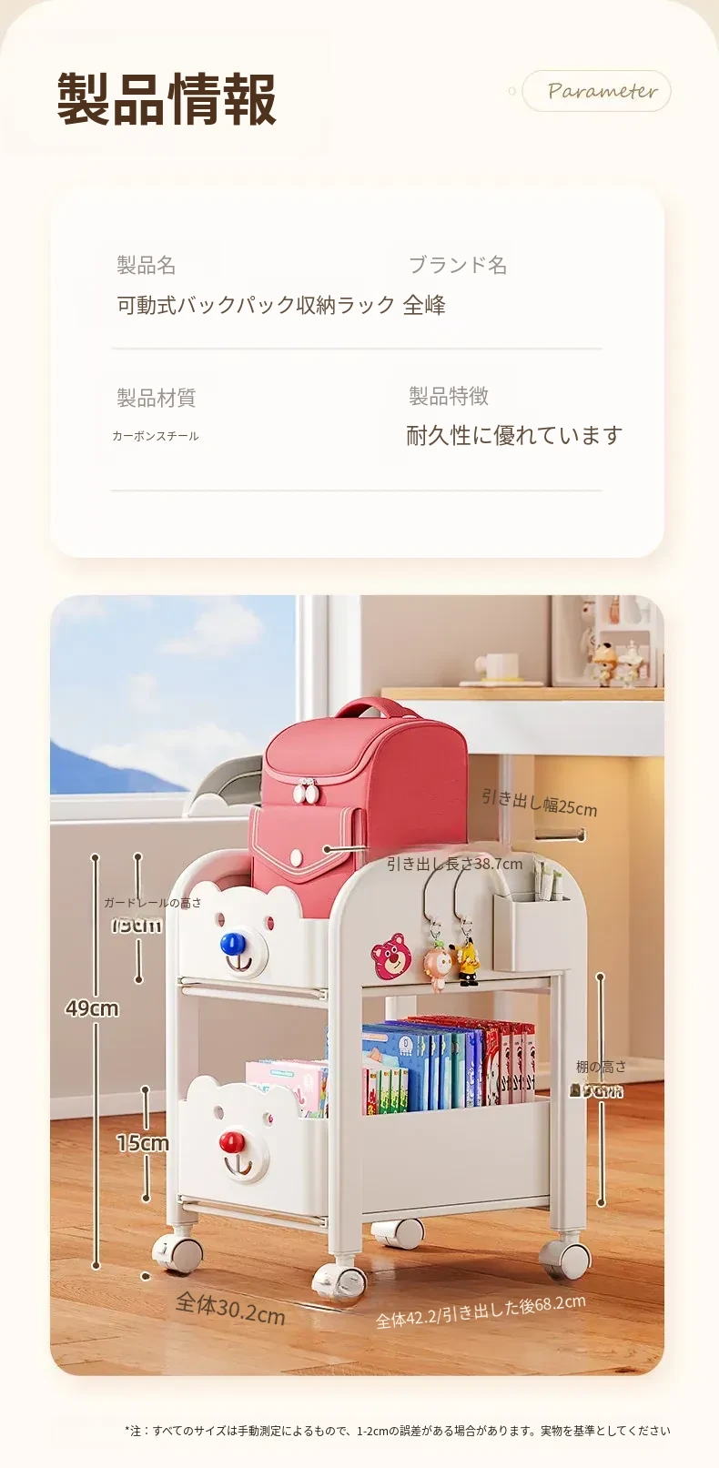 引き出し式収納 簡単持ち運び 工事不要 【フラッグシップモデル】3段 高さ60cm