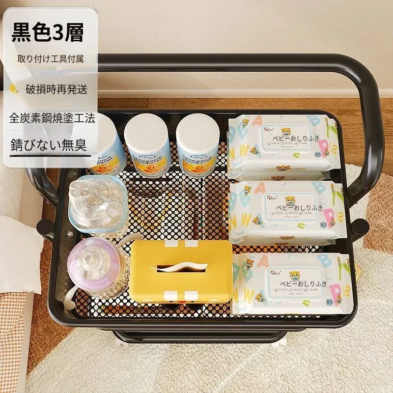 ブラック有柵-底幅35cm 層距280mm-4底管4中杆3収納バスケット4キャスター