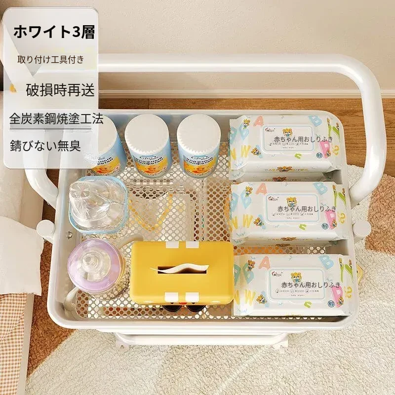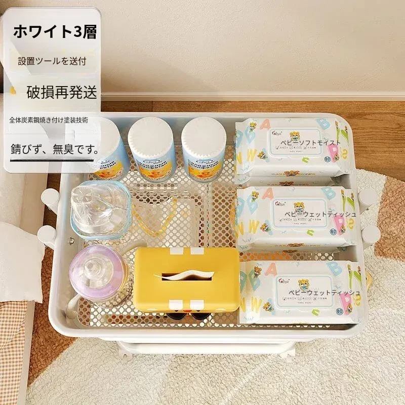ホワイト有柵-底幅35cm 層距280mm-4底管4中杆3収納バスケット4キャスター