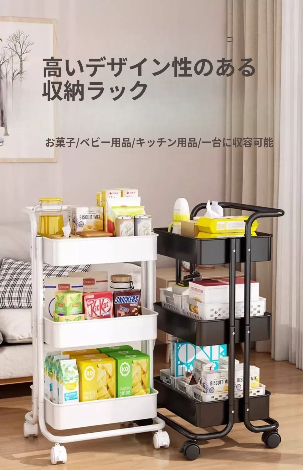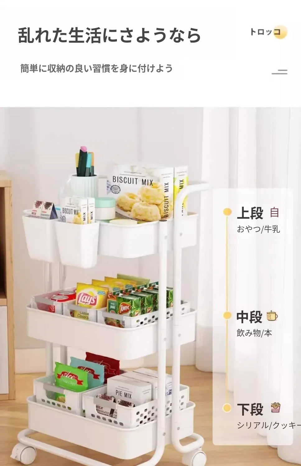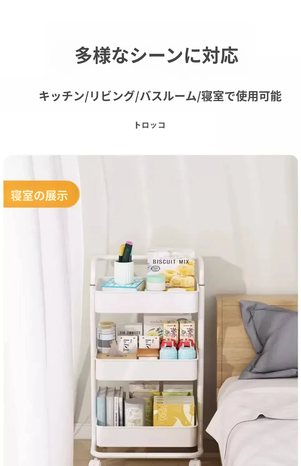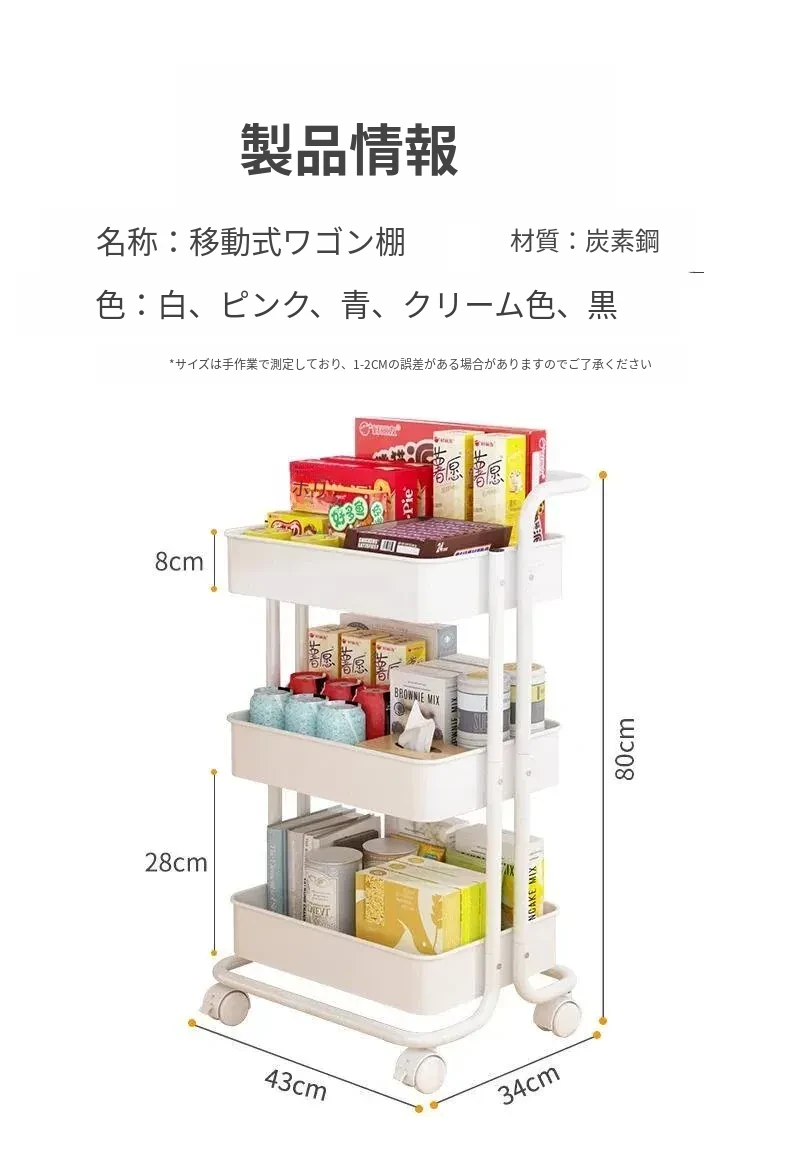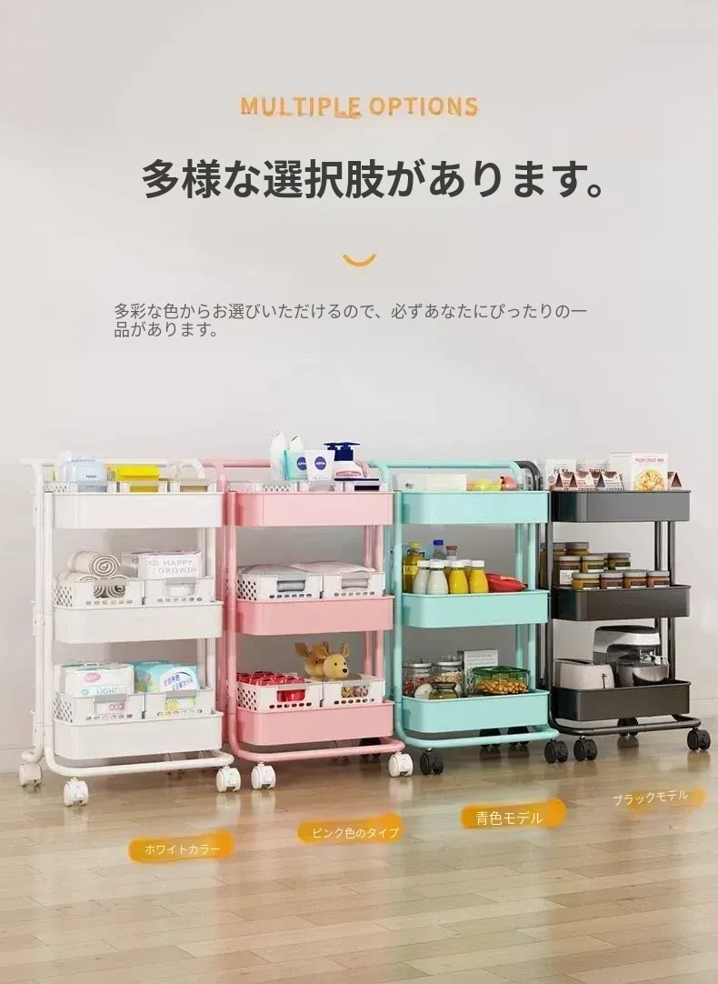 キッチンやバスルームにぴったり!多層構造の耐久性抜群な移動式収納カート - 寝室やお菓子の整理にも最適!あなたの生活空間をスッキリ整頓!