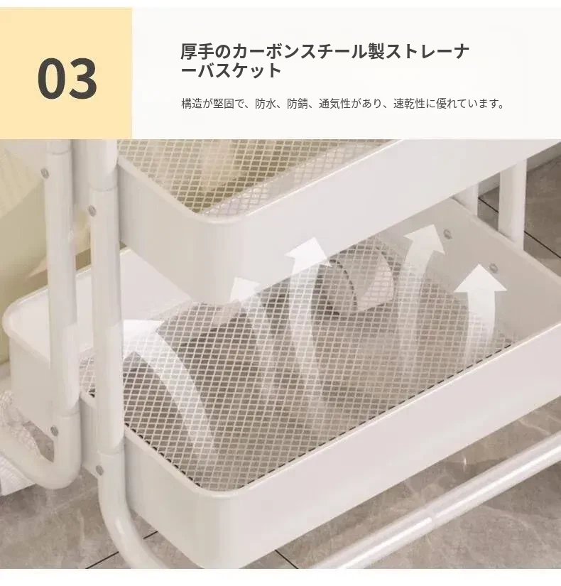 ホワイト握り手有-4バスケット2バケツ1ステッカー 層距280mm-4底管4中杆3収納バスケット4キャスター