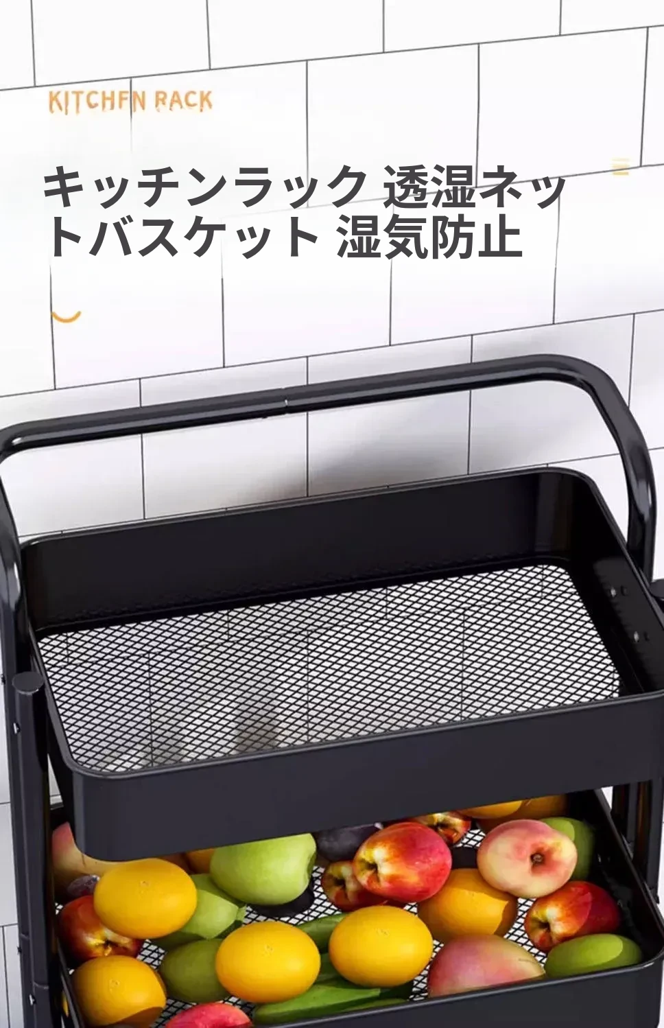 ブラック無柵-底幅35cm 層距280mm-4底管4中杆3収納バスケット4キャスター