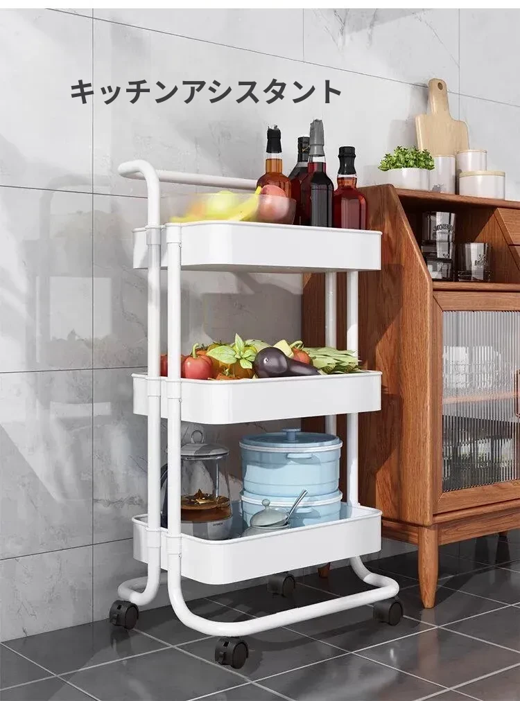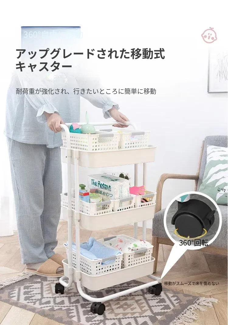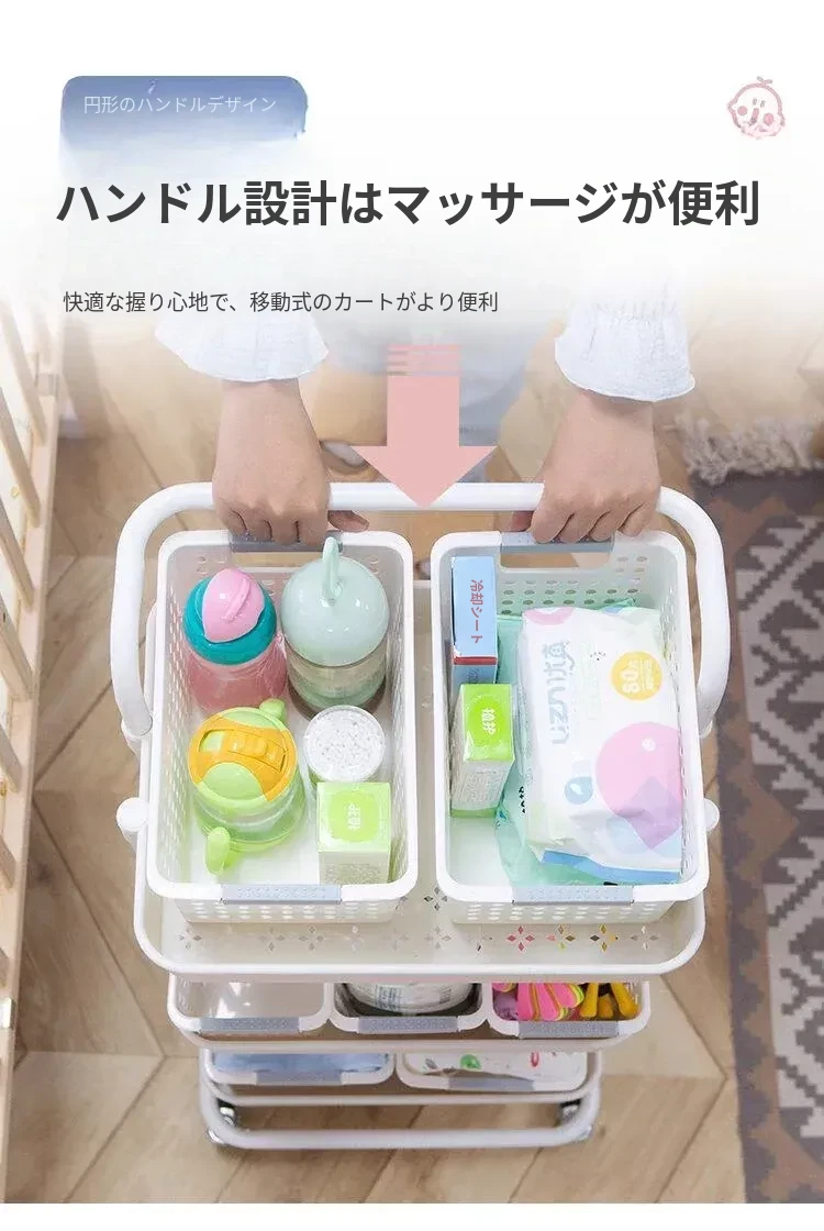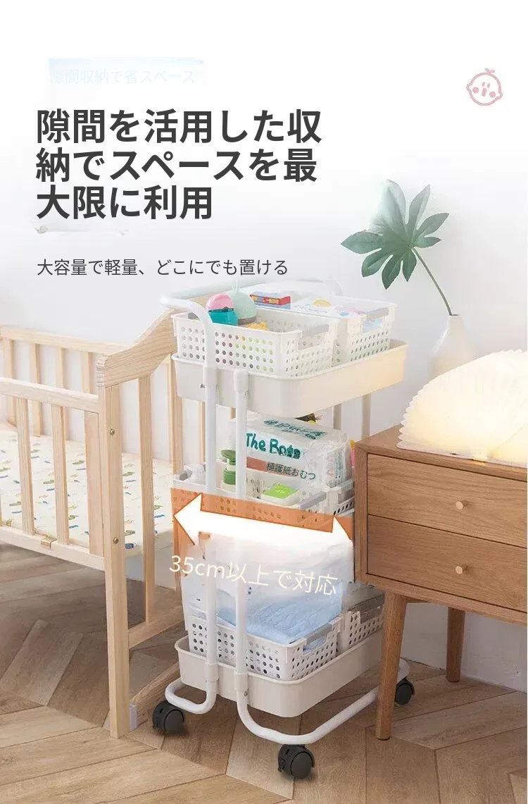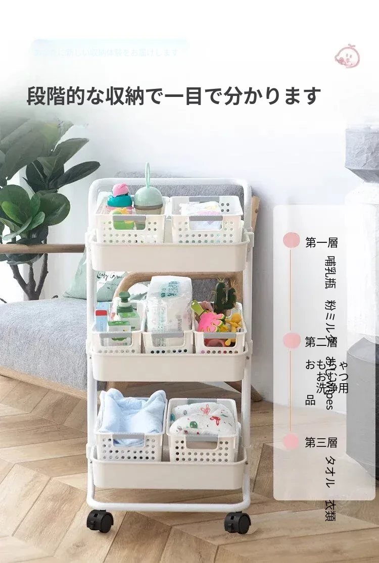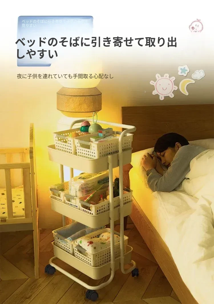 多機能小型ワゴン!キッチン、寝室、バスルームにぴったりの収納ラック - おむつやベビーおやつも楽々整理!移動も簡単で、スペースを有効活用!